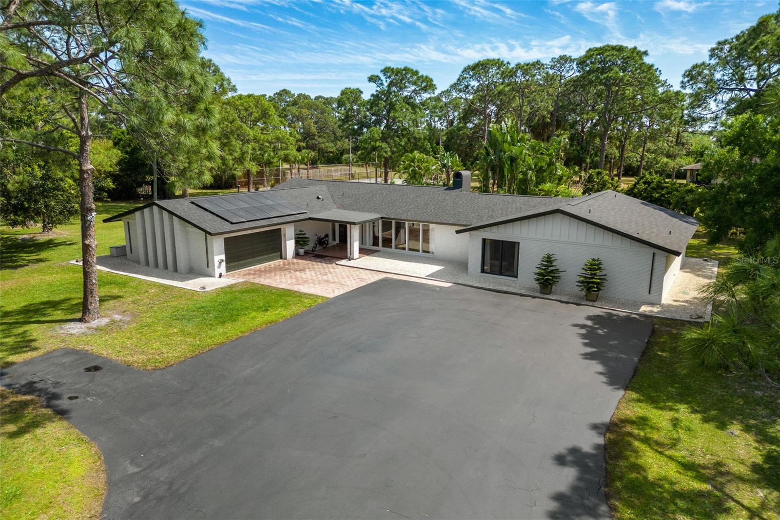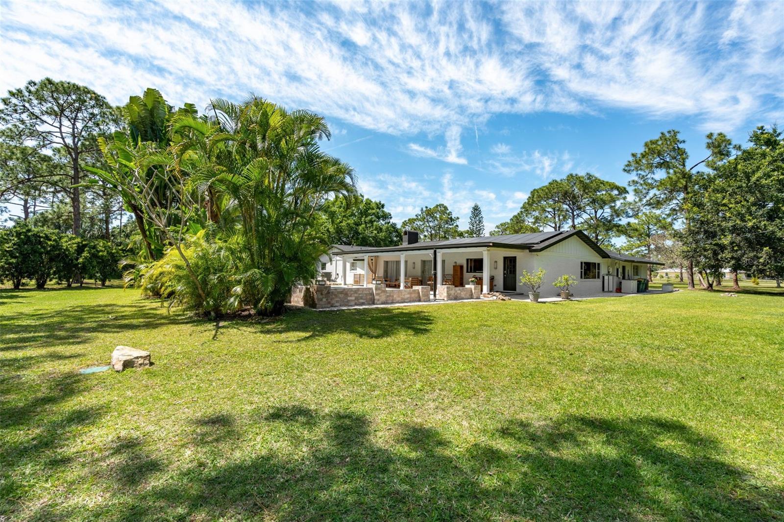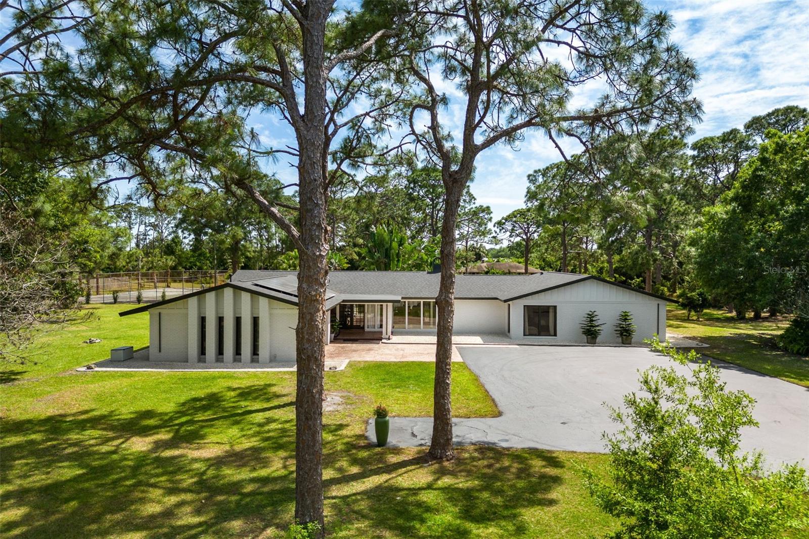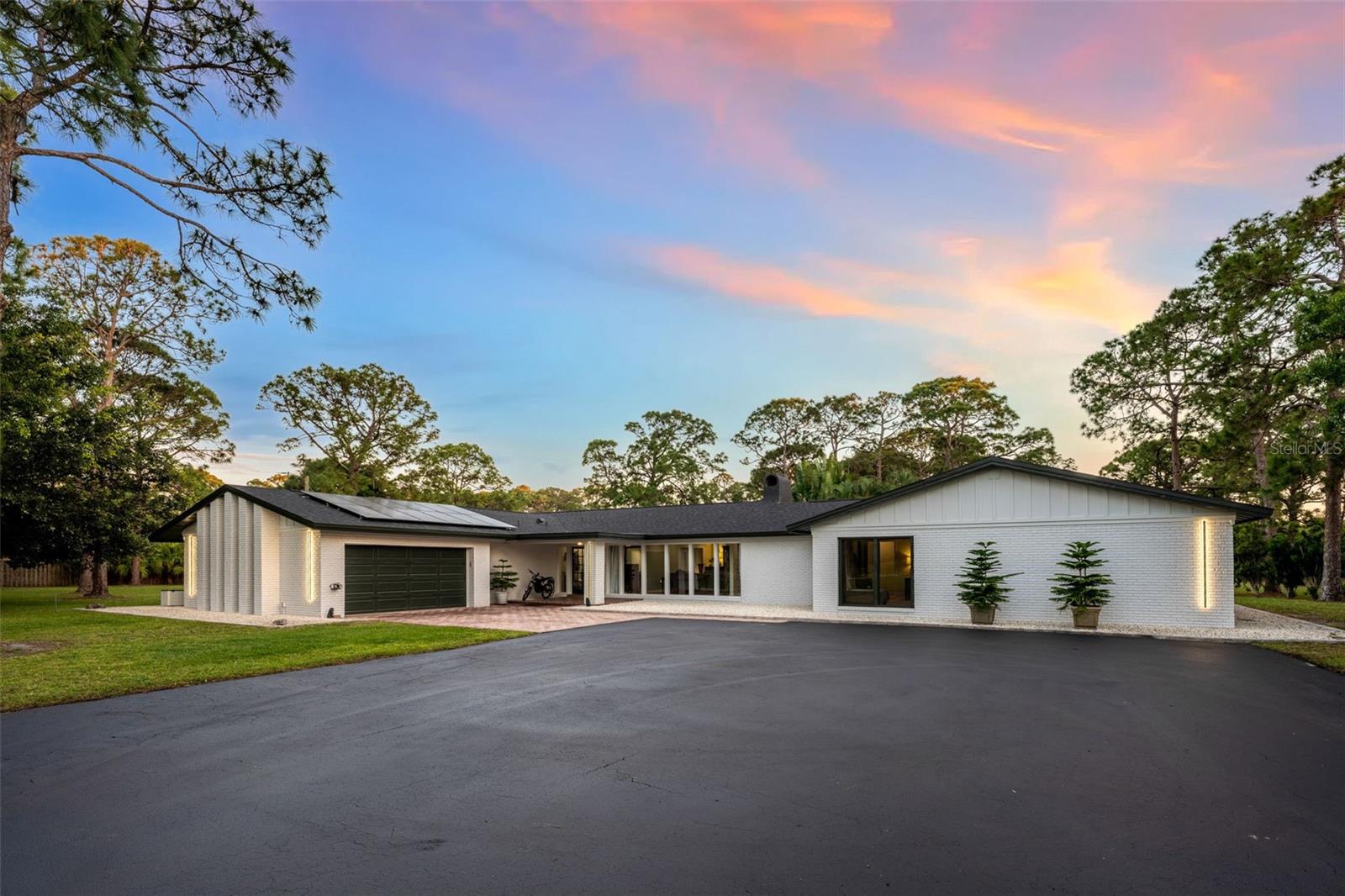 Unparalleled country retreat w/4 acres of prime agricultural land offering many business & living options. Powered by Tesla solar panels, the home boasts numerous amenities, including new roof & AC, large pool & spa, private tennis court, barn & a scenic pond w/fountain. A newly paved driveway leads to a welcoming home showcasing character through its brick exteriors, terra cotta tile & jute carpet. The living spaces are enriched by the natural light from the floor-to-ceiling windows & cozy fireplace, creating an inviting atmosphere. Wi-Fi-operated lights, security cameras, thermostats & electric panels enhance convenience & security. Built to last, hardy board exteriors & an advanced irrigation system powered by an artesian well ensure lush green surroundings. The air-conditioned garage offers insulated doors & finished floors, ideal for hobbyists. Within minutes to the airport, I-95, US1 & just 9 mi to the beach.