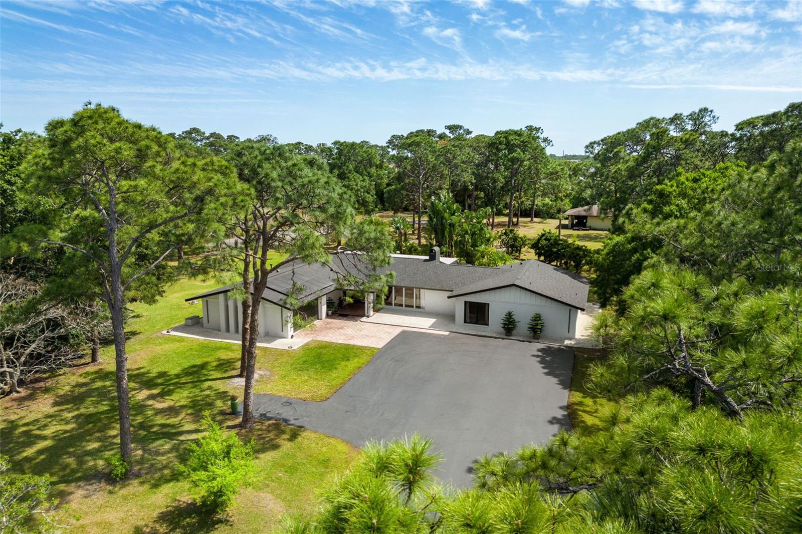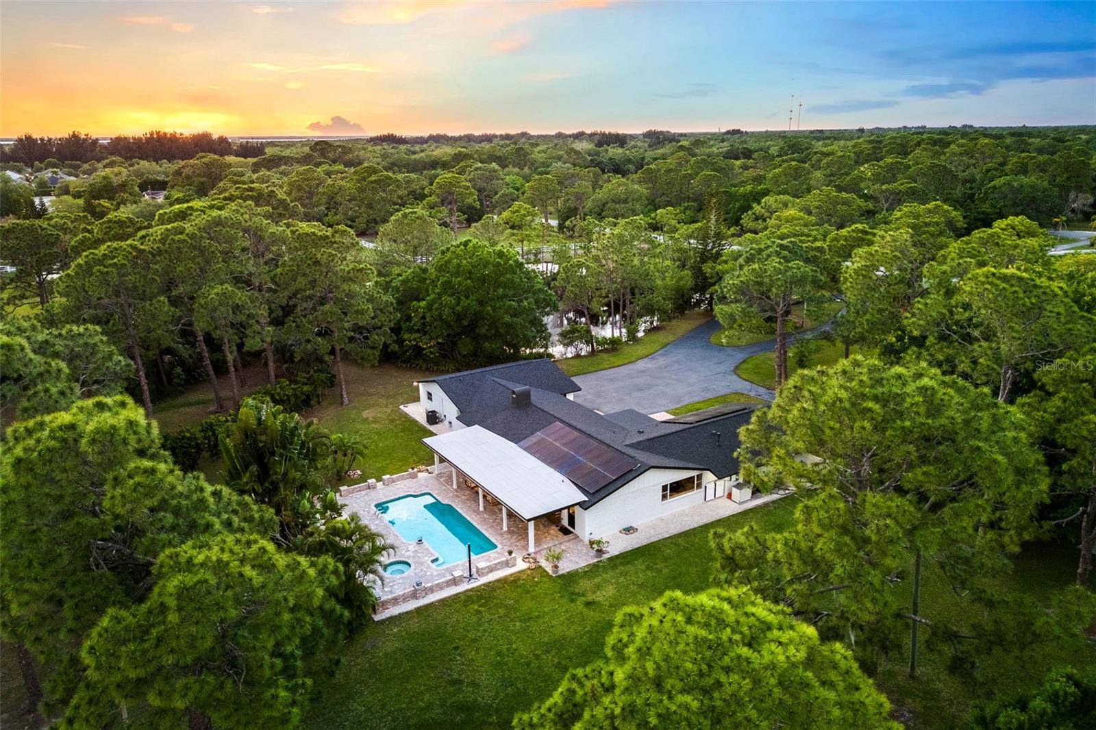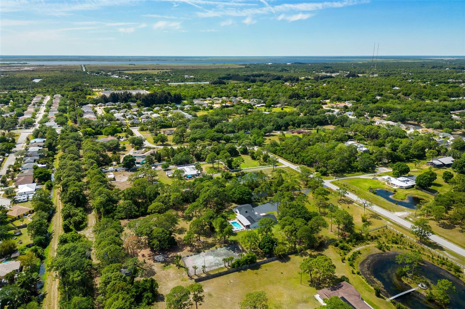 Unparalleled country retreat w/4 acres of prime agricultural land offering many business & living options. Powered by Tesla solar panels, the home boasts numerous amenities, including new roof & AC, large pool & spa, private tennis court, barn & a scenic pond w/fountain. A newly paved driveway leads to a welcoming home showcasing character through its brick exteriors, terra cotta tile & jute carpet. The living spaces are enriched by the natural light from the floor-to-ceiling windows & cozy fireplace, creating an inviting atmosphere. Wi-Fi-operated lights, security cameras, thermostats & electric panels enhance convenience & security. Built to last, hardy board exteriors & an advanced irrigation system powered by an artesian well ensure lush green surroundings. The air-conditioned garage offers insulated doors & finished floors, ideal for hobbyists. Within minutes to the airport, I-95, US1 & just 9 mi to the beach.