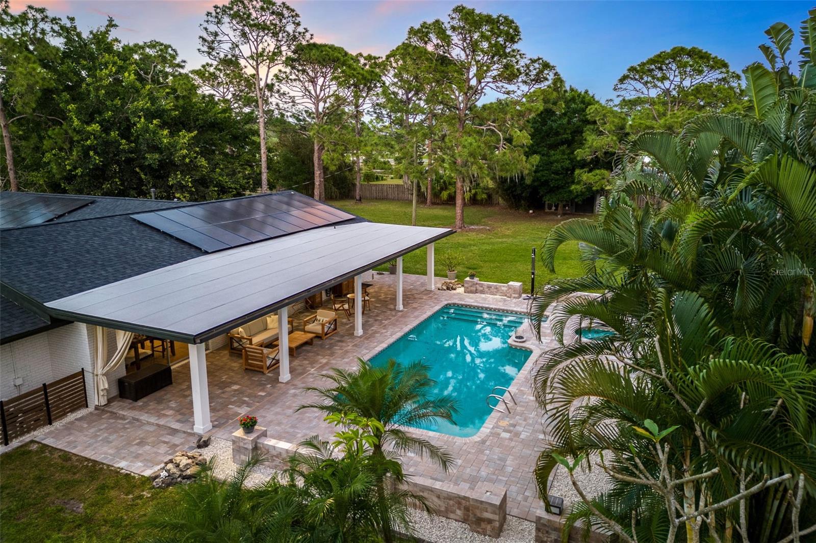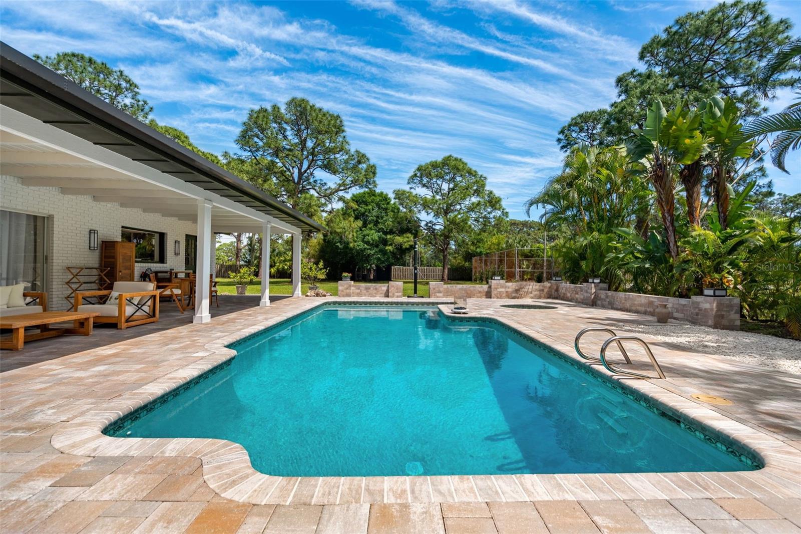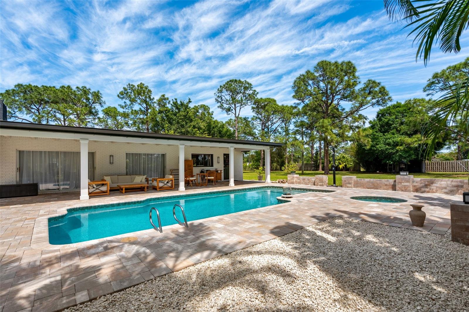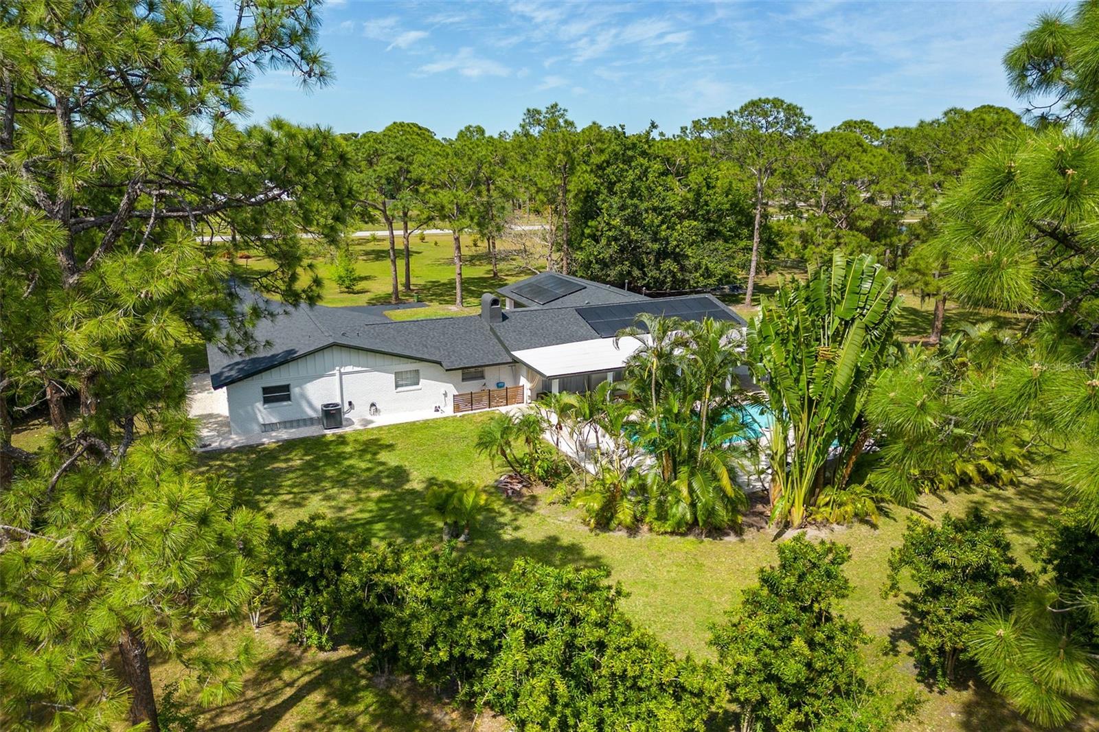 Unparalleled country retreat w/4 acres of prime agricultural land offering many business & living options. Powered by Tesla solar panels, the home boasts numerous amenities, including new roof & AC, large pool & spa, private tennis court, barn & a scenic pond w/fountain. A newly paved driveway leads to a welcoming home showcasing character through its brick exteriors, terra cotta tile & jute carpet. The living spaces are enriched by the natural light from the floor-to-ceiling windows & cozy fireplace, creating an inviting atmosphere. Wi-Fi-operated lights, security cameras, thermostats & electric panels enhance convenience & security. Built to last, hardy board exteriors & an advanced irrigation system powered by an artesian well ensure lush green surroundings. The air-conditioned garage offers insulated doors & finished floors, ideal for hobbyists. Within minutes to the airport, I-95, US1 & just 9 mi to the beach.