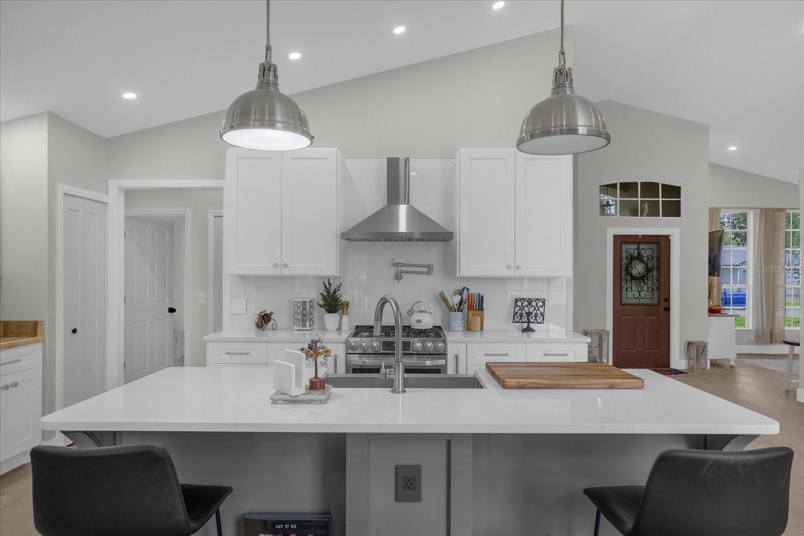 New improved price!!! Welcome to your dream home! This beautifully remodeled lakefront pool home, nestled on a serene, tree-lined street in the highly coveted Parkway Meadows, is a masterpiece of design and modern luxury. With a blend of sophistication and comfort, every detail has been thoughtfully curated to exceed the highest expectations. Step into the gourmet chef's kitchen, featuring custom cabinetry, sleek quartz countertops, a farmhouse sink, and high-end LG Studio true convection gas range with pot filler—ideal for preparing everything from daily meals to extravagant feasts. The kitchen’s open layout flows seamlessly into the living spaces, perfect for both quiet family nights and lively entertaining. The home is bathed in warm, elegant lighting from the state-of-the-art LED system, which highlights the stunning wide plank porcelain tile flooring found throughout. Retreat to the luxurious master suite, where the oversized modern shower—complete with multiple body sprays—promises a spa-like experience. A private commode and a generous walk-in closet complete this peaceful sanctuary. Step outside to your own personal paradise. The resort-style pool area, set against the backdrop of a manicured lake and the soft sounds of tropical birds, provides a tranquil escape from the everyday. Whether hosting guests or enjoying a quiet evening, the outdoor space is ideal for relaxation and entertainment.