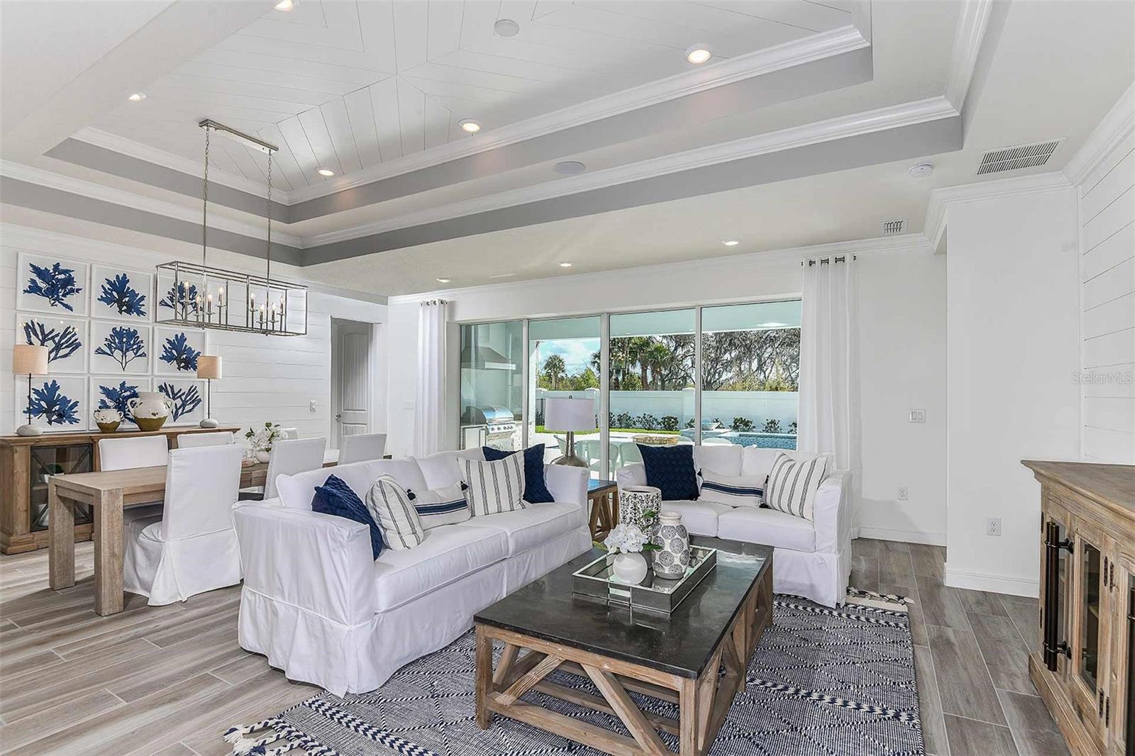 Step into the Stardom Home! This stunning one-story 3-bedroom, 2.5-bathroom, an open flex room, and 3-car garage masterpiece is situated on a .24 acre corner homesite with no rear neighbors and a water view. The open concept living area flows effortlessly, combining the kitchen, café, and gathering room into one expansive space that feels airy and inviting. The gourmet kitchen is a true focal point, featuring Whirlpool appliances, including a natural gas cooktop and refrigerator. Soft-close cabinetry, a wood canopy hood, quartz countertops, and pendant lights add the perfect blend of style and convenience. The pocket sliding glass doors, which connect the living area to the covered lanai, flood the home with natural light, creating a bright, vibrant environment that brings the outdoors in. Step outside into your private outdoor retreat. The private Owner’s Suite, located at the back corner of the home for ultimate privacy, offers a tranquil retreat with a spa-inspired en suite bathroom, oversized walk-in closet, linen closet, frameless glass enclosed shower, garden tub, and enclosed toilet. The Stardom also features two spare bedrooms located in the opposite back corner of the home, allowing privacy for everyone, and an open flex room at the front of the home- perfect for a sitting room or home office. The laundry room makes daily tasks a breeze, offering the convenience of built-in cabinetry, a quartz trimmed utility sink, and brand-new Whirlpool washer and dryer. The 3-car garage provides plenty of space for vehicles, storage, or hobbies. Don't miss out on your chance to own one of the best homes in the neighborhood! Schedule a tour today!