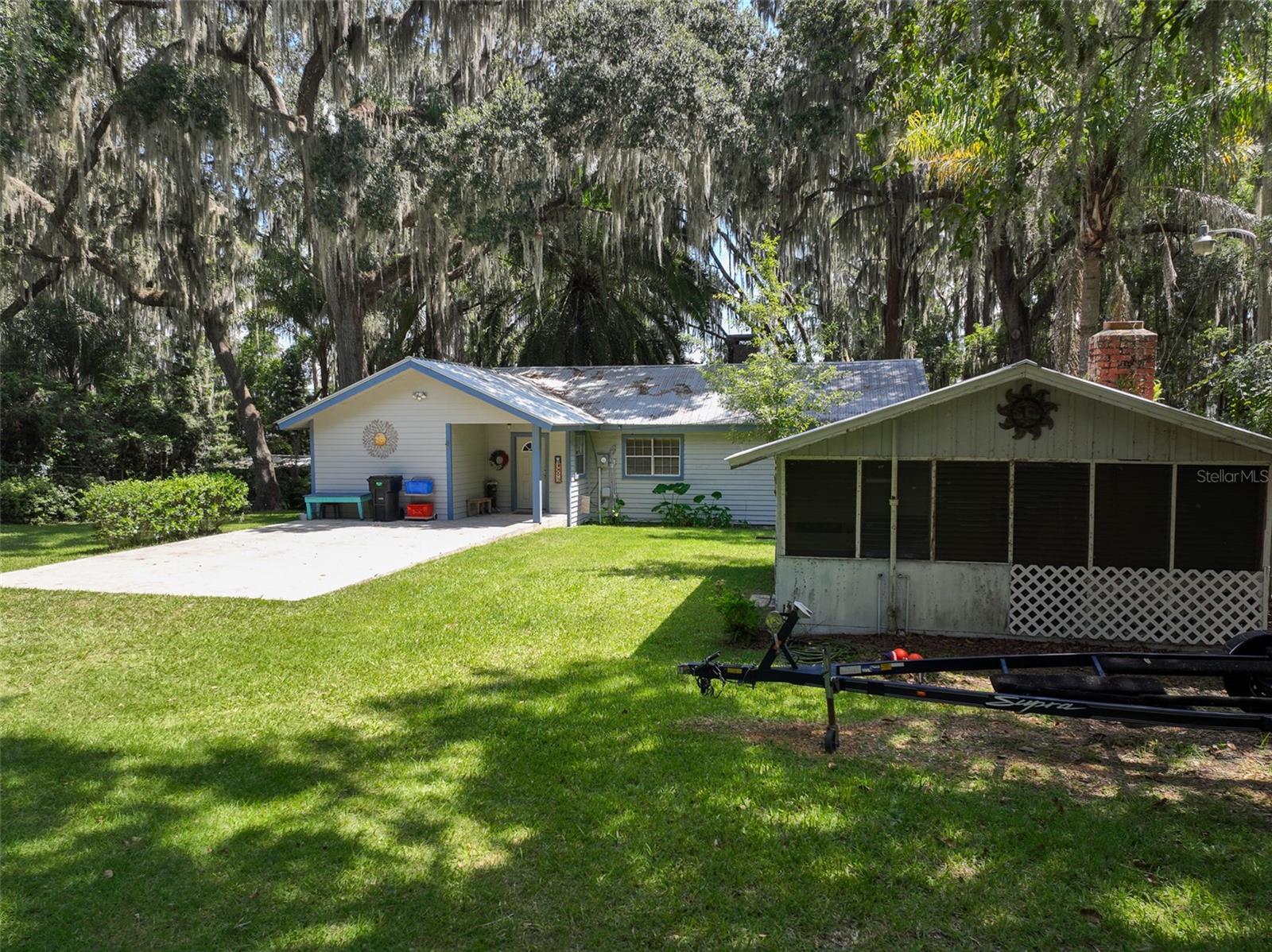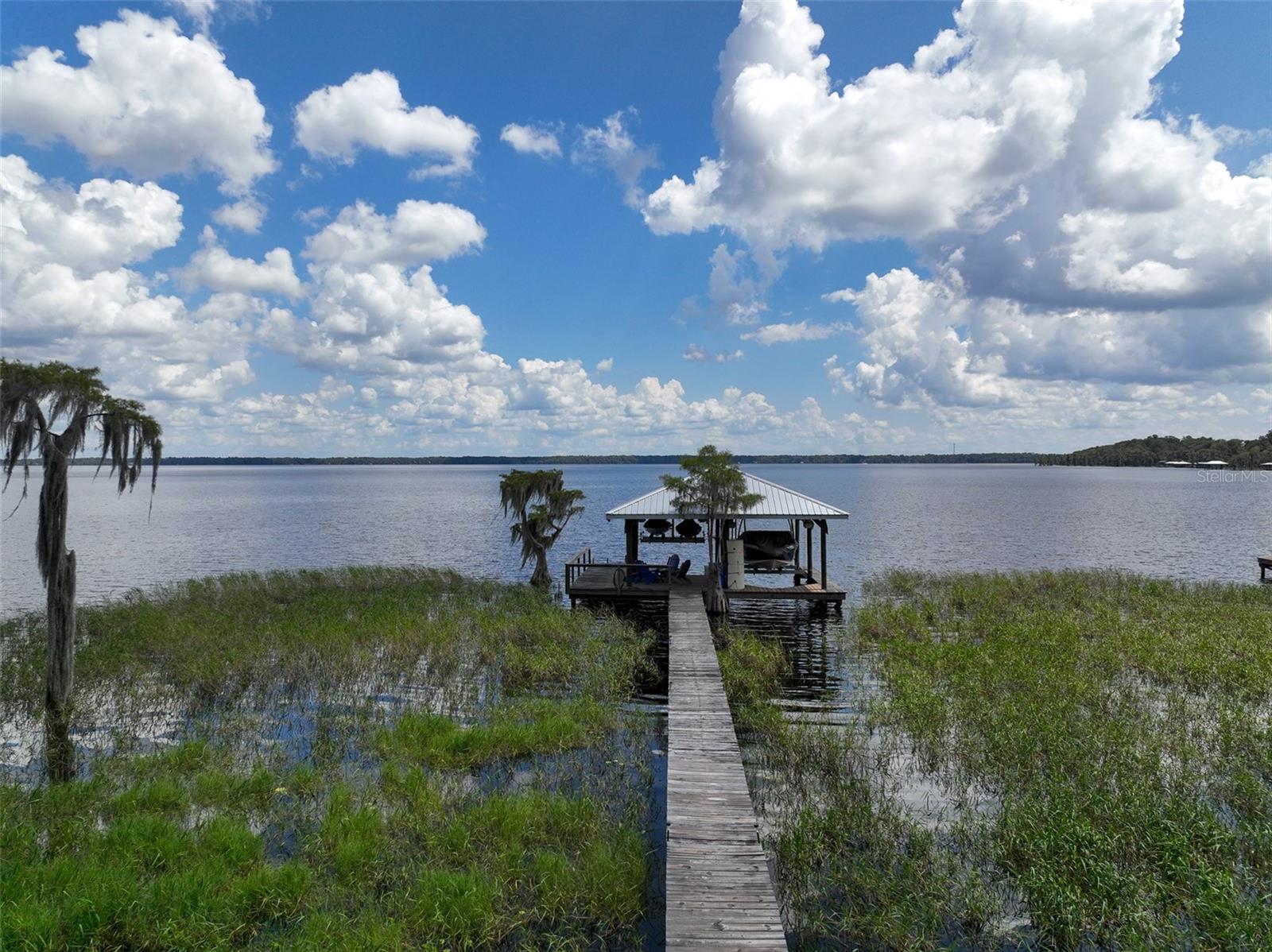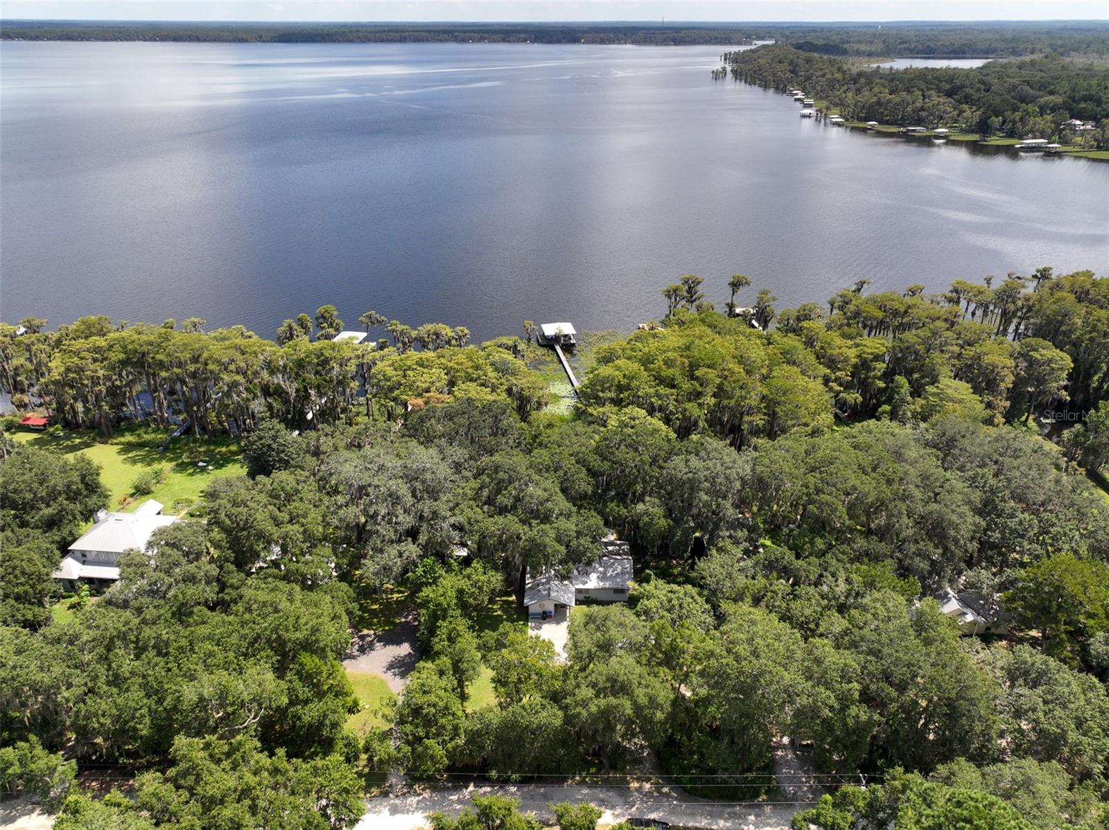 A prime location on the most desired lake in the region! Enjoy beautiful lake views and sunrises from this classic lake home located on Big Lake Santa Fe. This property has been remodeled and features a cozy living room with brick fireplace and vaulted knotty pine ceiling. The home also has an updated kitchen, wood and ceramic tile floors, and a metal roof. It has a 23x13 lakeside screen porch and deck with a beautiful view of the water. The lot features a 200 foot long dock with a double covered boatlift for ski boats and jet skis. The 0.37 acre lot has Large oaks, a fenced in yard and a storage building. Lake Santa Fe has over 5800-acres of natural beauty. Don't miss out on the lake life, schedule your showing today!