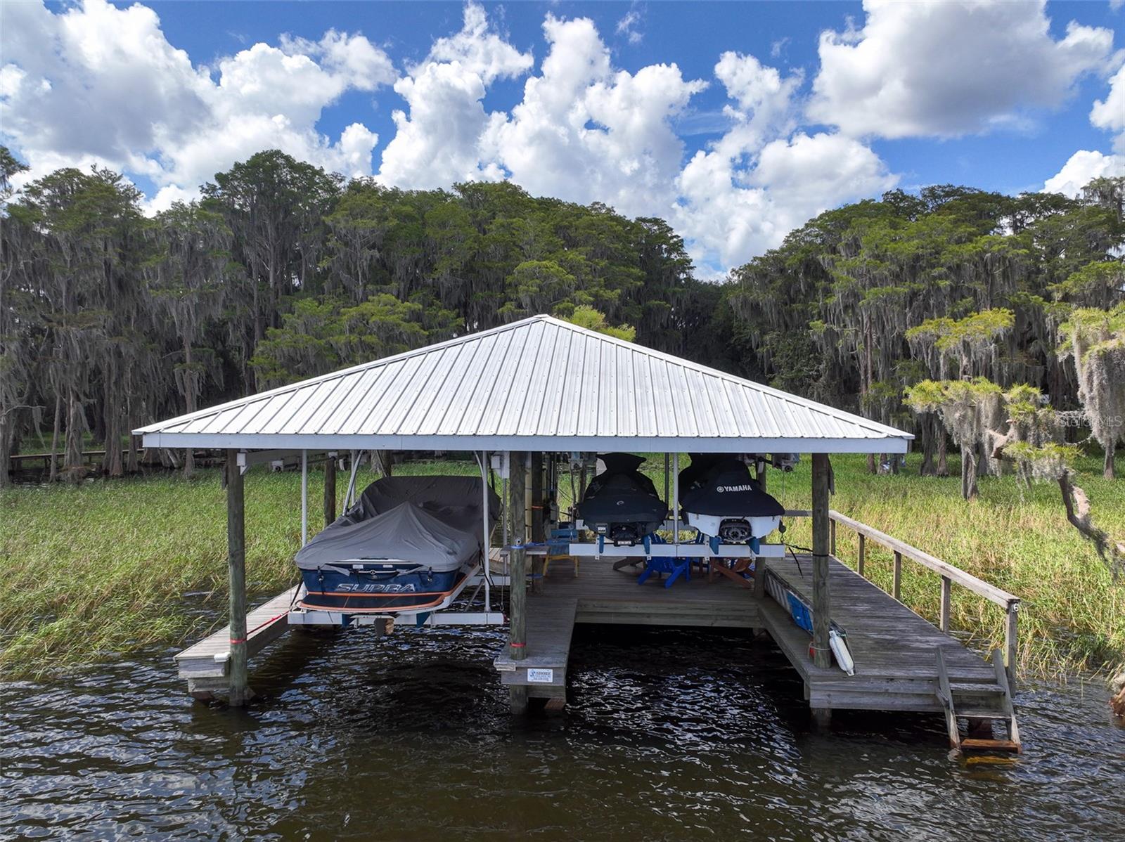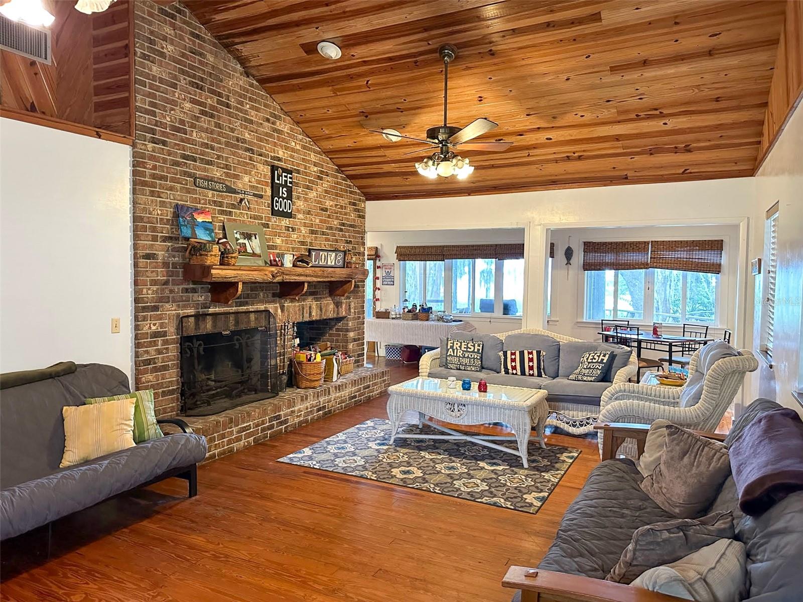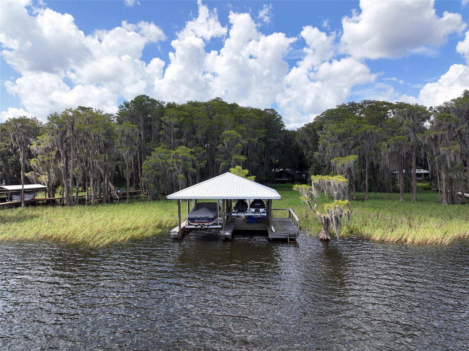 A prime location on the most desired lake in the region! Enjoy beautiful lake views and sunrises from this classic lake home located on Big Lake Santa Fe. This property has been remodeled and features a cozy living room with brick fireplace and vaulted knotty pine ceiling. The home also has an updated kitchen, wood and ceramic tile floors, and a metal roof. It has a 23x13 lakeside screen porch and deck with a beautiful view of the water. The lot features a 200 foot long dock with a double covered boatlift for ski boats and jet skis. The 0.37 acre lot has Large oaks, a fenced in yard and a storage building. Lake Santa Fe has over 5800-acres of natural beauty. Don't miss out on the lake life, schedule your showing today!