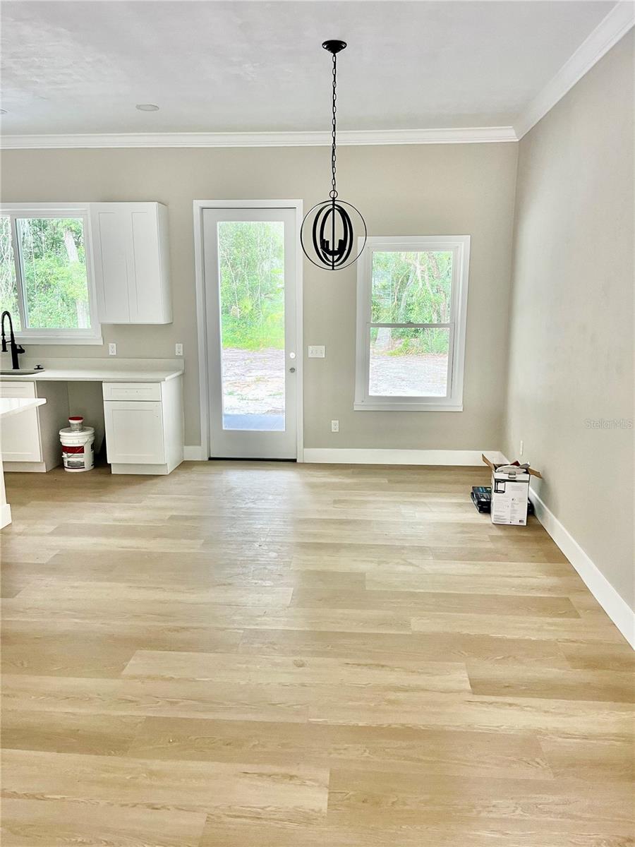 Under Construction. Seller Offering Rate Buydown and Paid Appraisal with Preferred Lender!!! Almost Ready to Move In! Your future dream New Construction home awaits in the desirable Seminole Woods neighborhood of Melrose. This stunning property offers private deeded access to the 6,800-acre Lake Santa Fe, making it perfect for those who appreciate lake life and a peaceful community. This spacious 4-bedroom, 2.5-bath home spans 1,865 square feet, featuring a thoughtful split floorplan that ensures privacy and comfort. The heart of the home is a large great room that flows seamlessly into a separate dining area. The kitchen is a chef’s delight, boasting real wood white cabinets, a breakfast bar, and a walk-in pantry, all complemented by luxury vinyl plank flooring that extends throughout the entire home. The owner's suite offers a private retreat with a walk-in closet, dual vanities, a soaker tub, and a luxurious walk-in shower. Each additional bedroom also features its own walk-in closet, ensuring ample storage space for everyone. French doors in the great room open to a lanai, inviting you to enjoy your large backyard—perfect for outdoor entertaining or creating your own oasis. With no HOA fees, this home allows you the freedom to personalize it as you wish. The home is designed for energy efficiency, featuring low E windows, a 14 SEER AC system, and a durable all-concrete exterior with Hardiboard siding. Additional highlights include a 2-car garage, a large laundry/utility room with a sink, and top-quality finishes throughout. Completion is expected around October 2024. The builder offers a 1-year cosmetic warranty and a 10-year structural warranty, giving you peace of mind with your investment. Melrose is known for its rich cultural community, offering restaurants, shopping, art galleries, and vibrant music events with local vendors. Conveniently located between Gainesville, Palatka, and Ocala, this home provides the perfect blend of tranquility and accessibility. Don’t miss this opportunity—contact us today for more information and to schedule your visit!