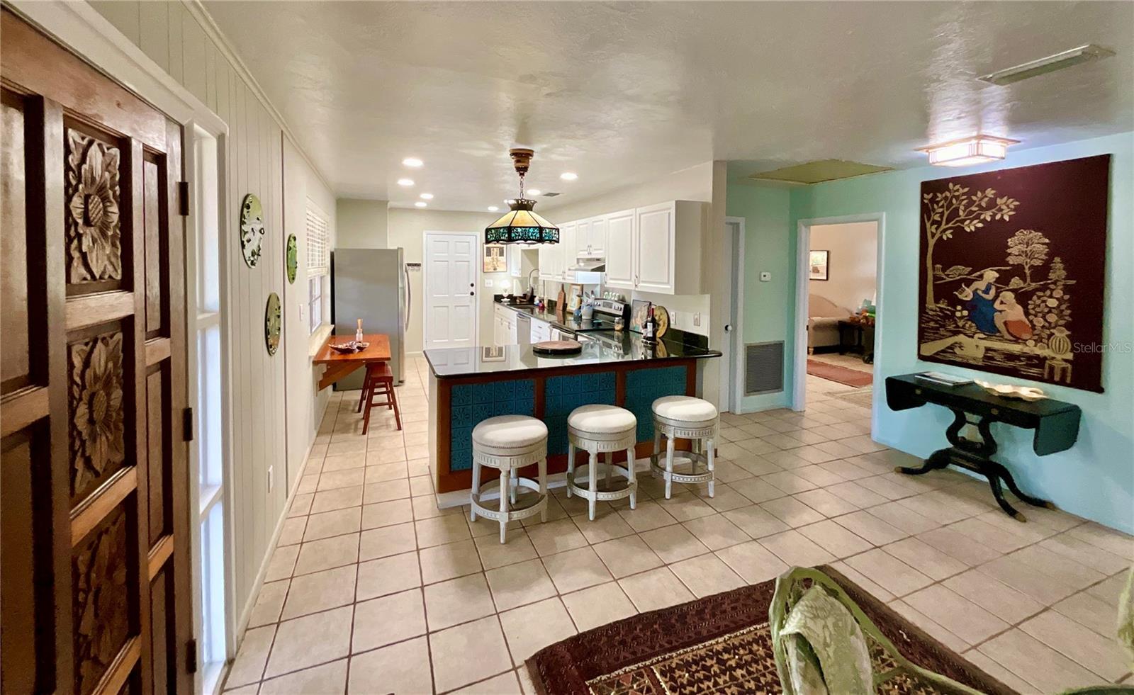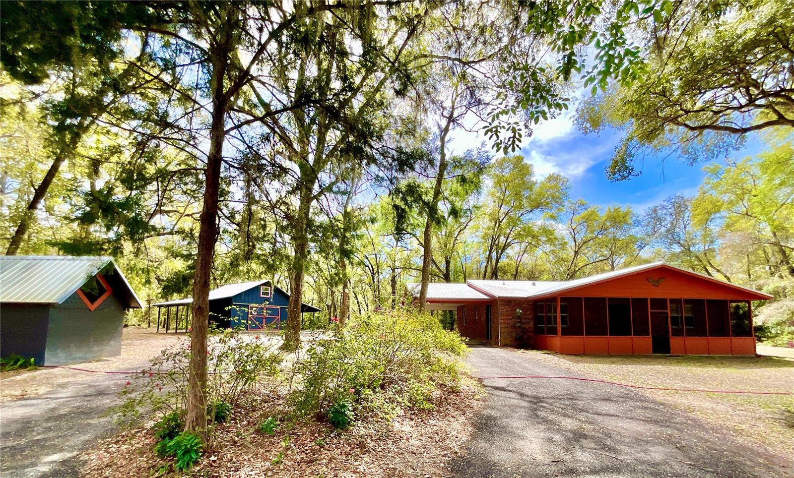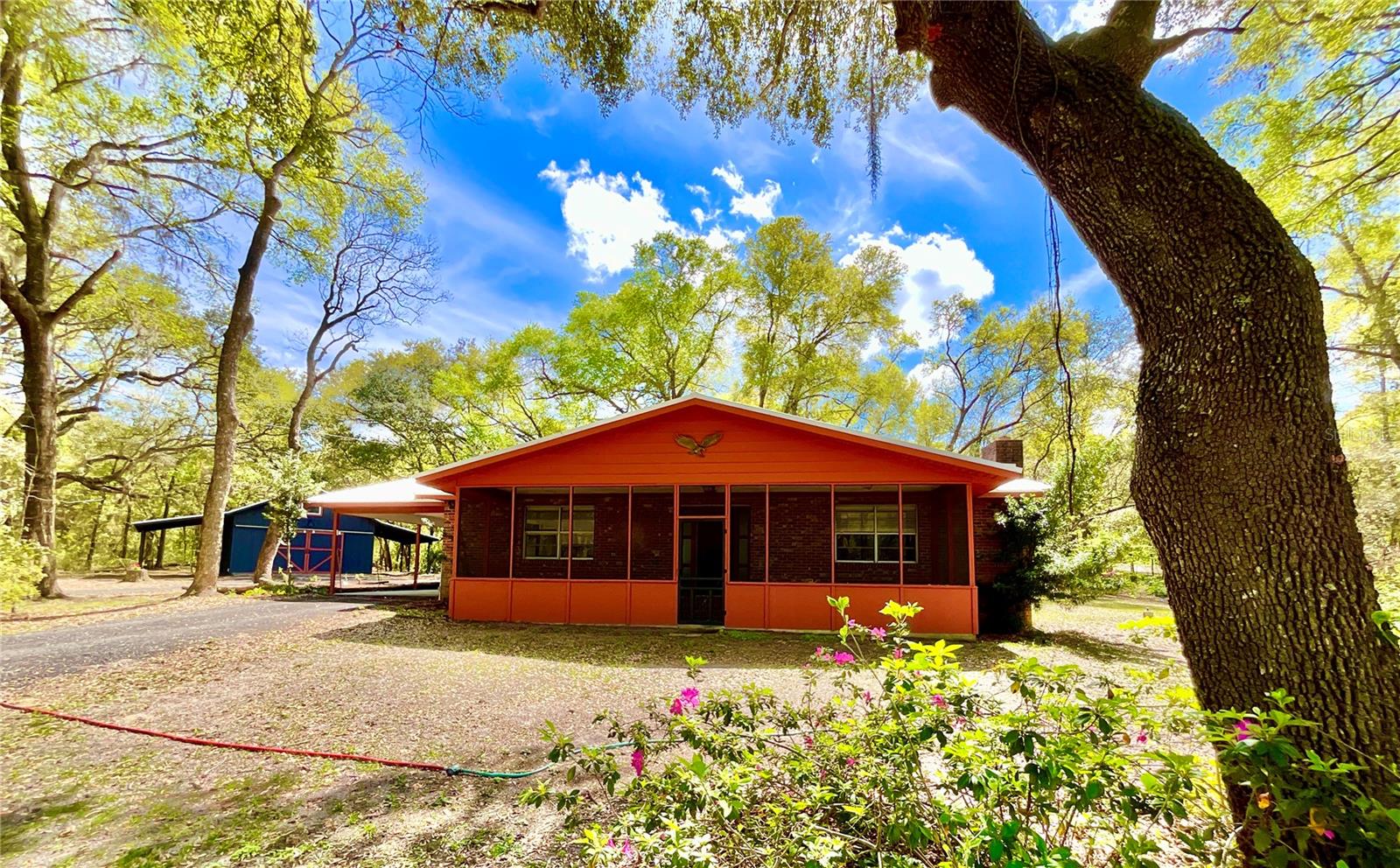 Beautiful and peaceful remodeled home on 2.45 acres in desired Melrose. 2023 NEW METAL ROOF. SURVEY INCLUDED. This 2BR 2BA gem is ready for you to relax. Brick construction with large living room with beautiful new fireplace and custom mantle. Large kitchen with bar seating and granite counters and abundant cabinet space and storage. So many upgrades including new water heater, new light fixtures, new paint, recessed lighting, new toilets, new well tank with ozone water filtration system and new wood blinds. Potential rental living space in separate 600 square foot barn /garage/shop with sliding doors, loft and 4 parking spaces. Large screened porch with custom pony wall. Circular driveway,recent septic tank clean out and tree trimming. Conveniently located for easy commute to Gainesville, St. Augustine and the beaches. The lake region and Melrose is a fantastic place to be with fine art, live music, great restaurants and Lake Santa Fe.