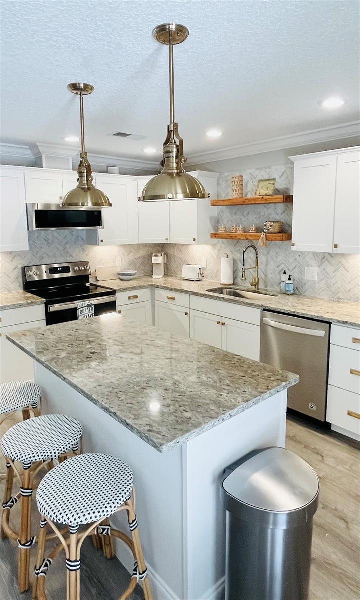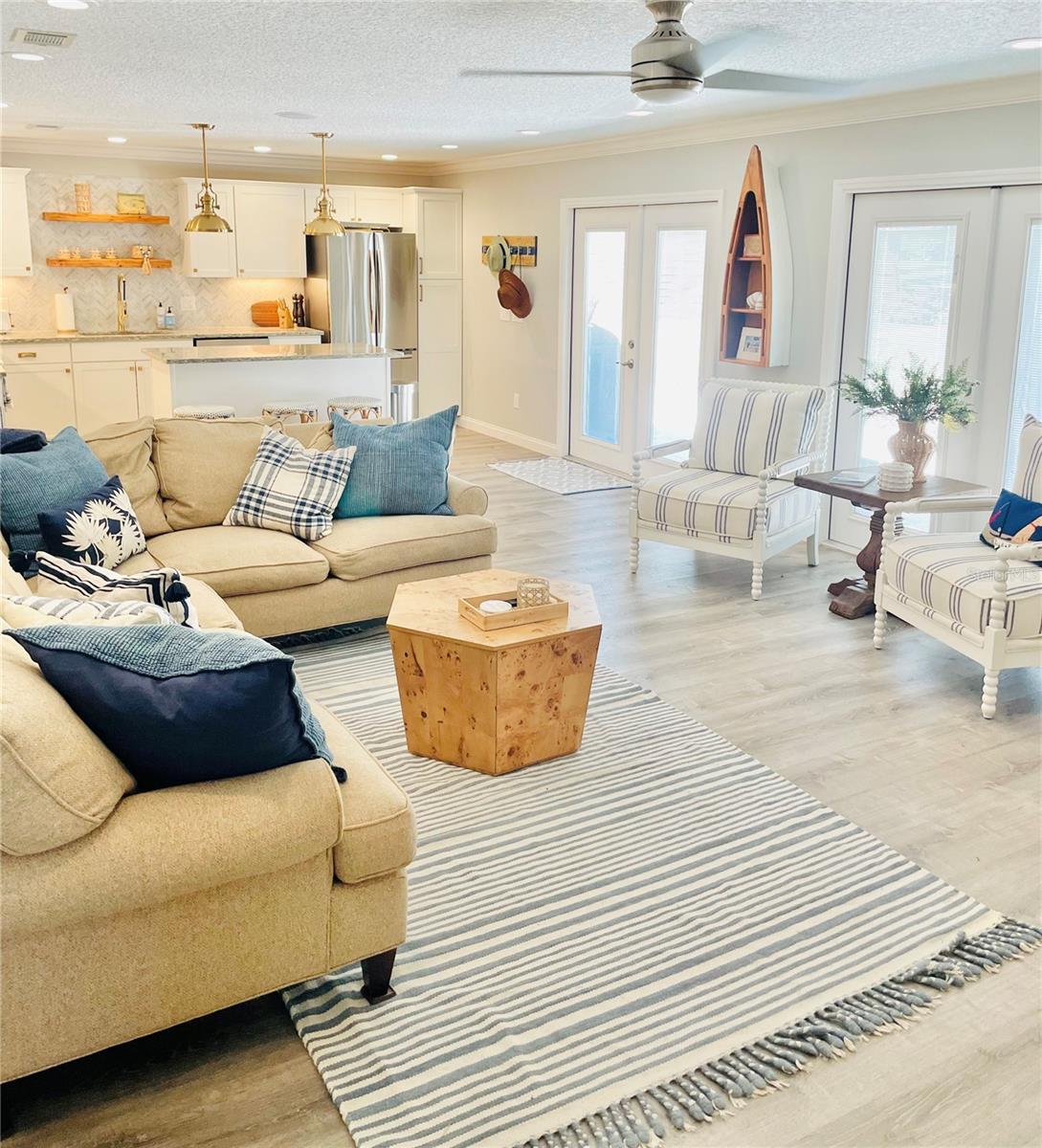 NEW ROOF, PLUS Price Reduction!! New roof was just installed Oct 2025! This is a beautiful 3-bedroom, 2-bathroom Pridgen built brick home nestled along the serene waters of Lake Santa Fe Canal Shores. With 1,594 sq. ft. of heated and cooled space, this fully renovated gem is a true showcase of modern living and timeless charm. Every detail has been thoughtfully designed, from the brand-new flooring and cabinetry to the exquisite crown molding and heart pine accents throughout. Interior Features: · Spacious, open floor plan with a separate dining room, bar room, and TV room. · Stunning new kitchen featuring granite counters, island, custom herringbone marble backsplash, under cabinet lighting and stainless-steel appliances. · A custom bar room with navy cabinetry, wine rack, sink, and stainless-steel drink refrigerator perfect for entertaining. · Primary suite with closet built-ins and en-suite bathroom and a luxurious full shower, while the second bathroom offers a tub with shower. · In-ceiling speakers throughout, custom doors, and shiplap detailing add both functionality and style. · Cozy fireplace and custom lighting with dimmers create the perfect ambiance for any occasion. · The laundry room, with a charming sliding barn door, adds an extra touch of character. · New double-insulated windows ensure energy efficiency and comfort year-round. · Custom Plantation Shutters on all Windows Outdoor Living: · Step outside to a stunning paver patio and large fire pit area surrounded by a beautiful sitting wall, perfect for outdoor gatherings. · Just two to three minutes via boat to Lake Santa Fe after leaving your new dock, equipped with durable Trex decking, complete with separate floating dock — the ideal spot for a relaxing day or fishing adventure. Excellent fishing for largemouth bass, crappie, and bluegill right off your dock. · Professionally landscaped grounds with zoysia sod, tropical plants including palm trees, banana trees, ginger, snake plant, croton’s, viburnum's and more, a multi zone irrigation system, exterior uplighting on the home and majestic oak trees create a magical ambiance, a fully fenced property with 5-board cross board fencing and wire for privacy and security. Location: One street over from Santa Fe Lake Park and boat ramp. Just minutes from downtown Melrose, this home offers easy access to local restaurants, farmers markets, grocery stores, schools, and more. Experience the perfect balance of peaceful lakeside living with the convenience of nearby amenities. 20 Minutes from Gainesville. Don't miss out on the chance to own this incredible Lake Santa Fe waterfront home — a rare opportunity to live in a fully renovated, custom-designed, turn key retreat in a prime location. You would be very proud to live here! Priced to sell quick!