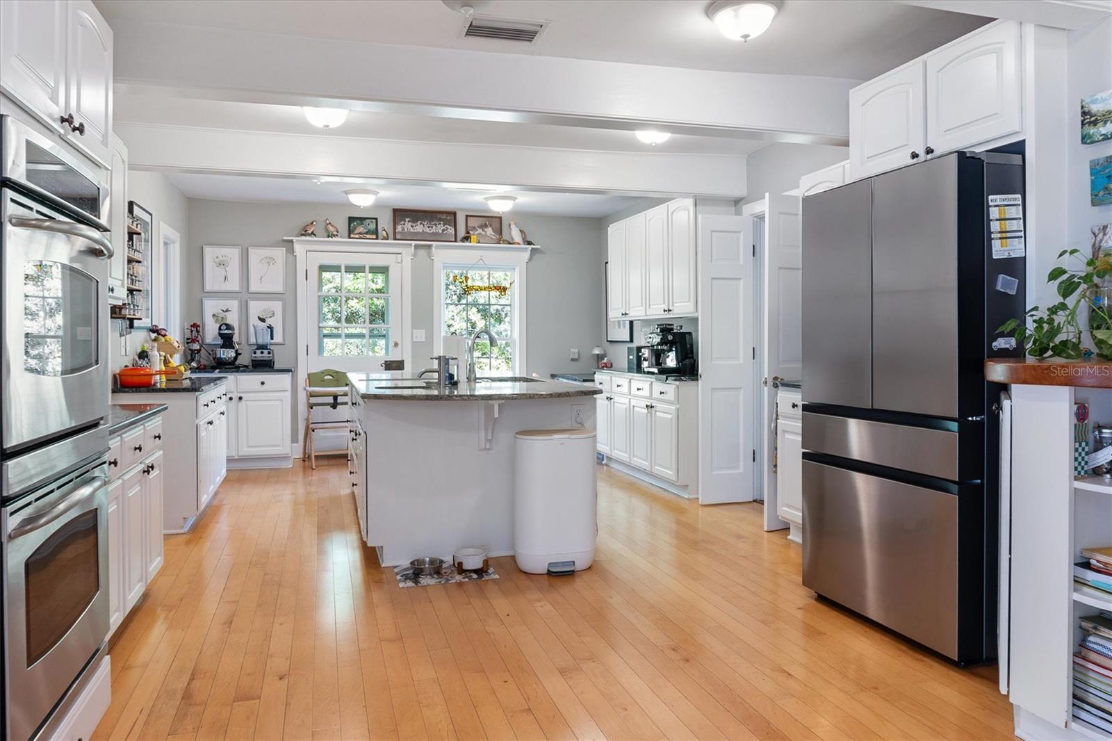 Nestled on the tranquil shores of Melrose Bay in Melrose, Fl, this beautifully maintained lakefront home offers the perfect blend of charm, history, comfort and thoughtful upgrades. With an expanded ADA compliant downstairs bedroom with ensuite in 2020, this property has been meticulously improved over the years to enhance both style and function. Recent updates include modern kitchen appliances (2024), dual water heaters (2024), Nest thermostats, and a fully integrated ADT security system. Enjoy outdoor living with two new brick patios, a cozy fire pit, lush native landscaping, and a shell driveway (2021). The home also features solar panels (2022), a stylish pergola (2021), upgraded garage doors and electrics (2023), and a smart home package including Google smoke detectors and smart locks. Interior highlights include high ceilings throughout the house, refreshed flooring in the dining, laundry, and veranda areas, custom window treatments, and a freshly painted kitchen. With countless thoughtful enhancements and serene lake views, this property is ready to enjoy as a peaceful retreat or full-time residence.