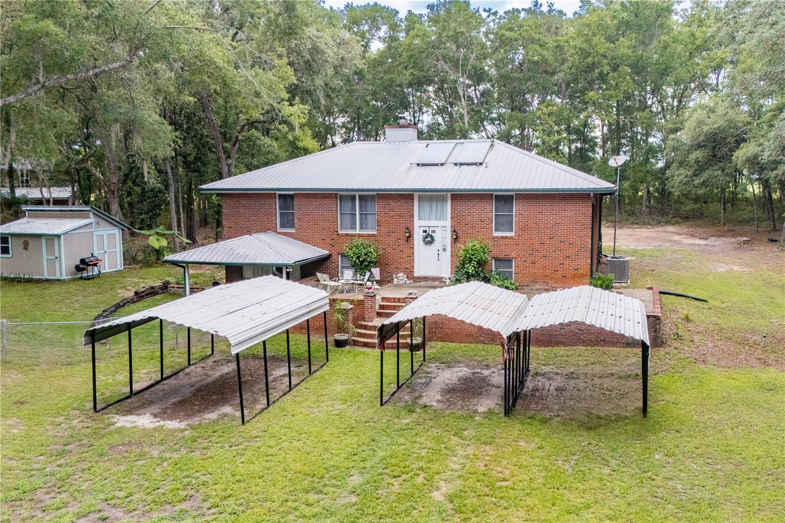 Motivated Sellers! All reasonable offers will be considered. Captivating, yet welcoming two-story brick home on 4.57 fenced acres. A hidden gem near Gainesville yet nestled between Melrose and Keystone Heights in Clay County this stunning country home offers the perfect blend of comfort, space and versatility-this traditional brick home patio boosts five spacious bedrooms and three bathrooms. Step inside to find a warm and inviting living room with brick fireplace, and eat in kitchen, a screen porch, and a large deck, perfect for relaxing and entertaining guests The lower floor features, a cozy family room, a bonus entertainment/game room, ideal for a pool table, also a oversized laundry room and two bedrooms & full size bath with walk in shower, making it a great layout for a family or guest. But that's not all the property also includes a massive of two story 1800 ft.² barn with large sliding door, offering endless possibilities as a Woodworking shop, man cave or she shed. Additional features include. Additional features include: " Double-pane windows " Electric and solar water heater " Plenty of natural light " Quiet, private surroundings *. Solar & Electric HWH *. Eat In kitchen *. Split bedroom *. Vaulted Ceiling *. Walk In Closets *. Back - Screened Porch & Deck *. House -Metal Roof *. Lower level - Walk In Shower *. Upper level - Two Baths with Tub and shower *. Shed *. 1800 sf Barn/Man-cave/Workshop *. New gutters with leaf guard 2025 *. 2022 newer 3 1/2 ton HVAC system *. Refrigerator has Ice maker and water *. 3 metal carports *. Updated water softener system 3/2022 *. Melrose Road currently being paved *. Front concrete patio 14' x 36' *. Outdoor Flood lights *. ADT wired in house *. Wood burning fireplace in living room *. Granite counter top in kitchen *. Four generations of deer have inhabited this property & all other manner of wildlife This property truly has it all! space, functionality, and classic charm. Take a look at the photos and call today to schedule your private showing!