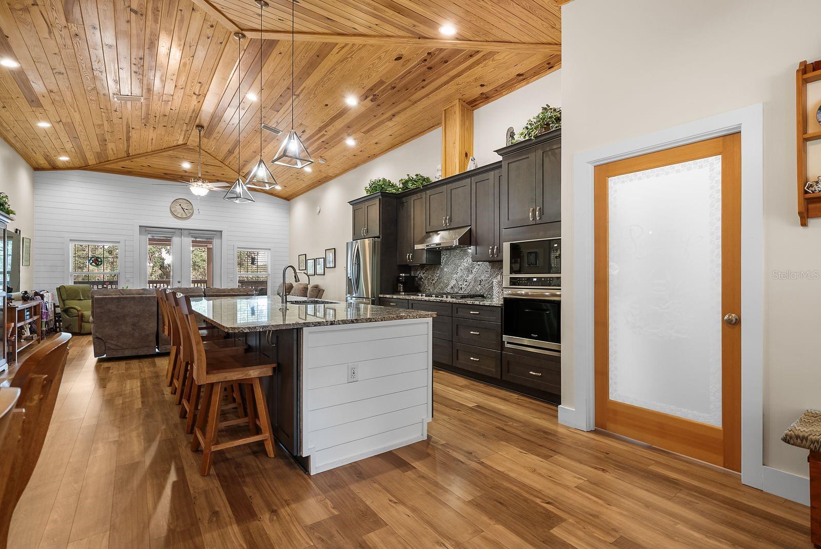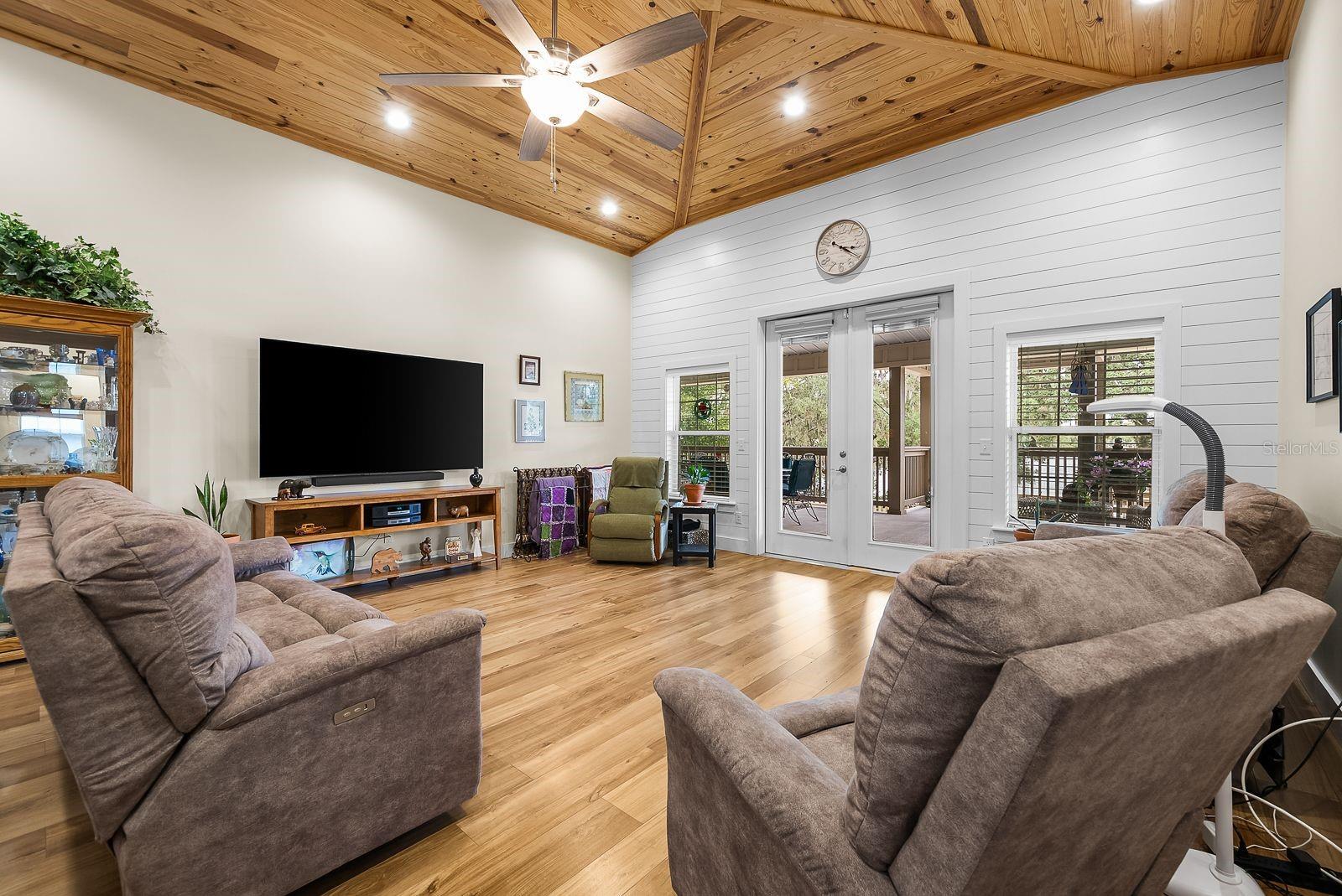 Come home to Florida lakefront living at its best! Welcome to the cool clear waters of Lake Lilly and this nearly new well built three bedroom and two bathroom home with stunning views. Wood lined cathedral ceilings greet you as you enter the light filled great room from the front porch with unobstructed views through the open concept dining, kitchen, and living area to the sprawling back porch and out to the covered dock. The kitchen is an entertainer's dream with a massive island, granite counters, stainless appliances, and a gas cooktop. A luxurious primary suite offers lake views, covered porch access, two walk-in closets, and a spa like bathroom with oversized shower and a walk-in soaking tub. The split floorplan includes two additional large bedrooms and a spacious bathroom. Boating is a breeze with the private ramp and covered storage complete with full 30 amp RV hookups. No detail was overlooked and no expense spared when building this lakefront retreat from the world. A solar panel system contributes to energy efficiency, and everything runs as usual during prolonged power outages thanks to the whole house generator with a 1,000 gallon in-ground propane tank. The air conditioned garage includes workshop space with stainless sinks and plenty of room to store more than cars. A carport and two sheds provide covered parking and storage near the house, and there's another by the dock for easy access to all those water toys and floats. Lake Lily is a private spring fed lake in the heart of north central Florida's lake region with easy access to Gainesville, Jacksonville, and Ocala. Nearby Melrose and Keystone offer many great dining and shopping options. Call today to see this amazing property for yourself!