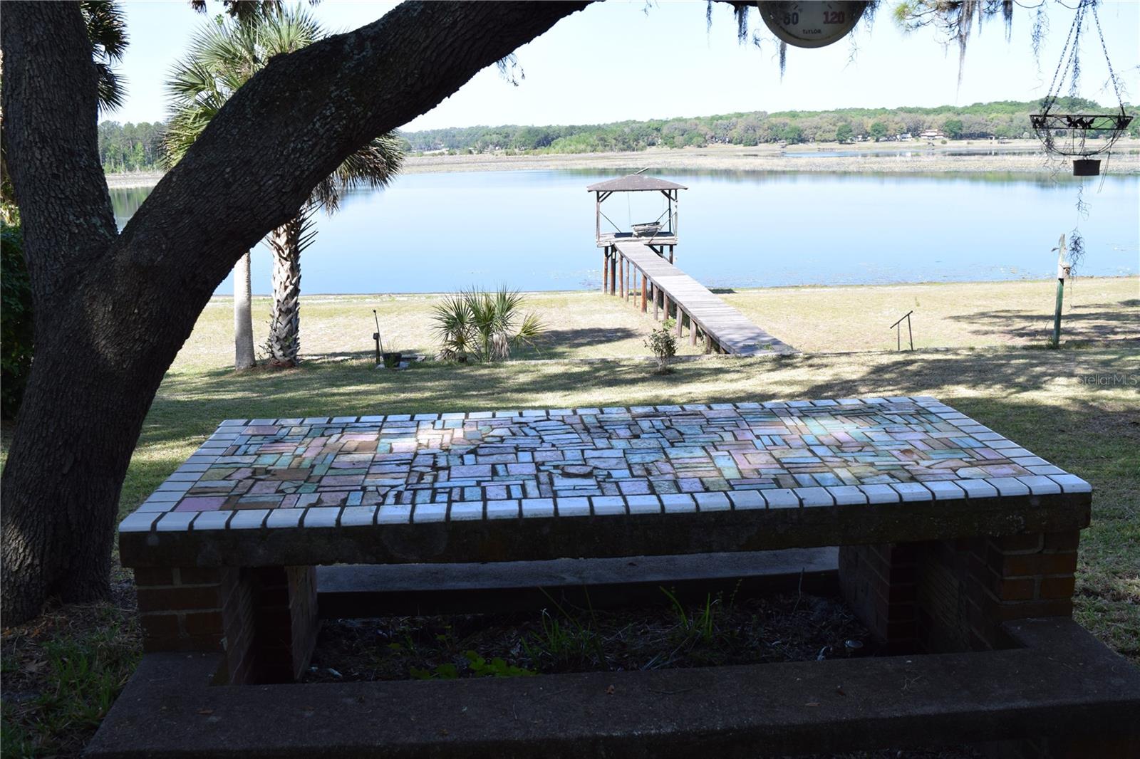 Paradise on the lake. 3 bedroom 2 bath home with fireplace. Kitchen looks out to lake along with formal dining area and laundry area. Concrete picnic table under the trees to enjoy the view. Large workshop 24 x 27 with storage and attic. Living room windows have glass shelves. Large workshop with lots of storage. Drought has lake low and roads are soft.