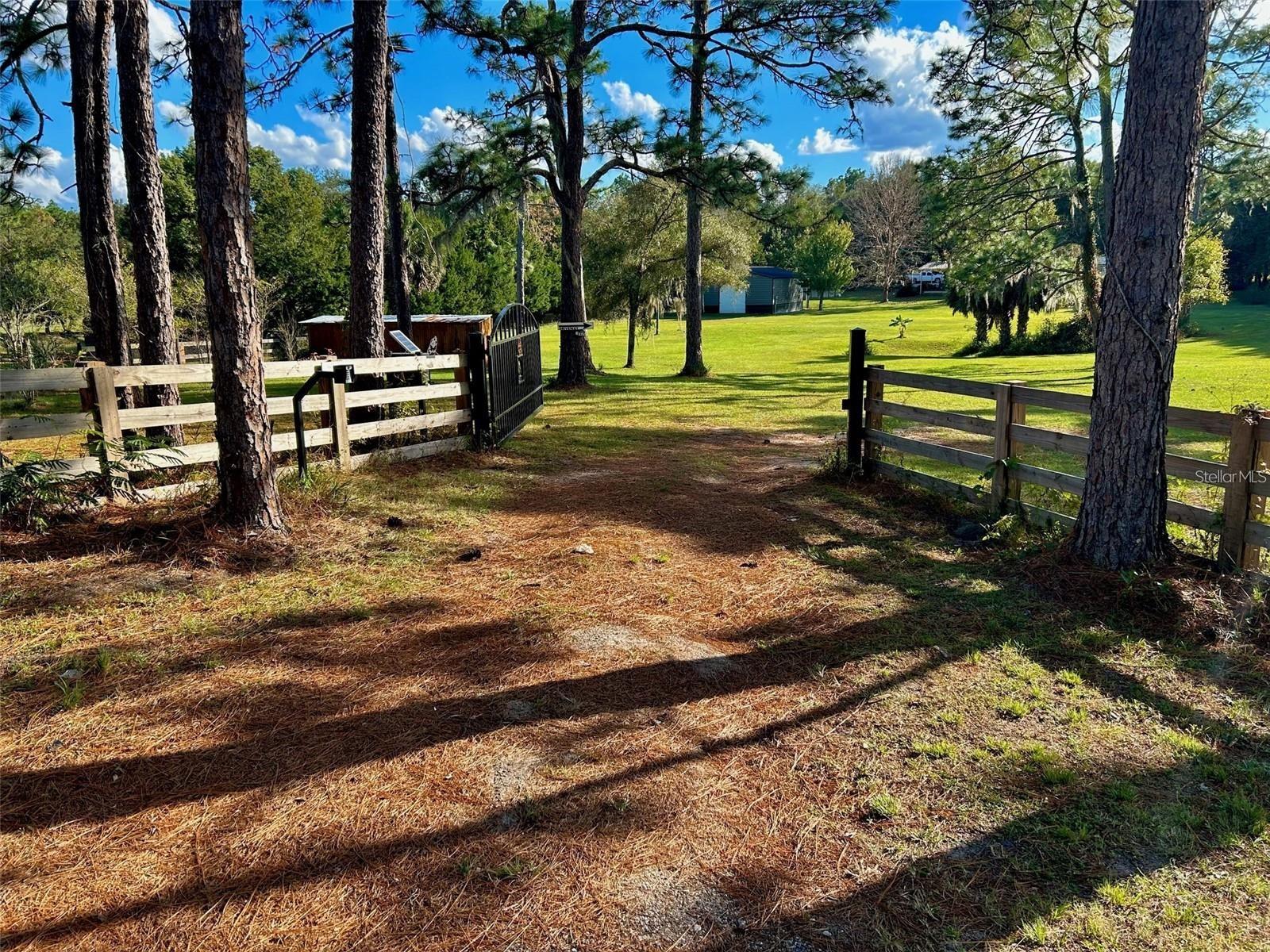 Amazing opportunity to live just 1 mile East of Historic Melrose on over 3 parklike aces! Property is gated and ideal for a family with plenty of beautiful green grass to play. The back of the land borders 9 acres that is landlocked,, county property, great for a motocross track, target practice, side by side riding, ect ect. Home also comes with a 34' above ground pool with an extra large sand filter. Home sits the back corner of the 3.08 acre lot that has an incredible view. Home has stainless steel appliances, Samsung washer and dryer and home can come fully furnished !!! Home has a North facing front deck, and a screened in rear patio, metal roof w/ 3 skylights that really save money with natural lighting. Tile and laminate floors, fireplace, new windows, granite countertops, large master bedroom with big walk in closet and garden tub. There is a 4th bedroom that would be a perfect office or pet room. Property has 2 storage sheds and a new 30x40x12 drive through site built metal building with concrete floors, front awning, led lighting, 10' roll up doors and a side mini carport, driveway is poured solid concrete. Land is fully fenced and comes with a newer zero turn mower, huge flint rock, palm tree laden pond. 2 honey sweet orange trees and mature Cedar Trees that line the property for privacy also comes with free range chickens and chicken coops so you can have farm fresh eggs everyday !! Only 2 minutes from Melrose which is still a small town with plenty of restaurants, shopping, 2 family parks and 6000 acre Lake Santa Fe with 4 public boats ramps for your fishing and water sport needs. Short commute to Gainesville and Palatka