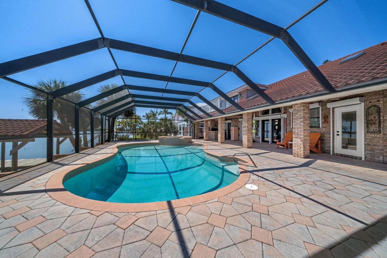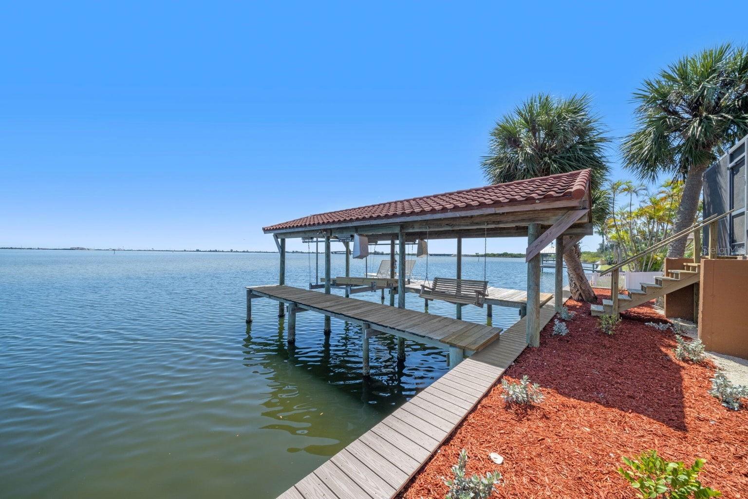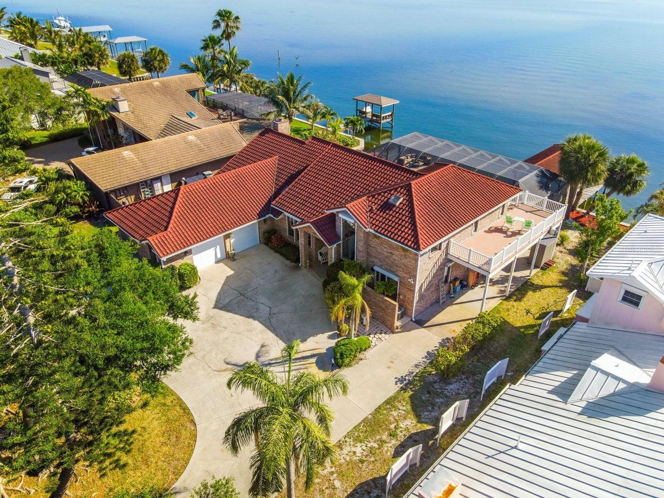 We're back & better than ever! Brand new sea wall, sleek upgrades, high-end finishes! This gorgeous riverfront home exudes a relaxing yet opulent atmosphere that's perfect for both entertaining and everyday living. Situated on nearly a half-acre of premiere South Merritt Island property, this 3 bed/3.5 bath home is less than 10 minutes to over 5 free beach accesses. Recent remodeling showcases newer enhancements, such as Ashford porcelain flooring, quartz counters, luxury appliances, fresh interior paint, updated lighting, contemporary bathroom amenities, upgraded door hardware, a gas fireplace, and two chic barn doors. Additional desirable features include two docks (one 6500lb lift), one dock to launch kayaks & paddle boards, a screened lanai with pool and spa (new pump 2021), a 50yr aluminum tile roof, in-floor bedroom safe, a new A/C, and electric hurricane shutters. Move-in marvelous!