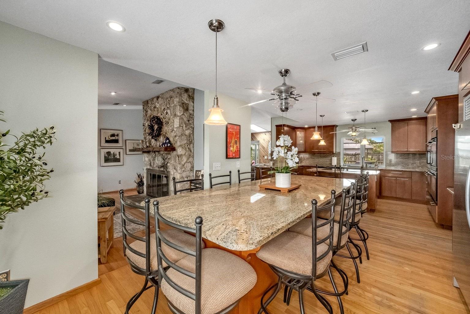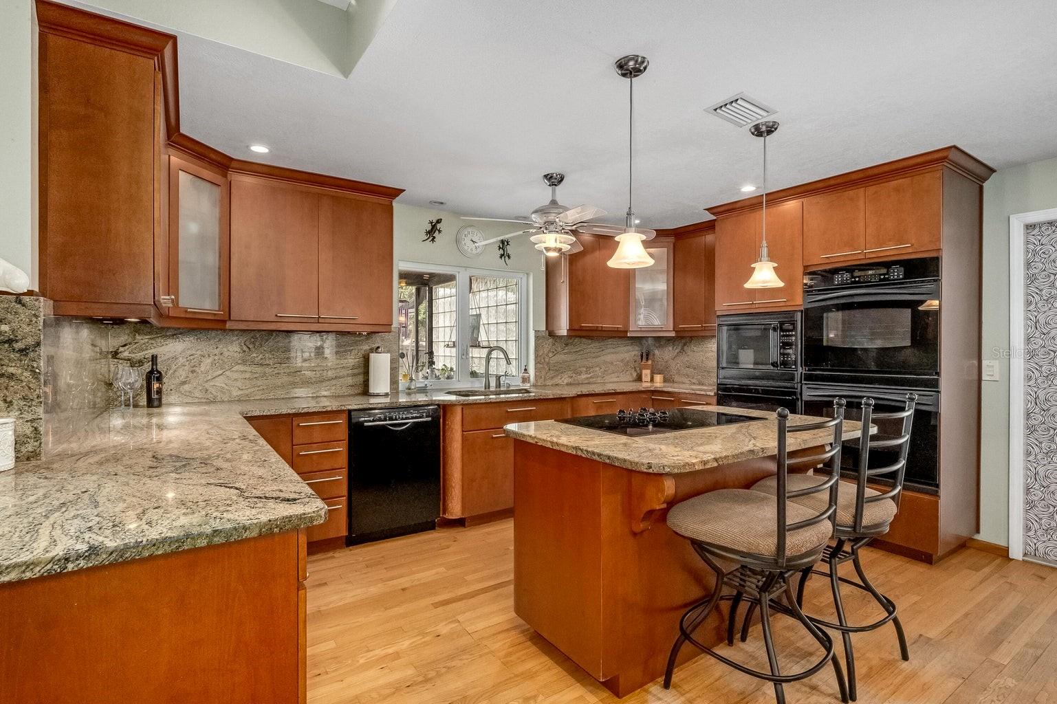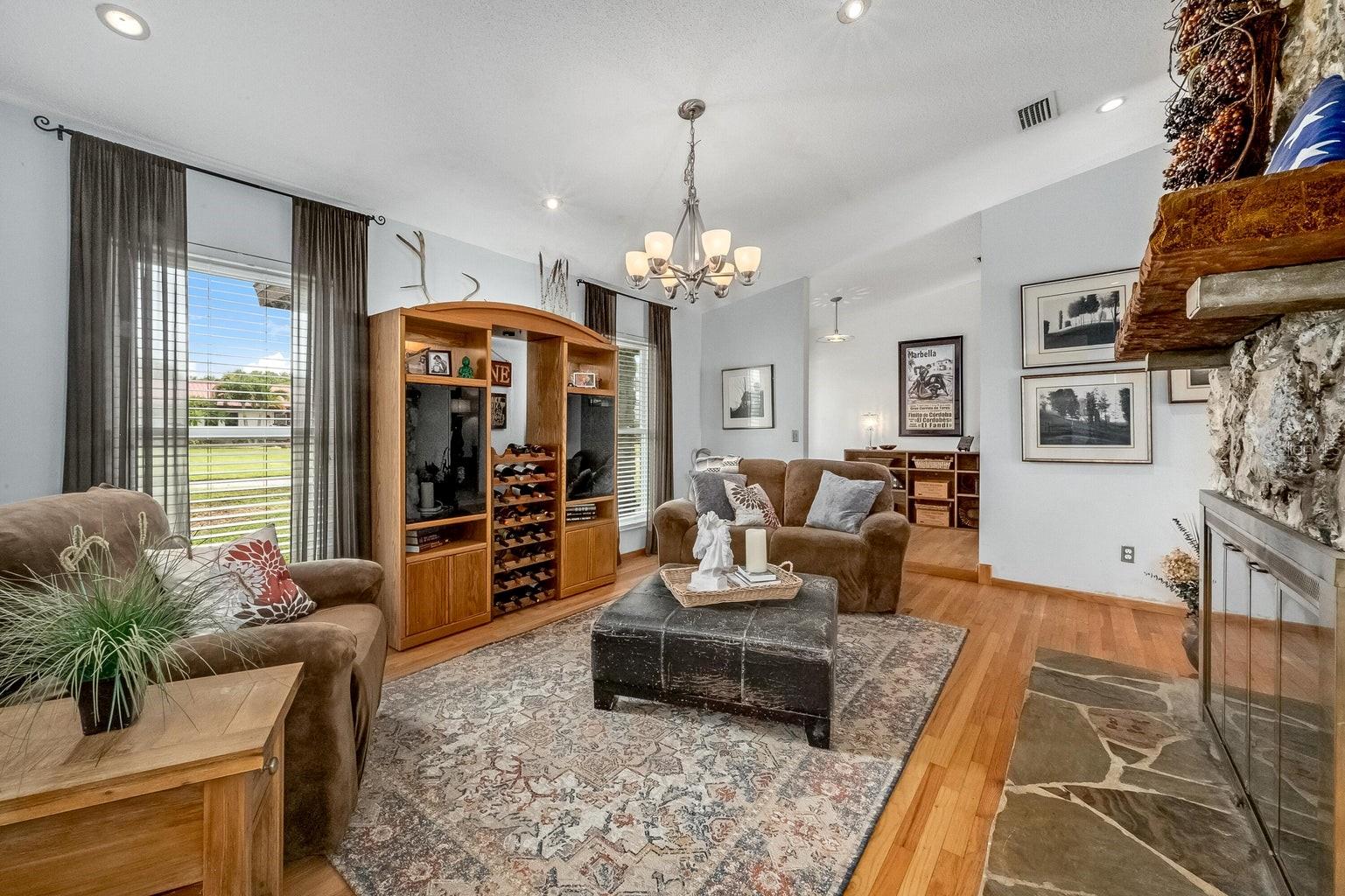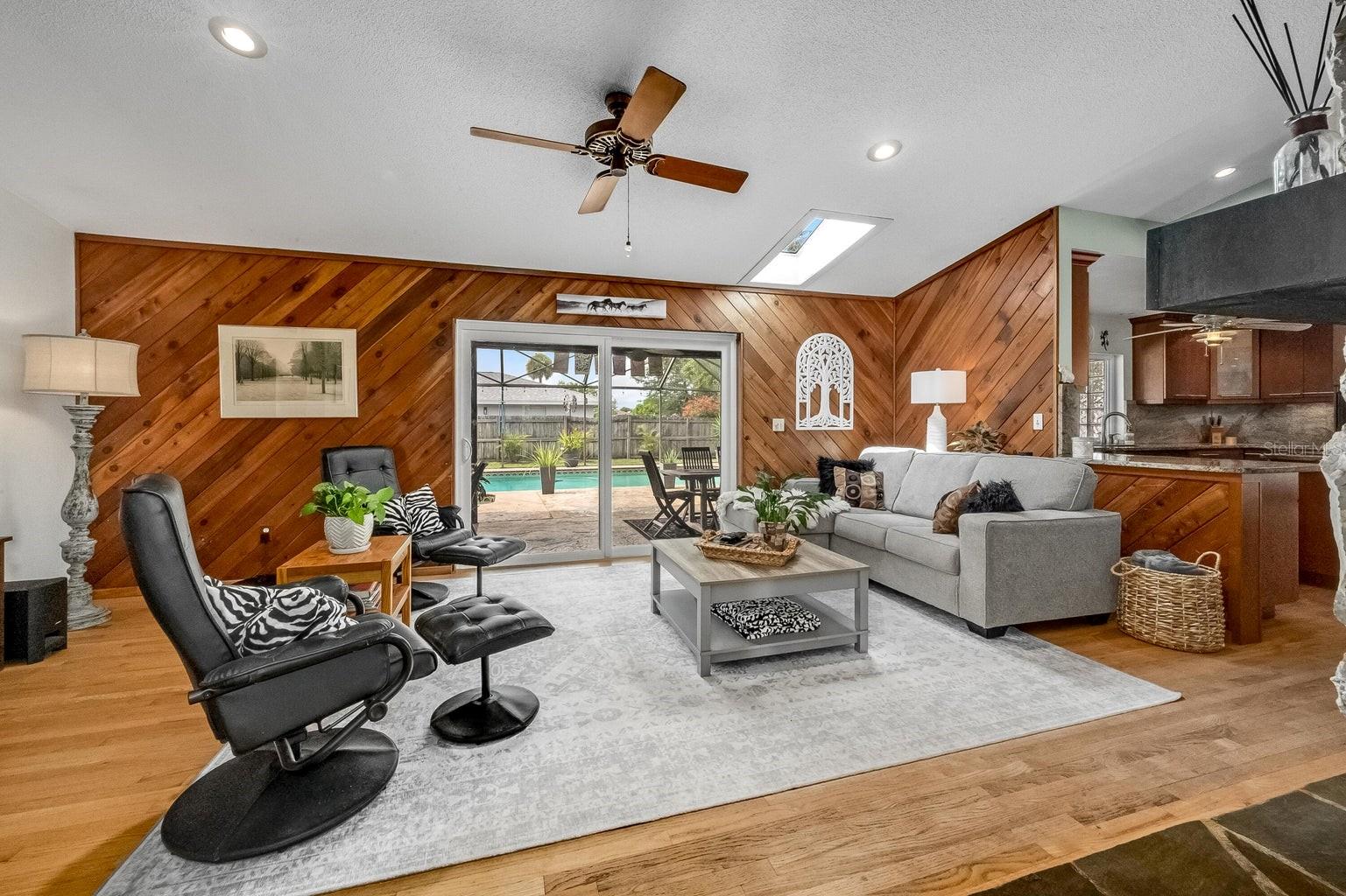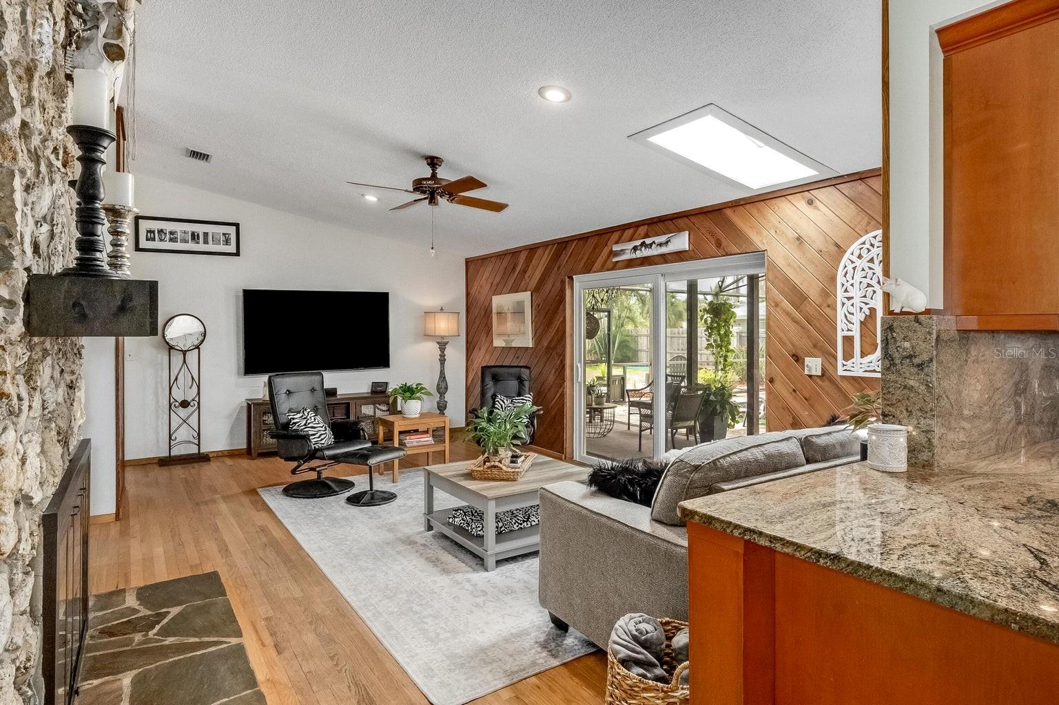 This beautiful home is situated on a spacious 0.35-acre corner lot in the desirable Rockwell Estates neighborhood. The heart of this home features an updated kitchen, remodeled in 2006, with modern appliances, Tons of custom cabinetry, and a huge island perfect for meal prep and casual dining. Triple ovens, Cooktop island, Built In Refrigerator set the stage for all your family get togethers. Relax in the inviting family room, complete with a two sided wood-burning fireplace that adds warmth and character to the space. Owners suite offers walk in shower and Huge WIC! The screened-in pool area is perfect for summer barbecues, pool parties, or simply enjoying a peaceful retreat. The large, well-maintained backyard offers plenty of room for outdoor activities and gardening full with Papaya and Mango trees and equipped with huge workshop. This home provides easy access to top-rated schools, Pineda extension and Beaches! Roof 2014, Windows 2021, AC 2017 Solar Water Heater 2014.