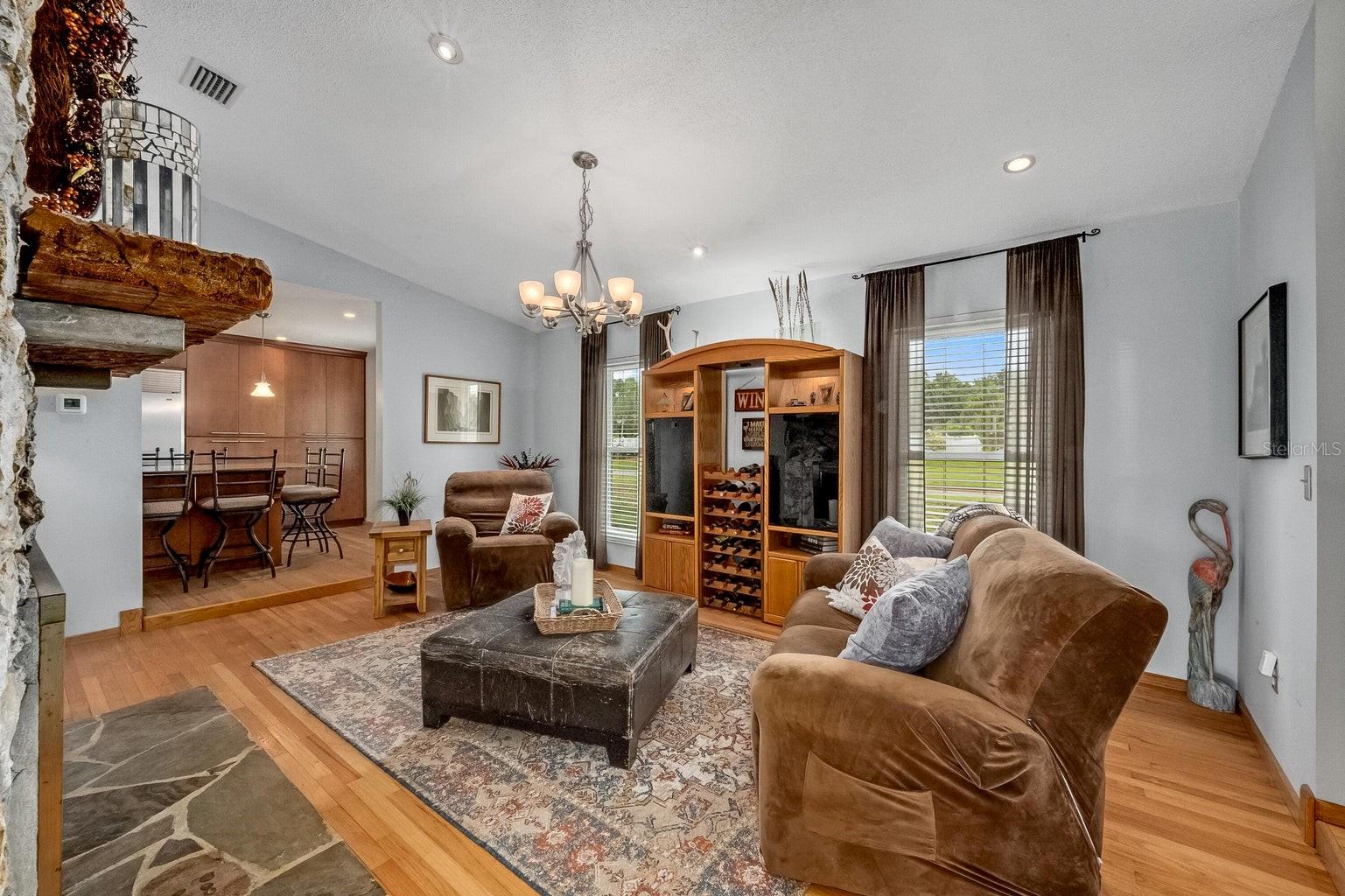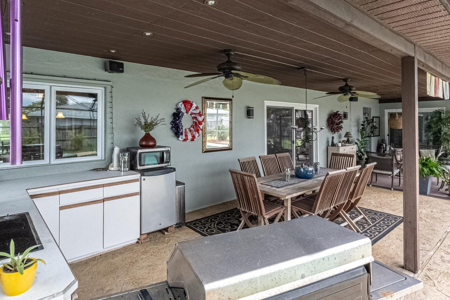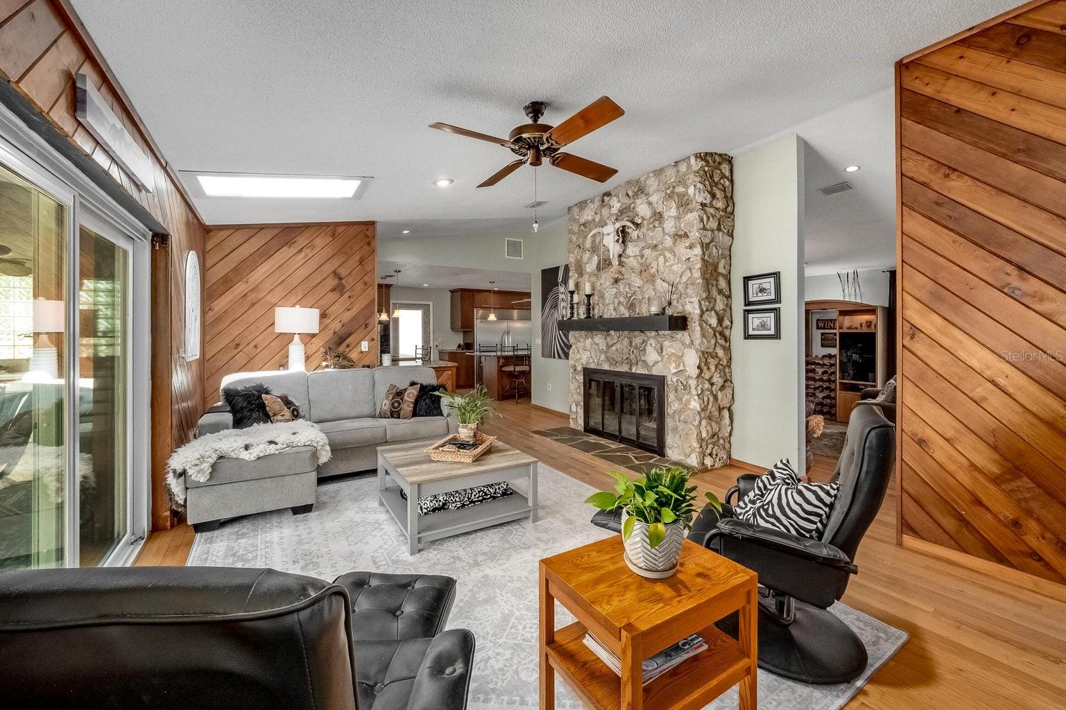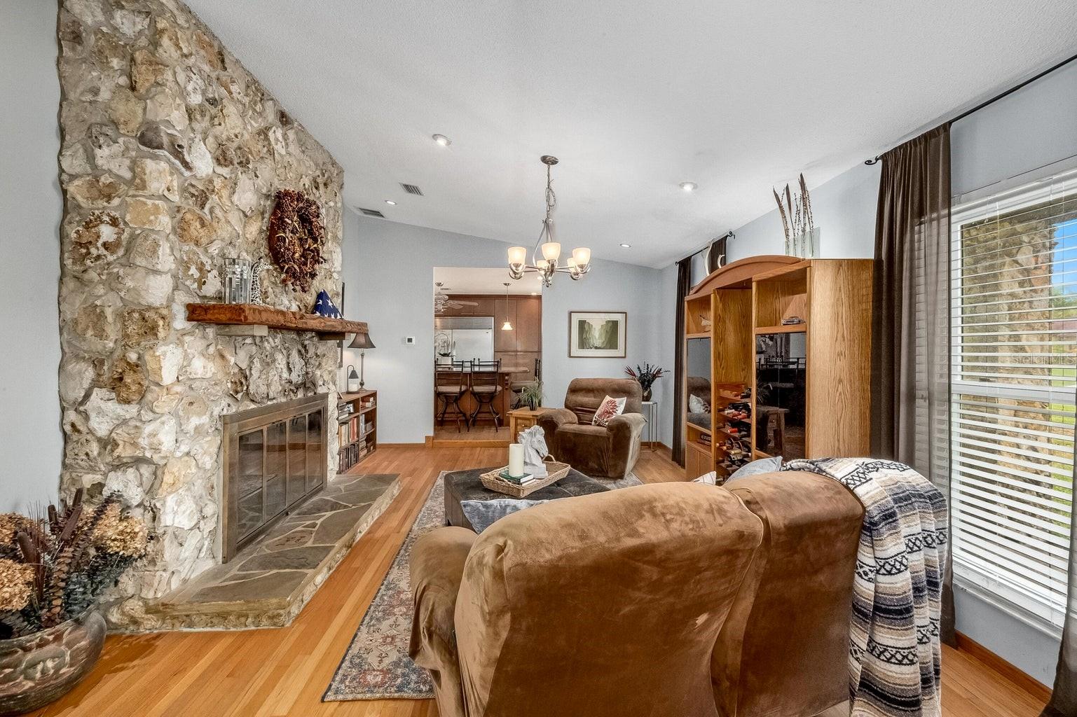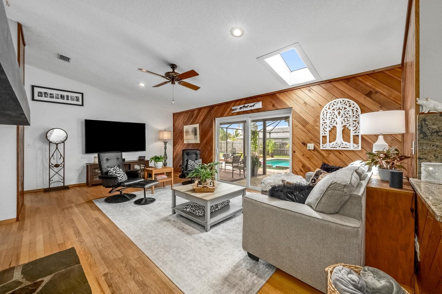 This beautiful home is situated on a spacious 0.35-acre corner lot in the desirable Rockwell Estates neighborhood. The heart of this home features an updated kitchen, remodeled in 2006, with modern appliances, Tons of custom cabinetry, and a huge island perfect for meal prep and casual dining. Triple ovens, Cooktop island, Built In Refrigerator set the stage for all your family get togethers. Relax in the inviting family room, complete with a two sided wood-burning fireplace that adds warmth and character to the space. Owners suite offers walk in shower and Huge WIC! The screened-in pool area is perfect for summer barbecues, pool parties, or simply enjoying a peaceful retreat. The large, well-maintained backyard offers plenty of room for outdoor activities and gardening full with Papaya and Mango trees and equipped with huge workshop. This home provides easy access to top-rated schools, Pineda extension and Beaches! Roof 2014, Windows 2021, AC 2017 Solar Water Heater 2014.