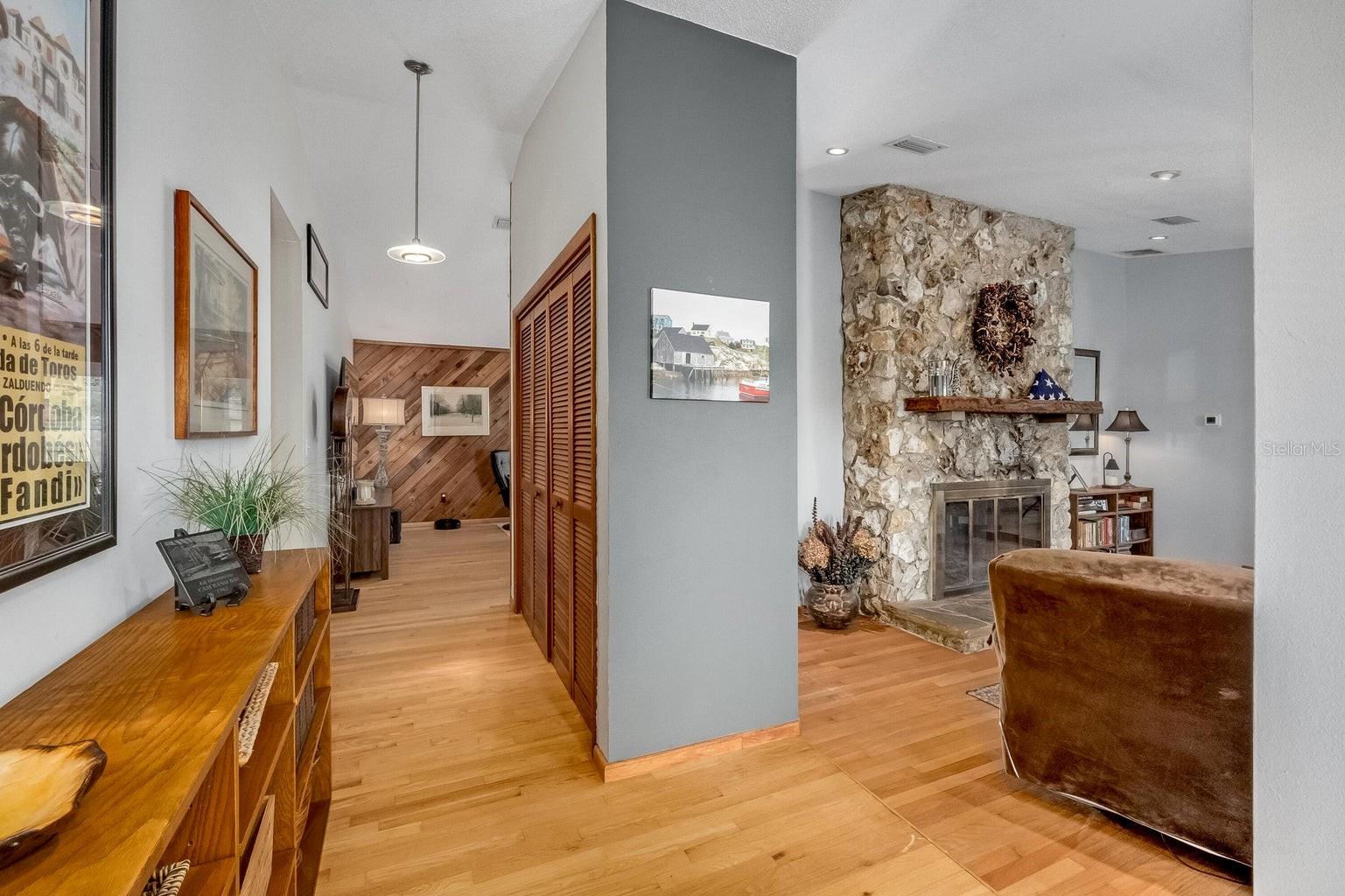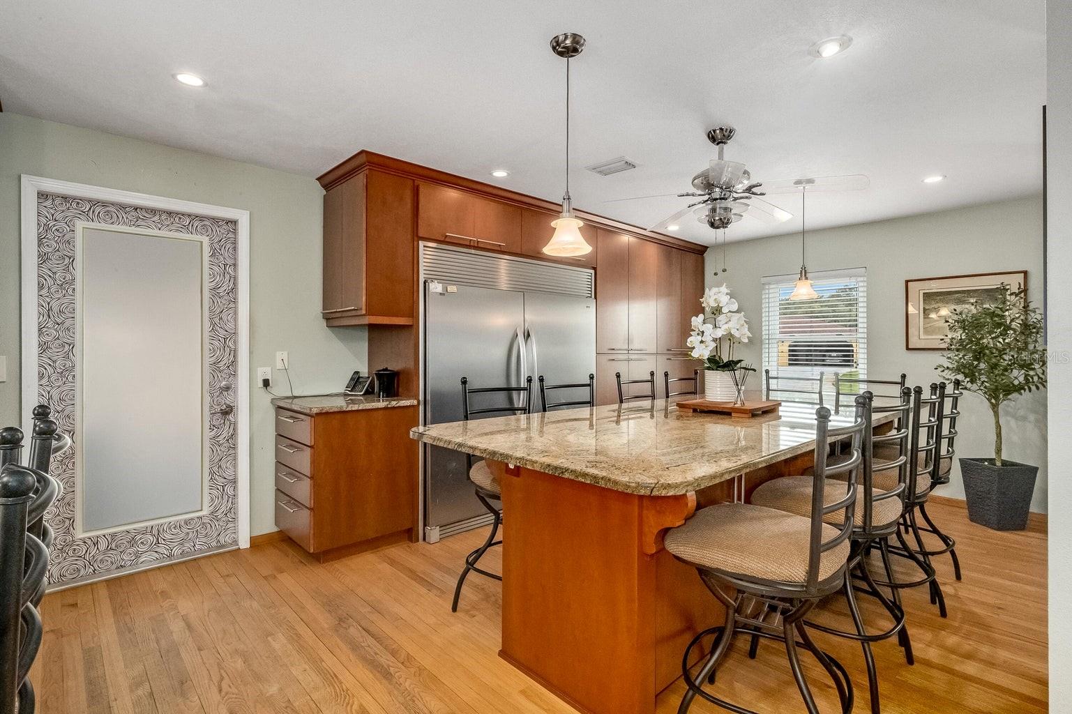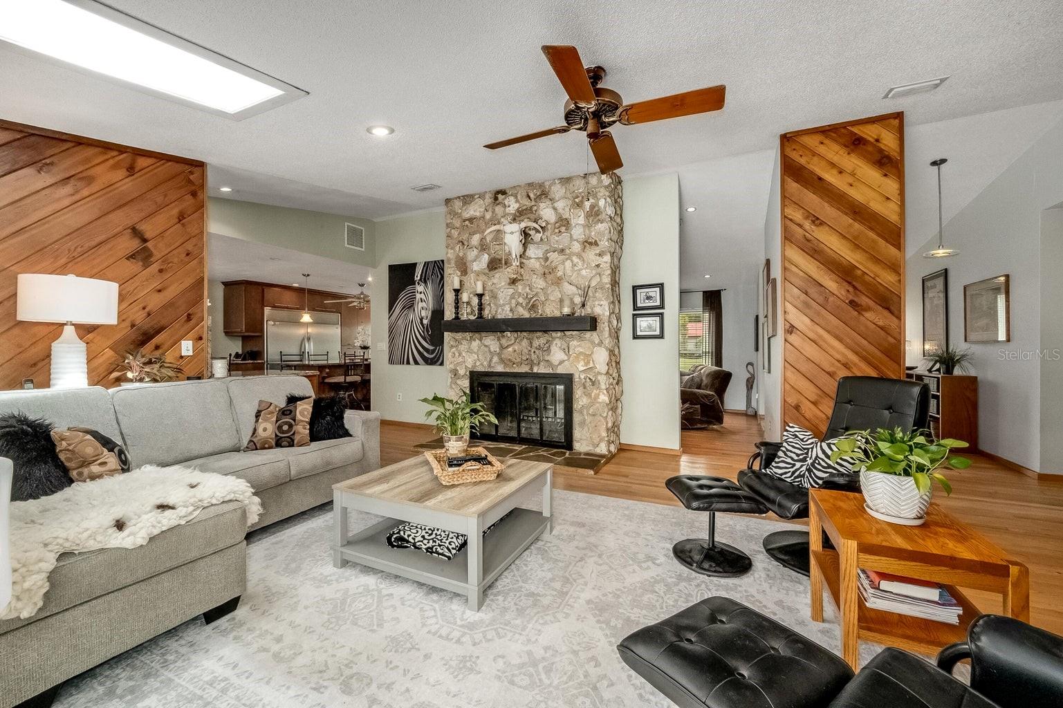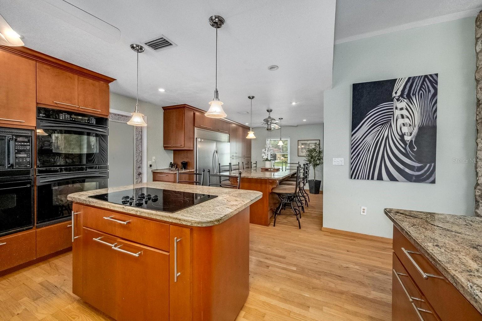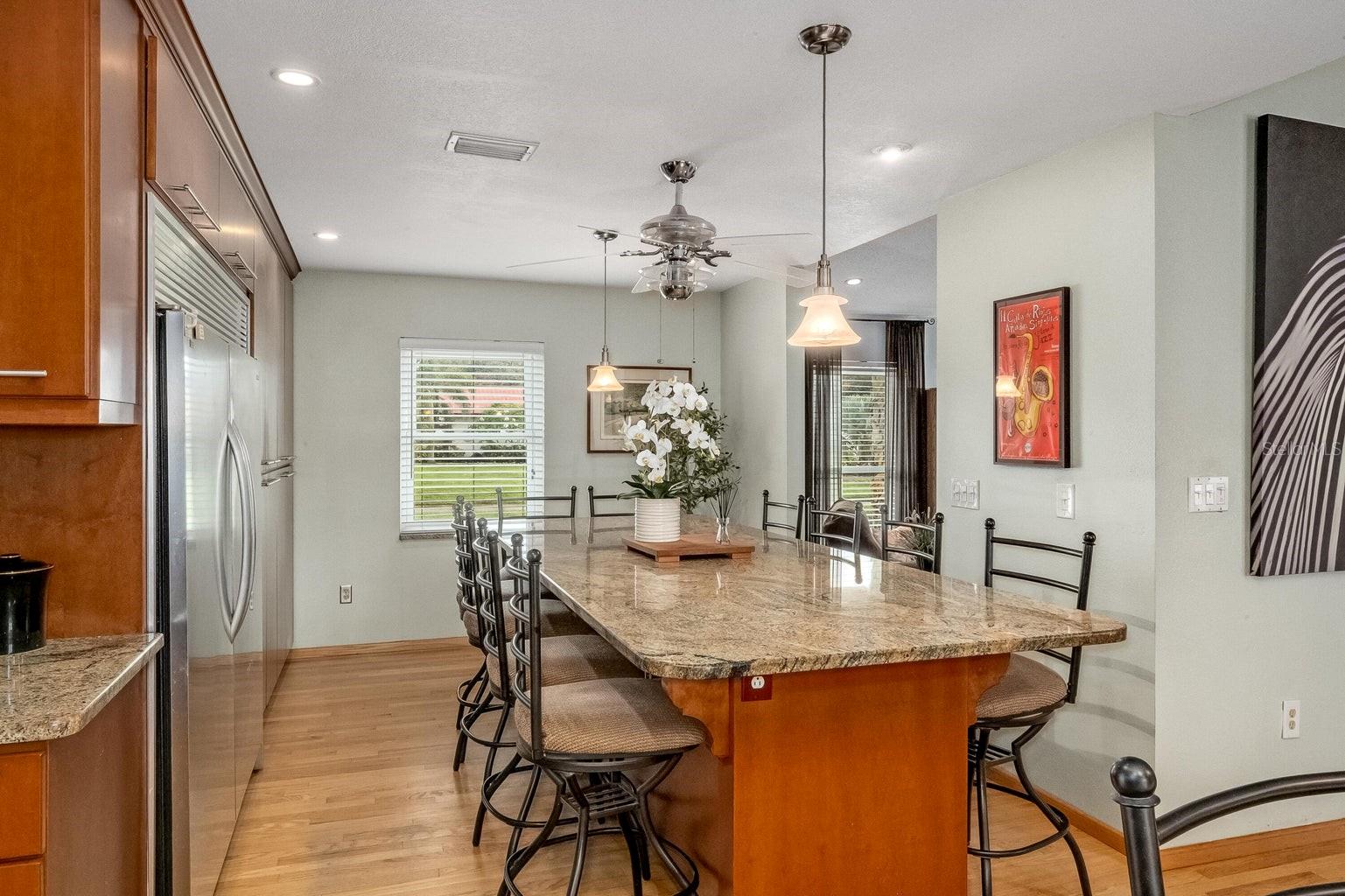 This beautiful home is situated on a spacious 0.35-acre corner lot in the desirable Rockwell Estates neighborhood. The heart of this home features an updated kitchen, remodeled in 2006, with modern appliances, Tons of custom cabinetry, and a huge island perfect for meal prep and casual dining. Triple ovens, Cooktop island, Built In Refrigerator set the stage for all your family get togethers. Relax in the inviting family room, complete with a two sided wood-burning fireplace that adds warmth and character to the space. Owners suite offers walk in shower and Huge WIC! The screened-in pool area is perfect for summer barbecues, pool parties, or simply enjoying a peaceful retreat. The large, well-maintained backyard offers plenty of room for outdoor activities and gardening full with Papaya and Mango trees and equipped with huge workshop. This home provides easy access to top-rated schools, Pineda extension and Beaches! Roof 2014, Windows 2021, AC 2017 Solar Water Heater 2014.