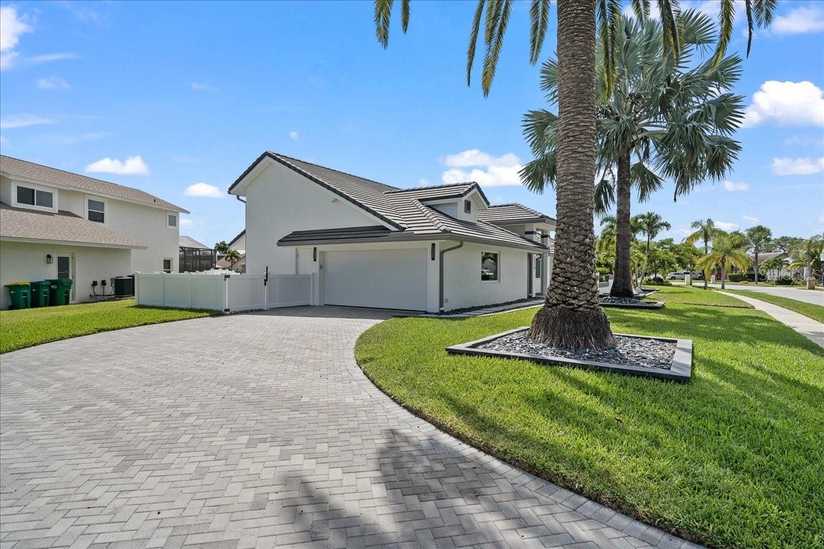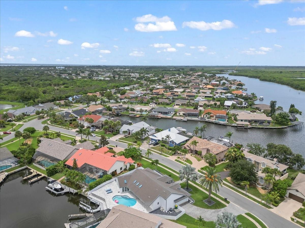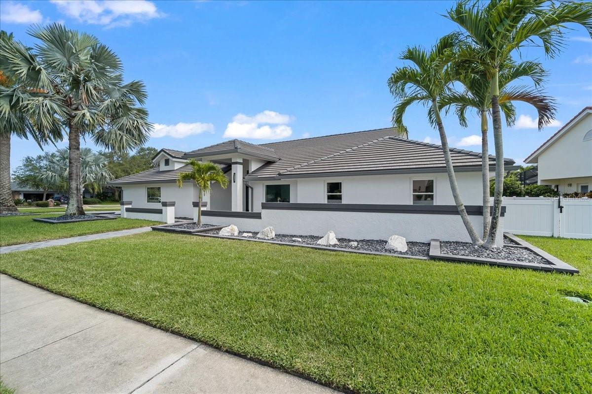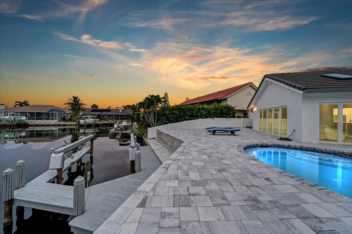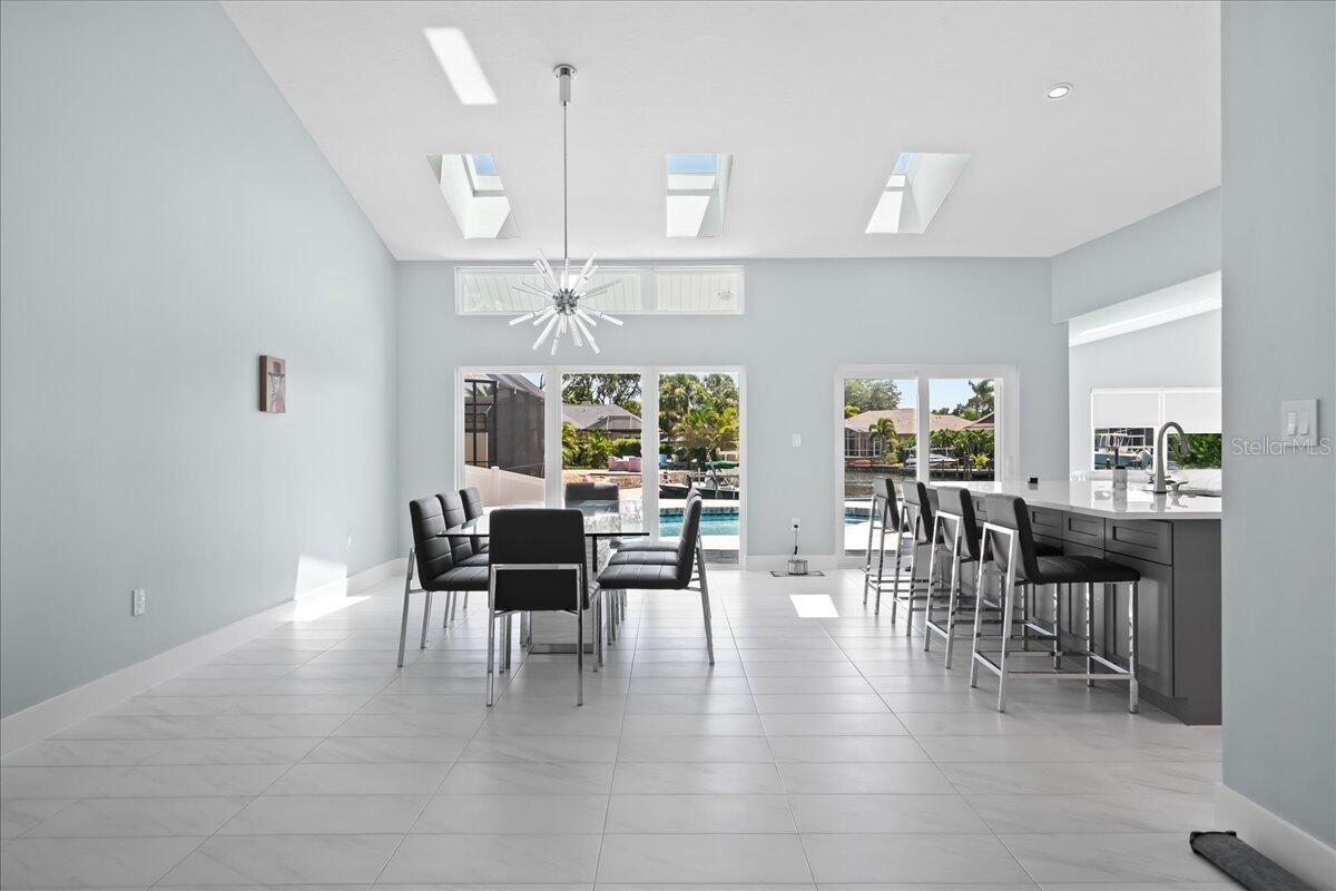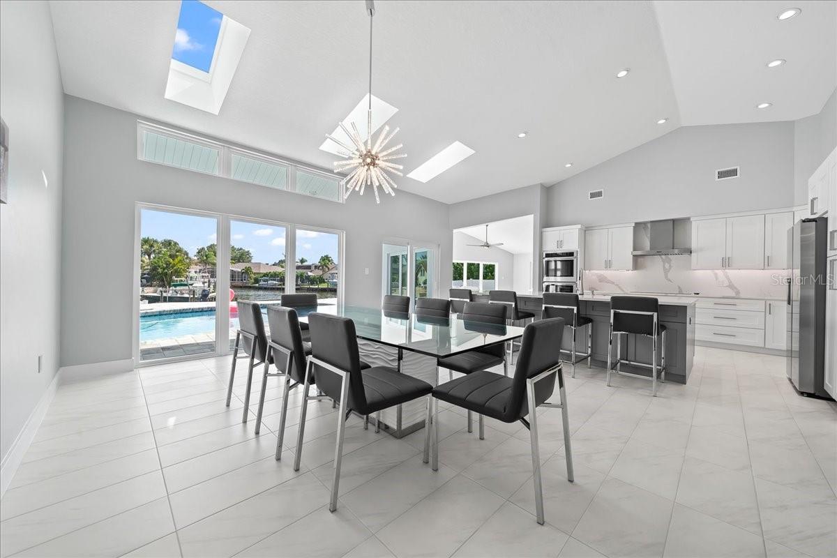 Welcome to modern waterfront living in the distinguished Villa de Palmas community, Sykes Cove on Merritt Island. This stunning home, completely remodeled in 2022, boasts a sleek and sophisticated design. The open floor plan features tile floors throughout, flooded with natural light. The chef's kitchen includes a double oven, ample storage, and an oversized island with quartz counters and a dramatic waterfall edge. The entire back of the home is lined with impact windows providing stunning views of the pool and deep water canal. Enjoy cool evenings by the modern gas fireplace. The exterior is equally as impressive featuring a paver driveway, paver pool deck, and a pedestrian ramp to the boat slip. The low-profile landscaping includes stone accents and raised borders. Modern amenities include impact windows, a concrete tile roof, new HVAC, ductwork, spray foam insulation, updated electrical panel, and new plumbing to ensure comfort and safety. Don't miss this exquisite waterfront gem!