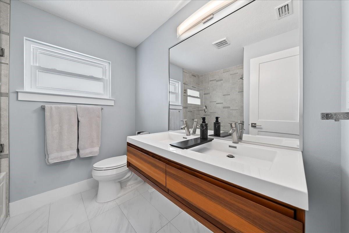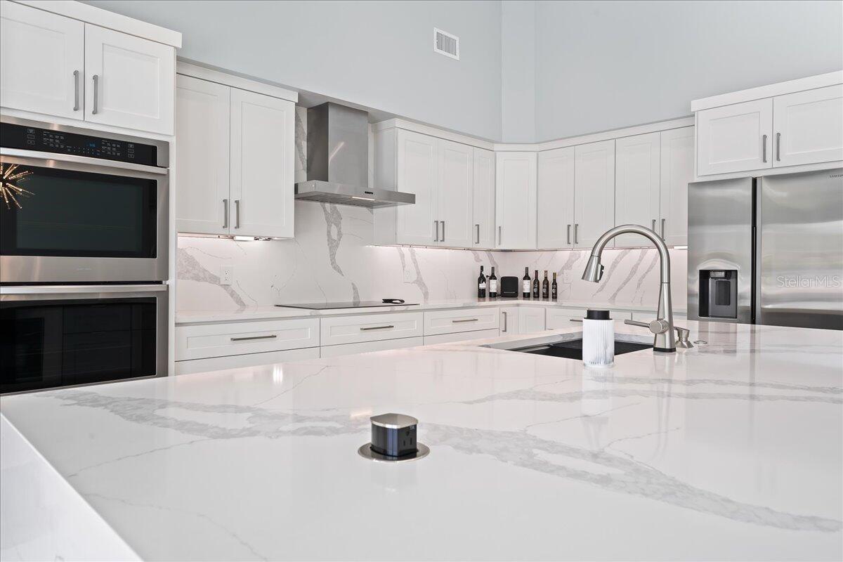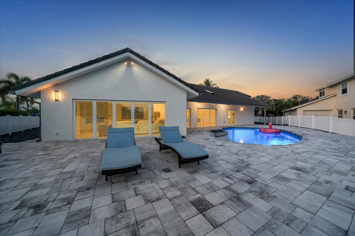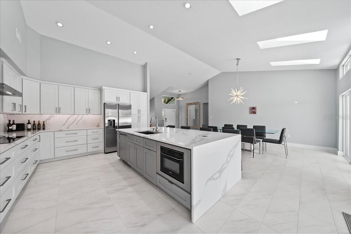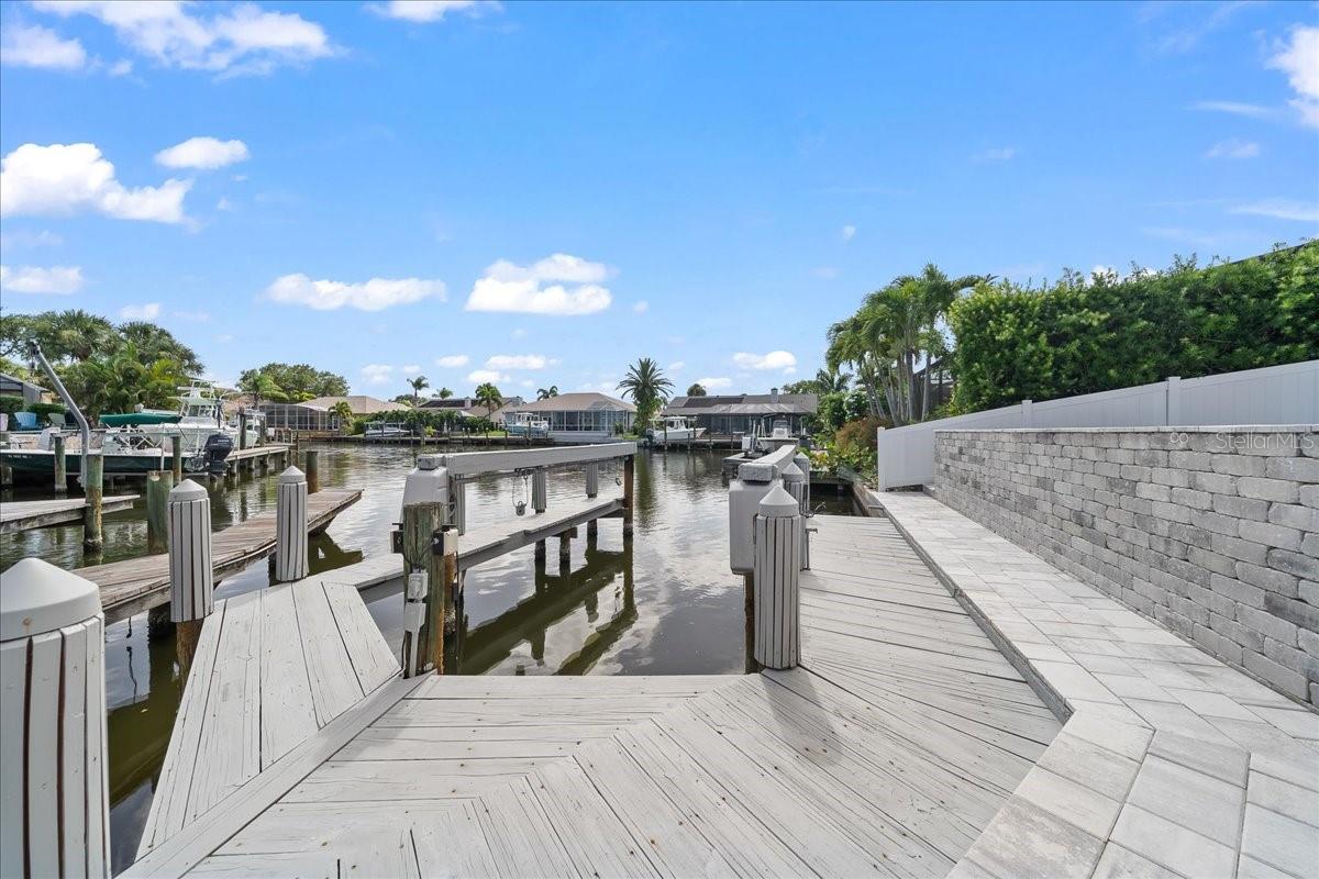 Welcome to modern waterfront living in the distinguished Villa de Palmas community, Sykes Cove on Merritt Island. This stunning home, completely remodeled in 2022, boasts a sleek and sophisticated design. The open floor plan features tile floors throughout, flooded with natural light. The chef's kitchen includes a double oven, ample storage, and an oversized island with quartz counters and a dramatic waterfall edge. The entire back of the home is lined with impact windows providing stunning views of the pool and deep water canal. Enjoy cool evenings by the modern gas fireplace. The exterior is equally as impressive featuring a paver driveway, paver pool deck, and a pedestrian ramp to the boat slip. The low-profile landscaping includes stone accents and raised borders. Modern amenities include impact windows, a concrete tile roof, new HVAC, ductwork, spray foam insulation, updated electrical panel, and new plumbing to ensure comfort and safety. Don't miss this exquisite waterfront gem!