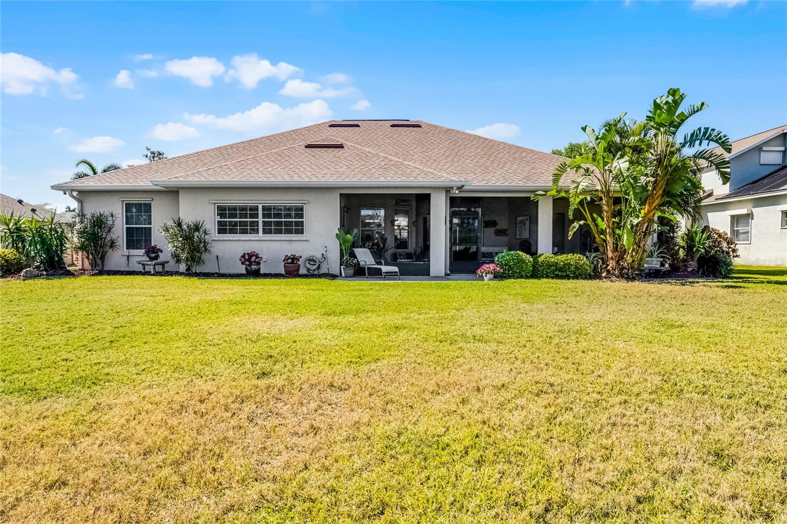 Welcome to this beautifully maintained 3-bedroom, 2-bathroom home nestled in the sought-after golf course community of The Savannahs. Offering a spacious split-bedroom floor plan, this home is designed for comfort and effortless living. Step inside to discover gorgeous wood floors and an abundance of natural light that flows through the open living and dining areas—perfect for hosting family gatherings. The kitchen is a chef's dream, featuring granite countertops, wood cabinetry, stainless steel appliances, and a seamless connection to the inviting family room. Retreat to the private primary suite, complete with a walk-in closet, en-suite bathroom with dual vanity sinks, a relaxing garden tub, and a separate tiled shower. A private door leads directly to the screened lanai, where you can enjoy peaceful mornings or evening sunsets overlooking the expansive golf course fairway. On the other side of the home, two spacious guest bedrooms and a well-appointed guest bath provide comfort and convenience. The sliding glass doors from both the living and family rooms open to the spacious screened lanai, creating the perfect indoor-outdoor flow. Additional highlights include a dedicated laundry room, a generous 3-car garage with a large attic for extra storage, and peace of mind with a 2017 roof, 2016 HVAC and 2018 water heater. The Savannahs community offers a golf course, park, and tennis courts, all while being just a short drive from Cocoa Beach, Port Canaveral, shopping, dining, and more. Don't miss the opportunity to make this exceptional home yours! Schedule a showing today.