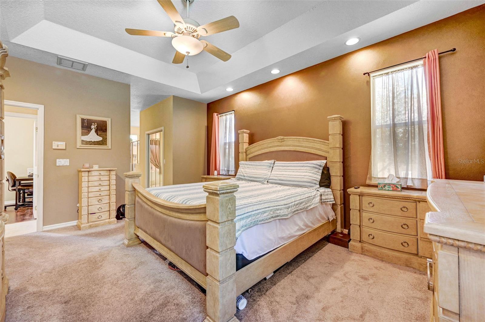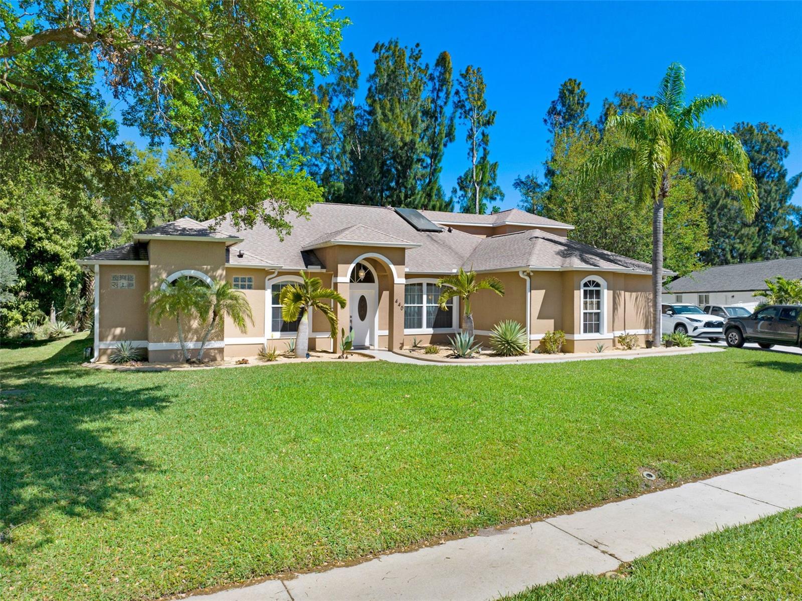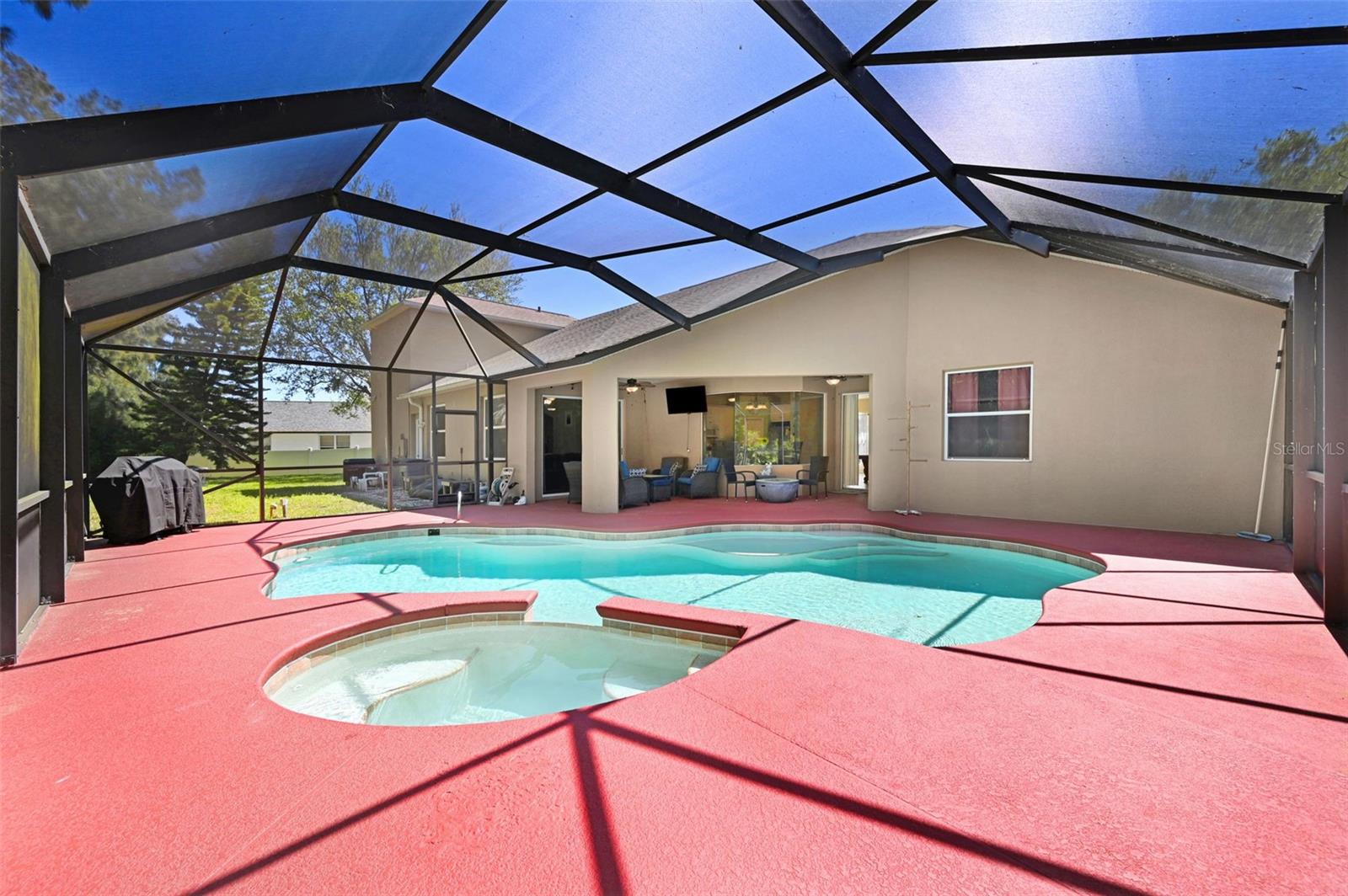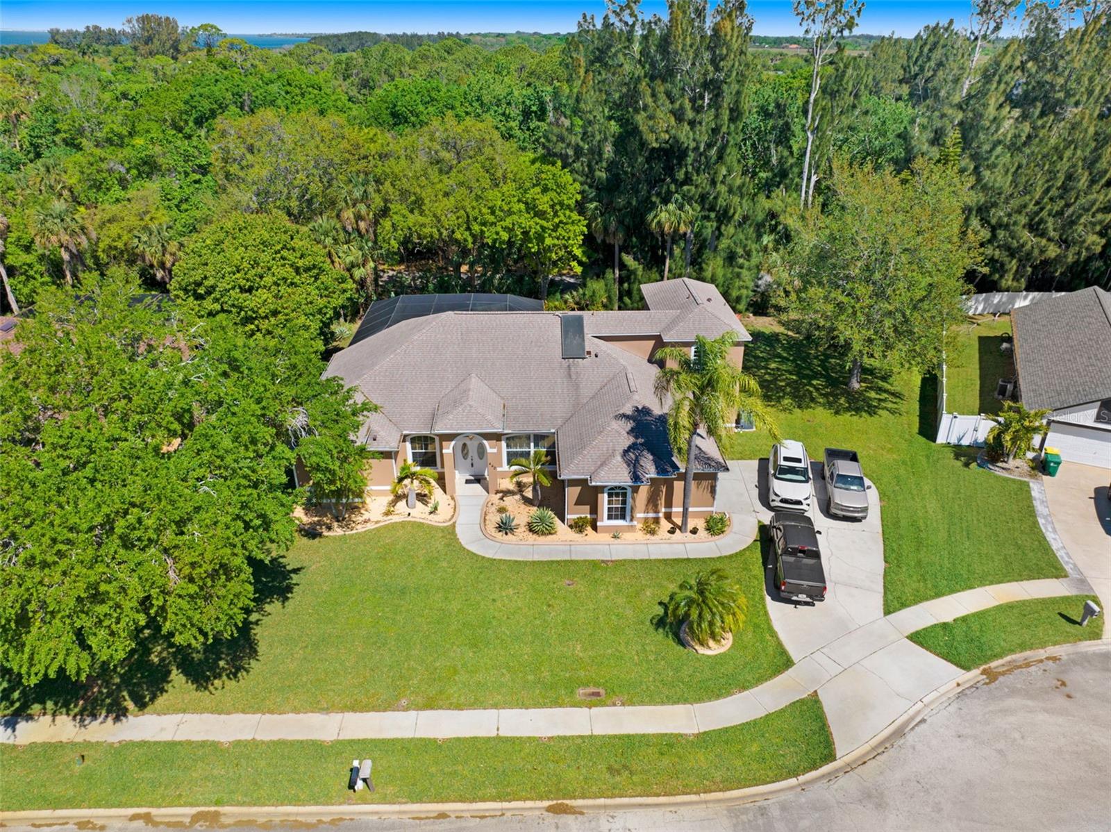 We have 2843 sq. ft., 5 Bedrooms, plus 1 office, 3 bathrooms, a Pool and plenty of yard to enjoy! We are an Open Concept, Split Plan home, with 1 bedroom upstairs with a Full Bath, and its own space for a den or playroom. Indian Bay Estates is one of the highly sought after neighborhoods, only 10 minutes to the Kennedy Space Center. Indian Bay Estates also offers you a a Common Area with a Community Dock and Boat Launch for your boat/jet ski's. Living here affords you a waterfront property without the taxes! The Beautiful Spacious Primary Suite is directly off the pool with his/her closets. The primary bath includes a double vanity, huge jetted tub and a separate shower. The Large Kitchen boasts plenty of cabinet space, a nice size pantry, and the breakfast nook over looks your Oversized Pool & Heated Spa.
