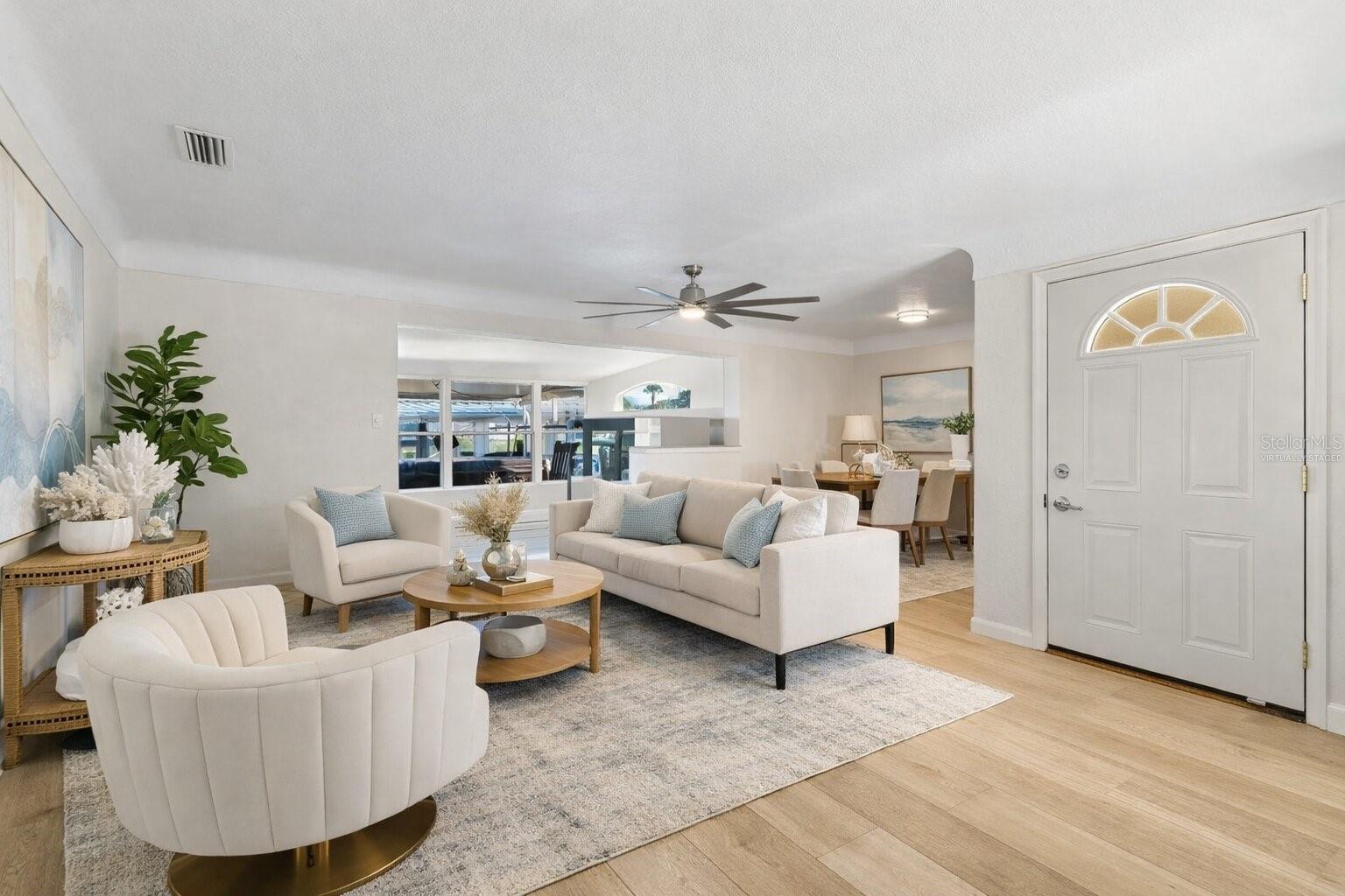 Price Improved! Waterfront living at its finest on Riverside Avenue in Merritt Island. This immaculate concrete block home is perfectly positioned on a deep, navigable canal with direct access to Sykes Creek and the Intracoastal, truly a boater’s paradise. Enjoy spectacular sunrises and sunsets from the oversized covered dock featuring a boat lift, dining area, and ample space to relax and embrace the coastal lifestyle. Inside, the bright and open floor plan offers two spacious master suites, ideal for multi-generational living, hosting guests, or rental flexibility. The main master features a walk-in closet and direct access to the Florida room, seamlessly blending indoor and outdoor living. Situated on a fenced corner lot, the home also boasts a large screened patio surrounded by lush tropical landscaping, perfect for entertaining or unwinding after a day on the water. No HOA! Centrally located with easy access to SR-528, Merritt Square Shopping Mall, Port Canaveral parking, Mitchell Ellington Park, Mila Sports Complex, Space Coast Golf Club, bowling, and the Kennedy Space Center. Just minutes to beaches, shopping, dining, and Port Canaveral. Ideal as a primary residence, winter retreat, or income-producing vacation rental. A rare opportunity to own waterfront property on Riverside Avenue. Schedule your private showing today!