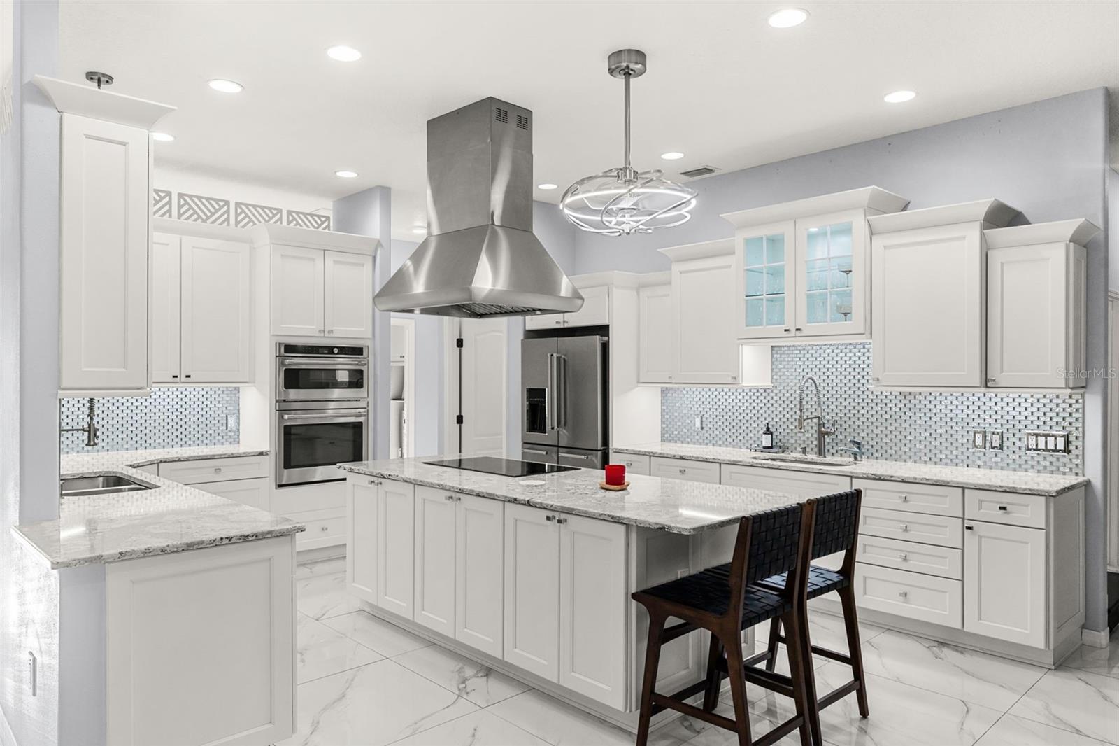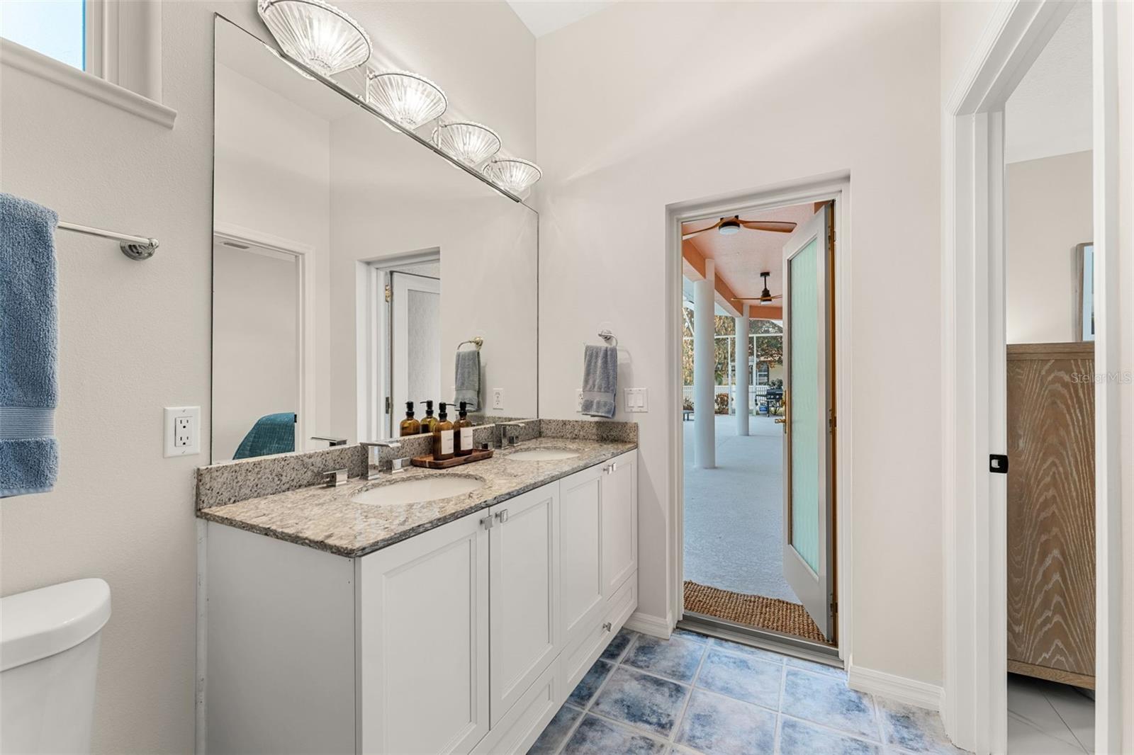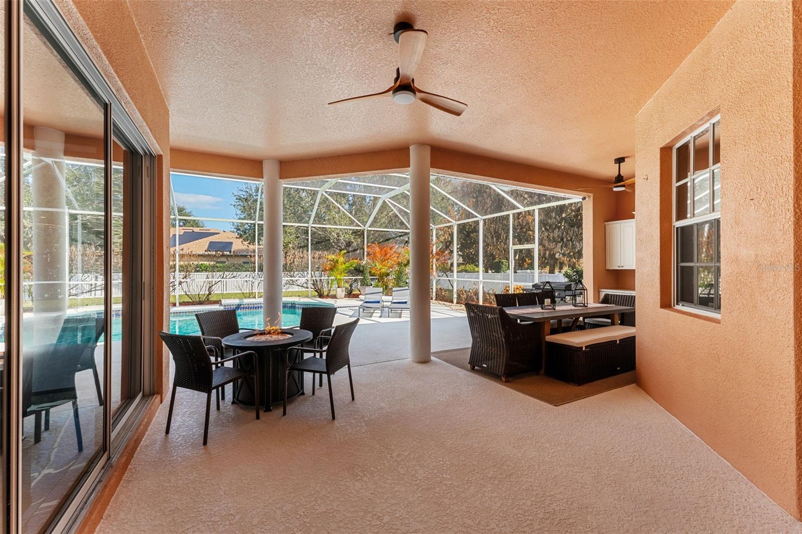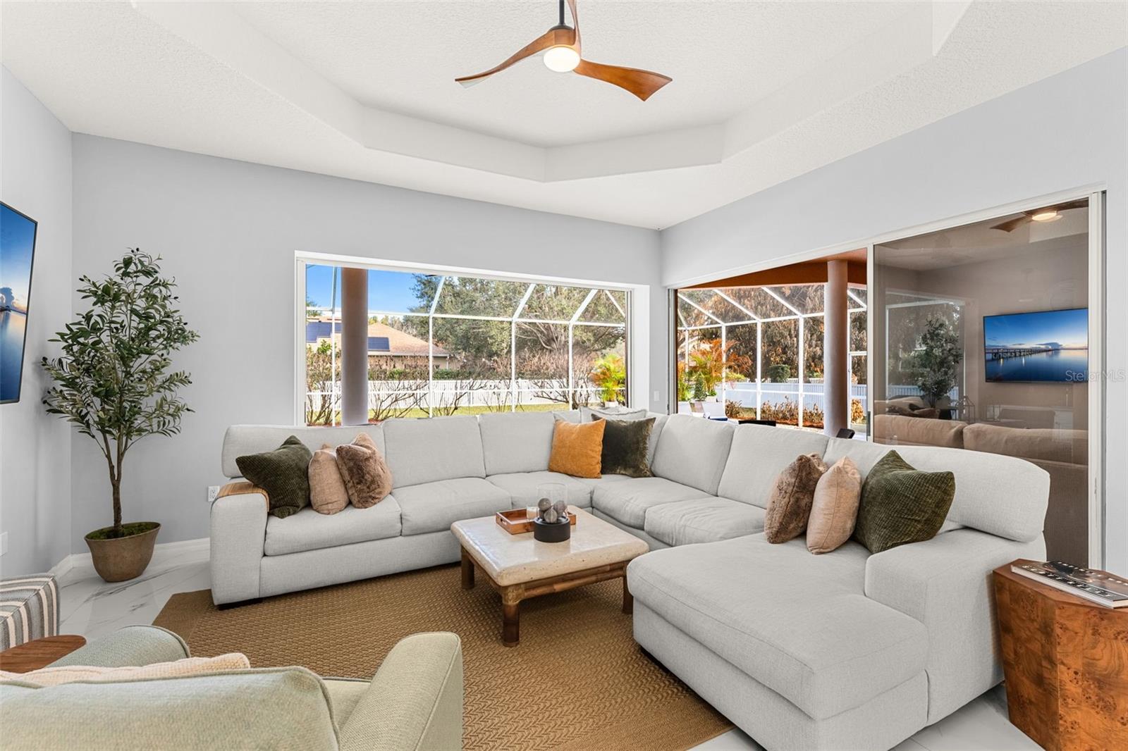 Set on a private ½-acre estate between the rivers in South Merritt Island, this light-filled coastal residence offers refined luxury living designed for entertaining & elegance. Arrive via a sweeping circular drive & step into open spaces enhanced by stunning 3' x 3' polished porcelain tile. Featuring 5 bedrooms, 3.5 baths, & spacious upstairs flex room ideal as a 6th bedroom, executive office, or media room. The private primary wing includes an adjoining flex space perfect for a nursery, dressing room, or study. The showstopping chef's kitchen is the heart of the home, appointed with SS appliances, double ovens, double sinks, a professional-grade cooktop, an impressive 9-ft island, quartz tops, custom backsplash, a Butler's pantry, and maple cabinetry. Outdoor living shines with an oversized screened lanai, summer kitchen, solar-heated pool, outdoor shower, fenced yard & lush fruit trees. Oversized garage, newer roof, & updated systems complete this exceptional offering.