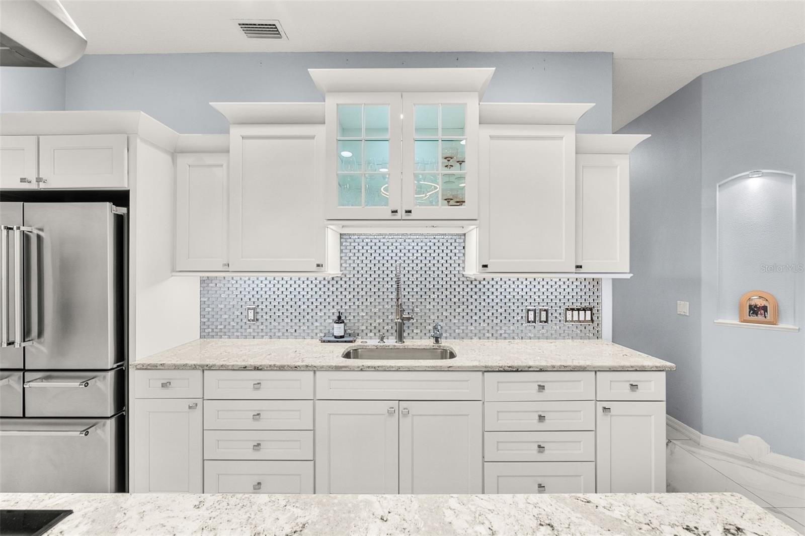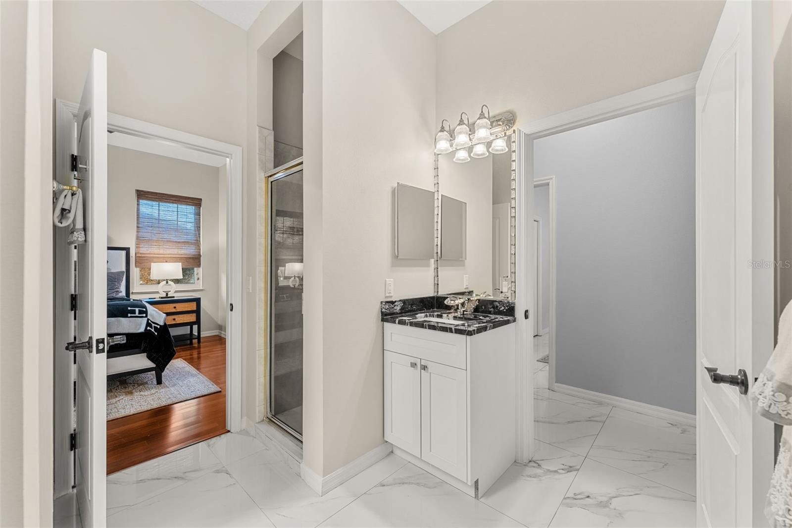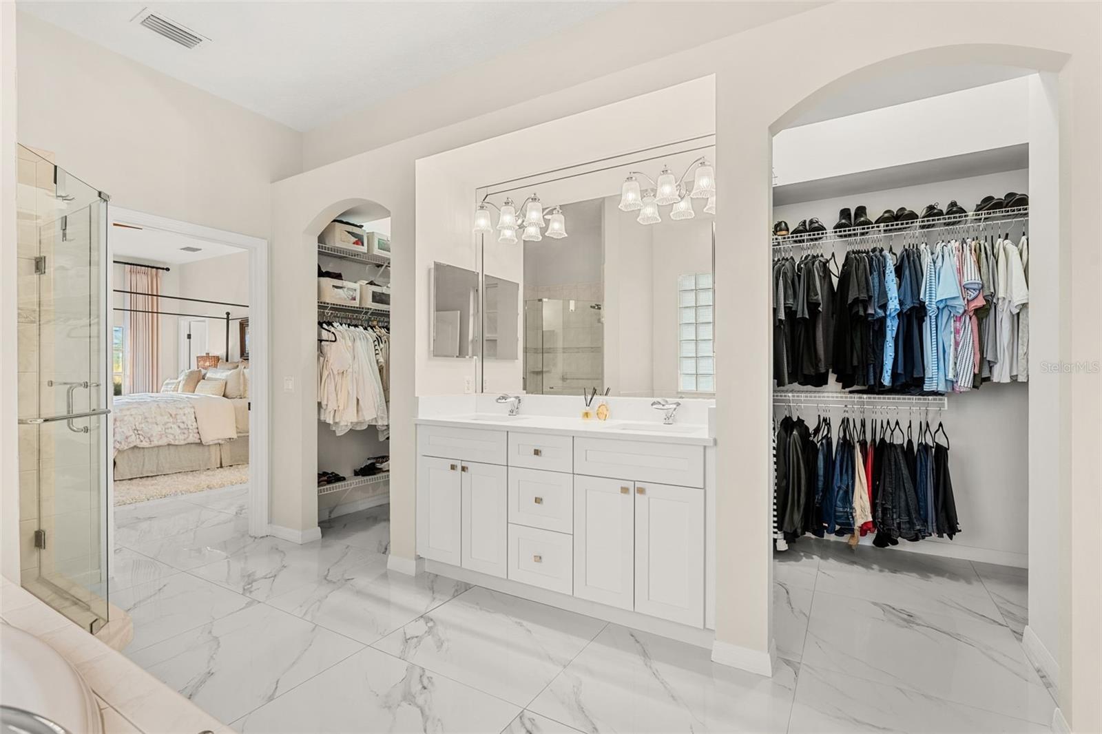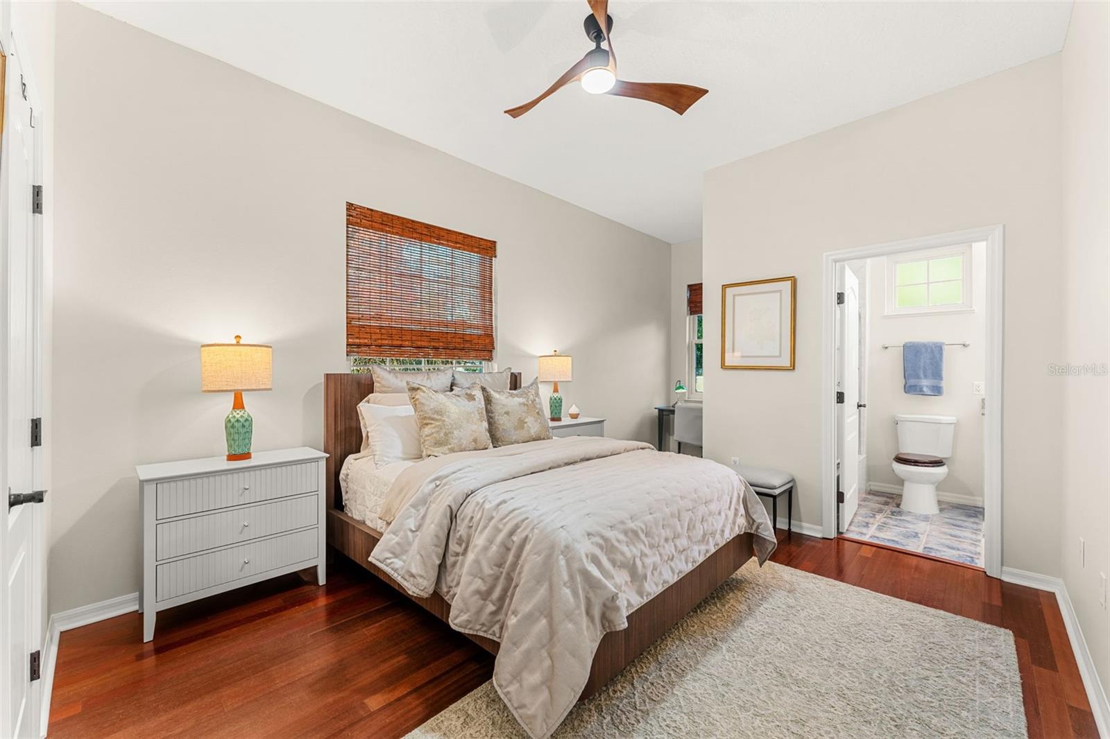 Set on a private ½-acre estate between the rivers in South Merritt Island, this light-filled coastal residence offers refined luxury living designed for entertaining & elegance. Arrive via a sweeping circular drive & step into open spaces enhanced by stunning 3' x 3' polished porcelain tile. Featuring 5 bedrooms, 3.5 baths, & spacious upstairs flex room ideal as a 6th bedroom, executive office, or media room. The private primary wing includes an adjoining flex space perfect for a nursery, dressing room, or study. The showstopping chef's kitchen is the heart of the home, appointed with SS appliances, double ovens, double sinks, a professional-grade cooktop, an impressive 9-ft island, quartz tops, custom backsplash, a Butler's pantry, and maple cabinetry. Outdoor living shines with an oversized screened lanai, summer kitchen, solar-heated pool, outdoor shower, fenced yard & lush fruit trees. Oversized garage, newer roof, & updated systems complete this exceptional offering.