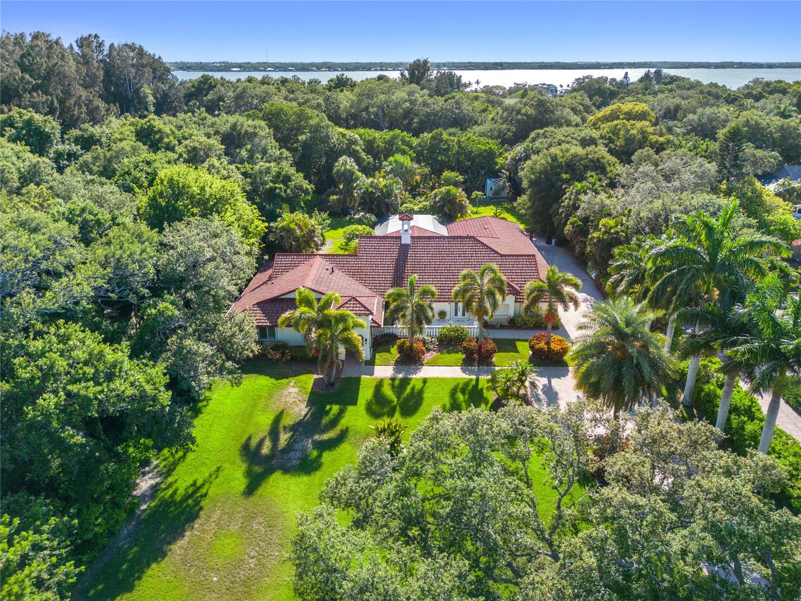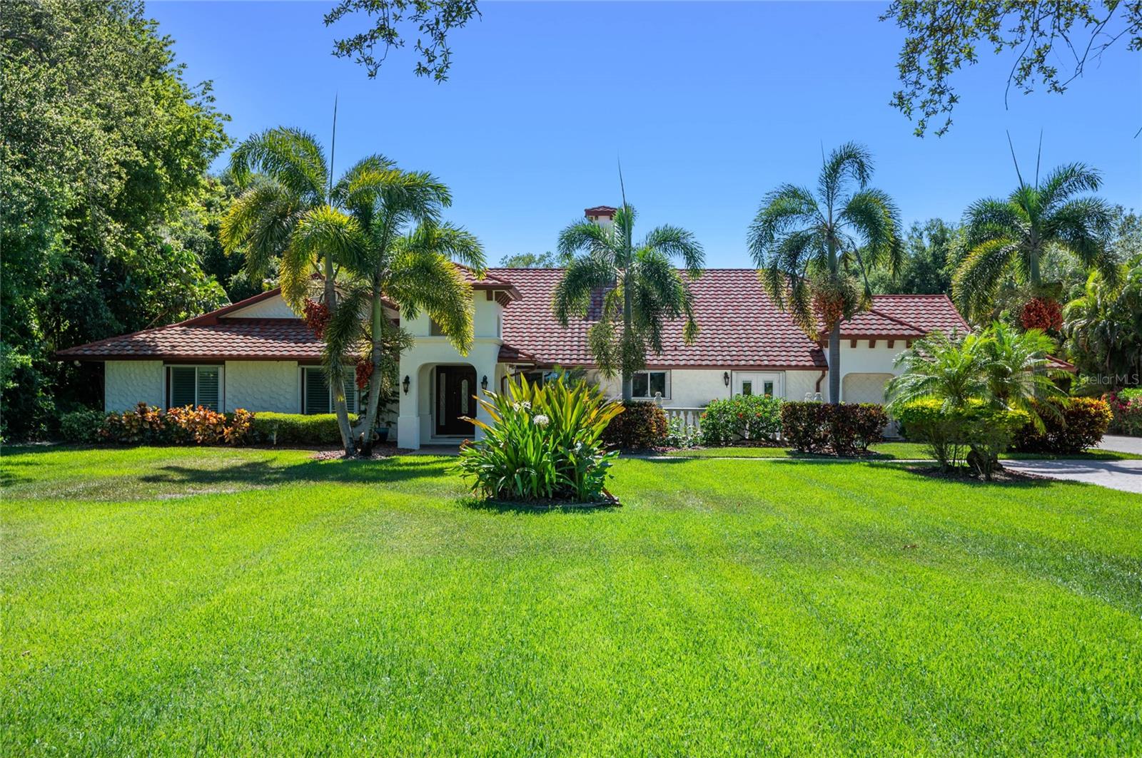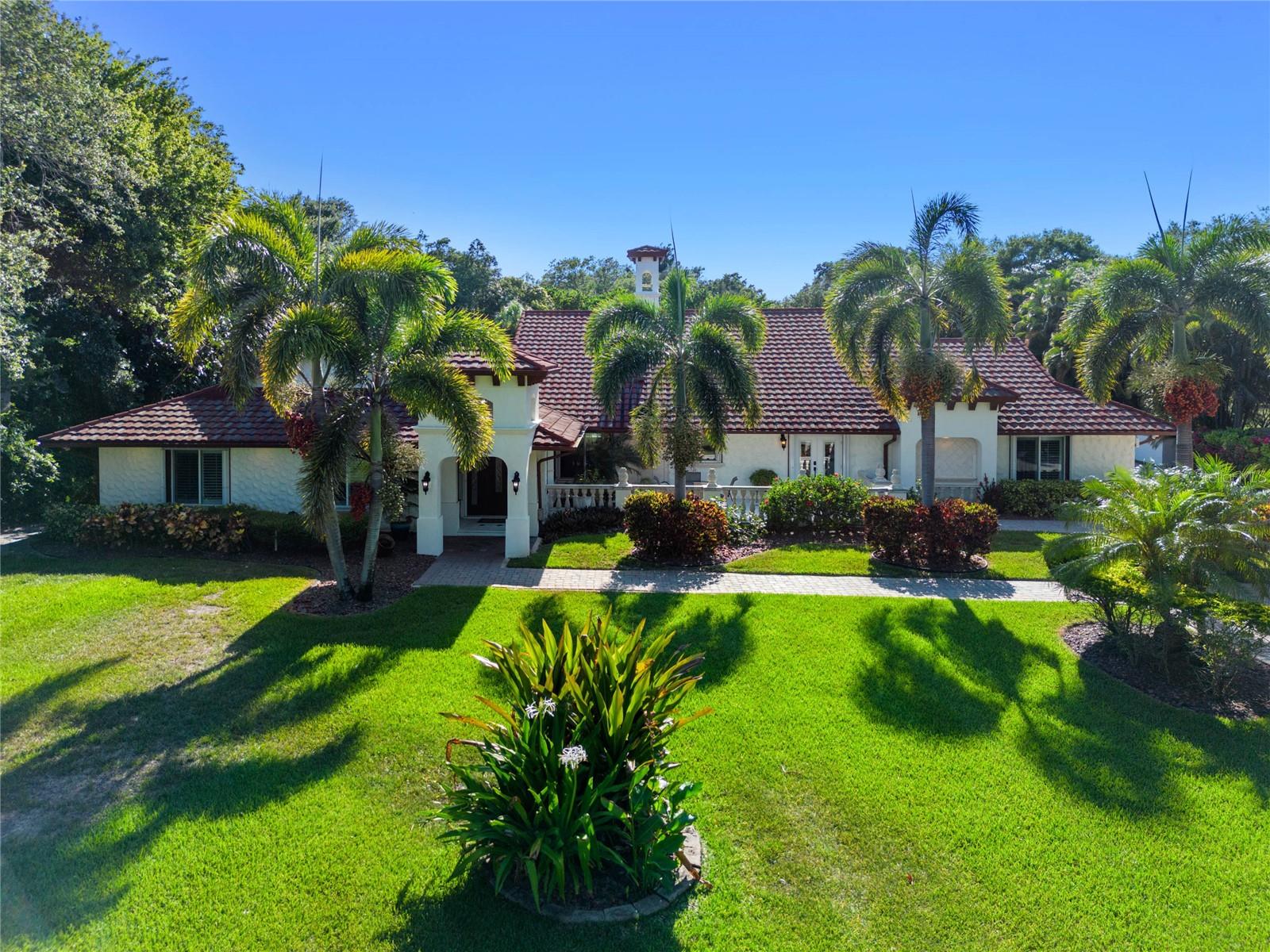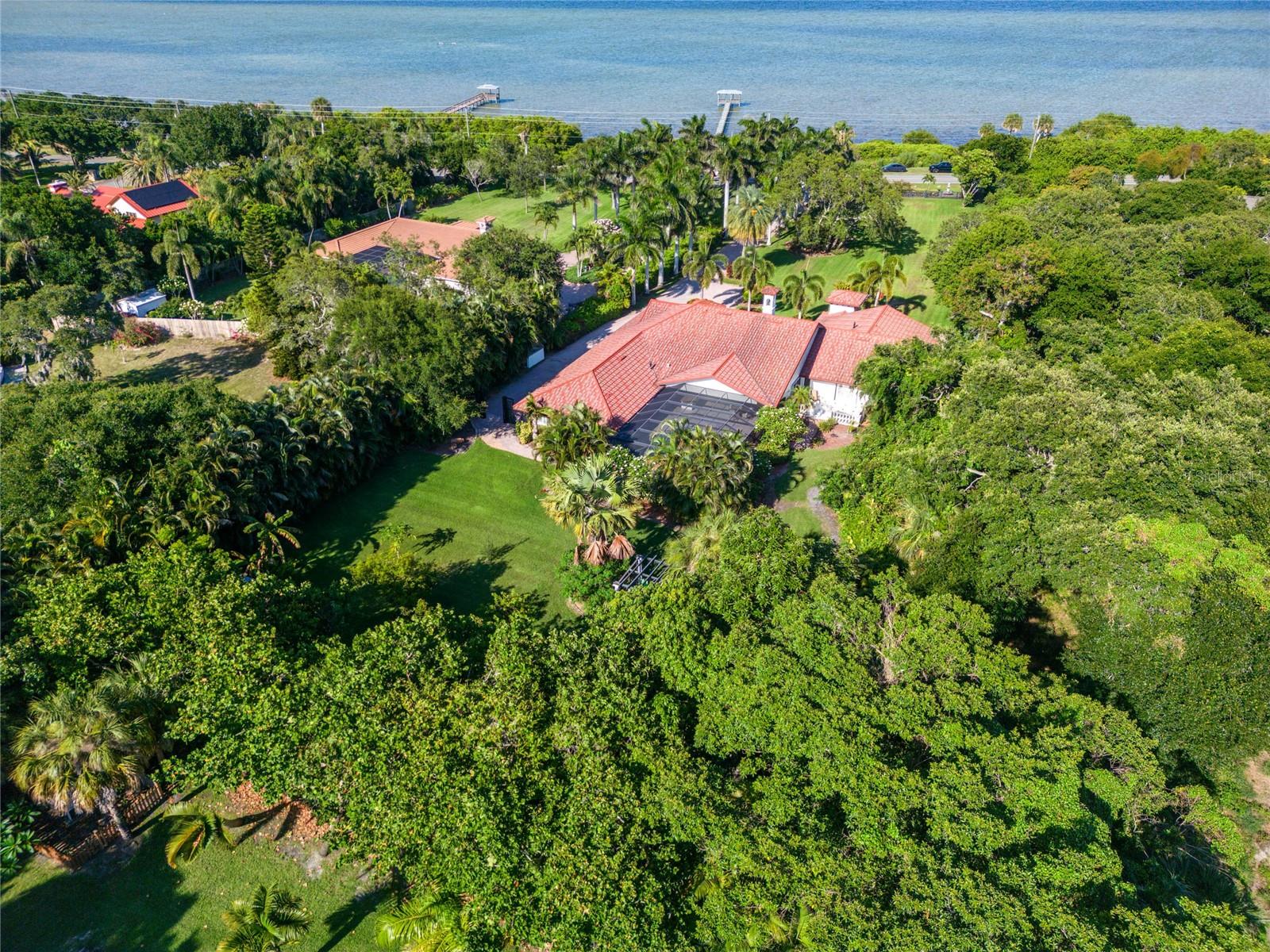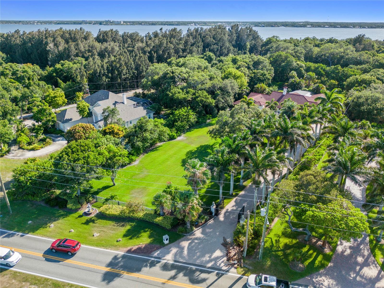 Your private Merritt Island paradise awaits! This gated waterfront estate sits on over 2 acres between the Banana & Indian Rivers. The property includes a long driveway lined by royal palms, professionally landscaped grounds and a backyard oasis with a pool and tons of upgrades! Inside the single-story Mediterranean-style home, you’ll find porcelain floors, archways, tray ceilings and ornate stone fireplaces. The kitchen is open to the living room and features vaulted ceilings, cherry cabinetry, granite counters (plus a gorgeous slab backsplash), and a massive center island with bar-top seating. Just steps away, you can dine alfresco and enjoy those water views on the front stone patio. The family room/den at the rear of the floorplan offers a full bar and access to the pool deck. The screened-in pool & spa area is a perfect spot to entertain, complete with an outdoor kitchen and lounge areas. Beyond the enclosure, the property includes a lush backyard, a pergola/firepit area and plenty of fruit trees (papaya, guava, banana, lemon, mango and avocado) that create a wall of privacy. The garage also has 3 Tesla charging stations. Across Tropical Trail, you can build a dock and sail your boat to countless beaches along the coast. The exquisite primary bedroom boasts a fireplace and has access to a private patio. The ensuite wows with a cherry double vanity, a massive custom shower and a walk-in closet the size of a bedroom. This home’s well-designed floorplan puts every guest room in opposite corners for maximum privacy, and each bedroom has access to a bathroom. In fact, behind the 3+ car garage (no stairs!), you’ll find private guest quarters with a separate entrance – suitable for multigenerational families or short-term guests. Merritt Island is an exclusive slice of the Sunshine State that’s zoned to top-ranked schools and is located just minutes (by car) from shopping plazas, beaches and Cape Canaveral. The craftsmanship that went into constructing this 4000+ sqft Merritt Island estate has to be seen in person. Schedule your tour as soon as possible.