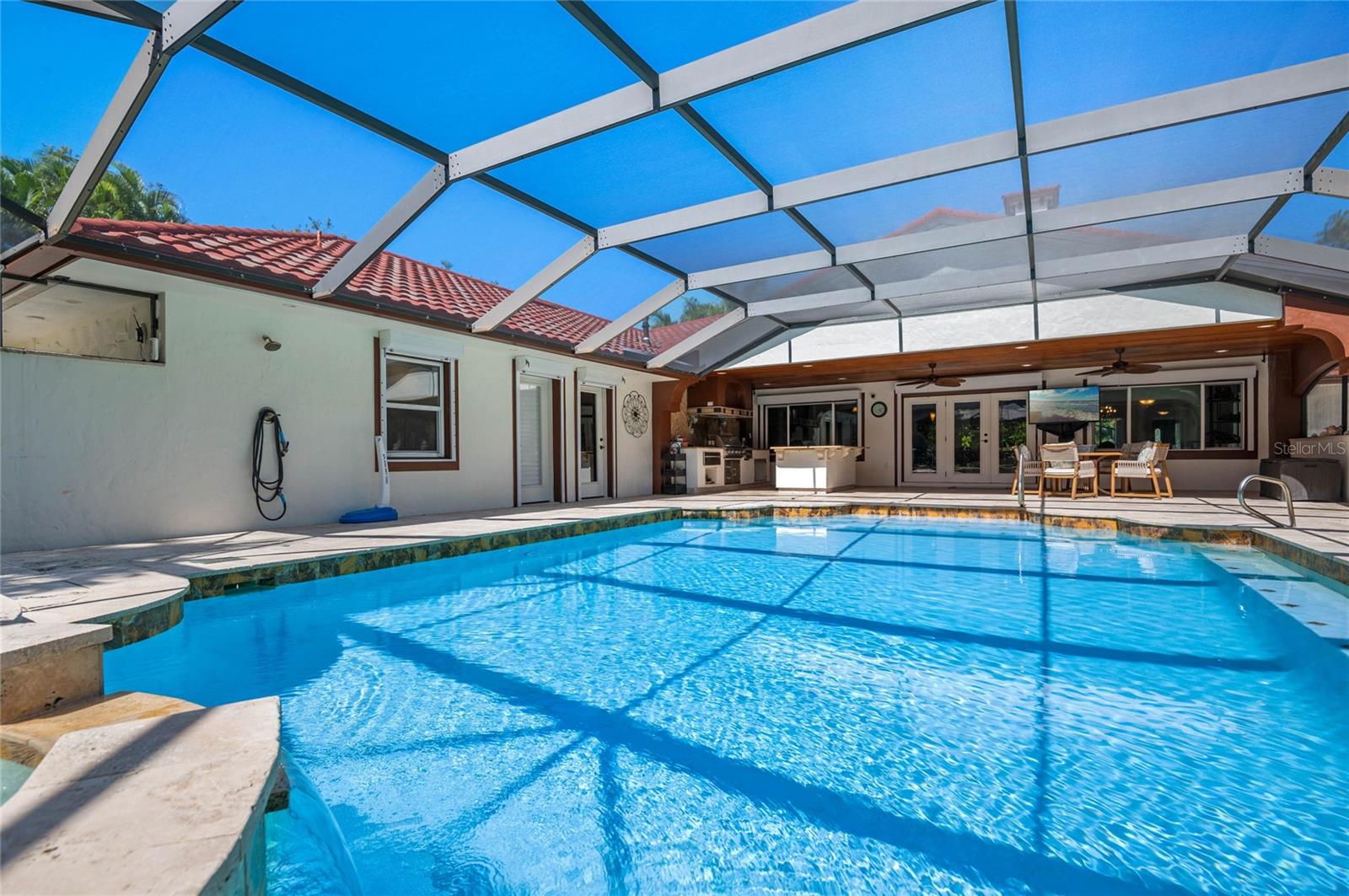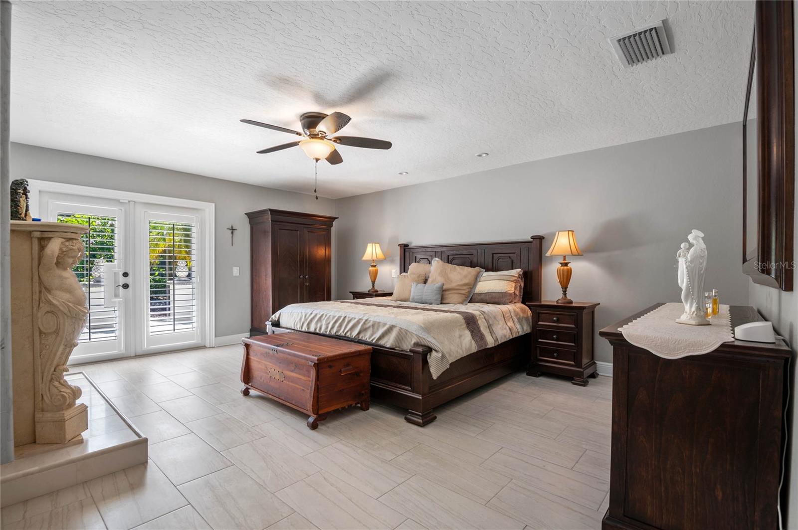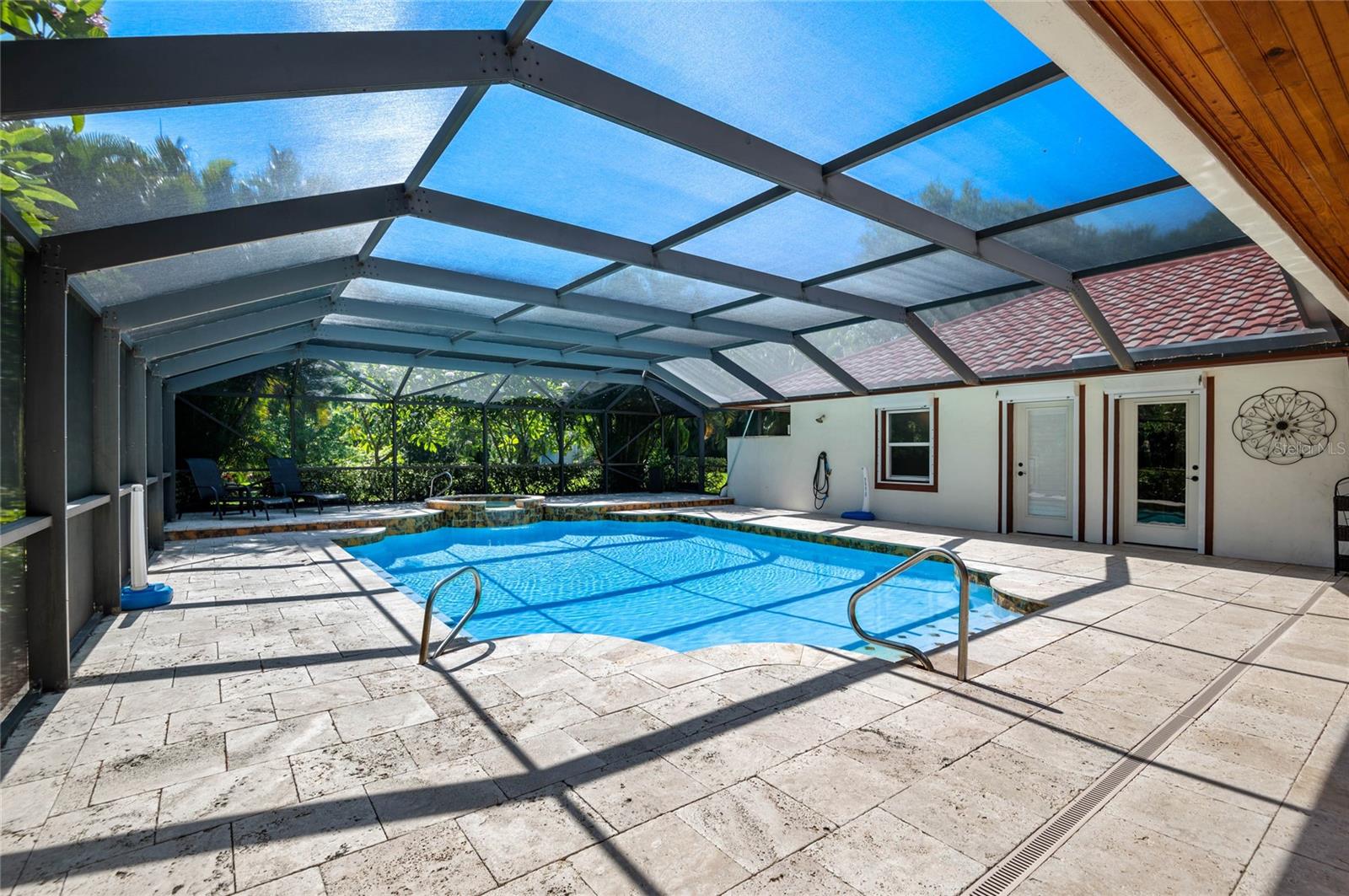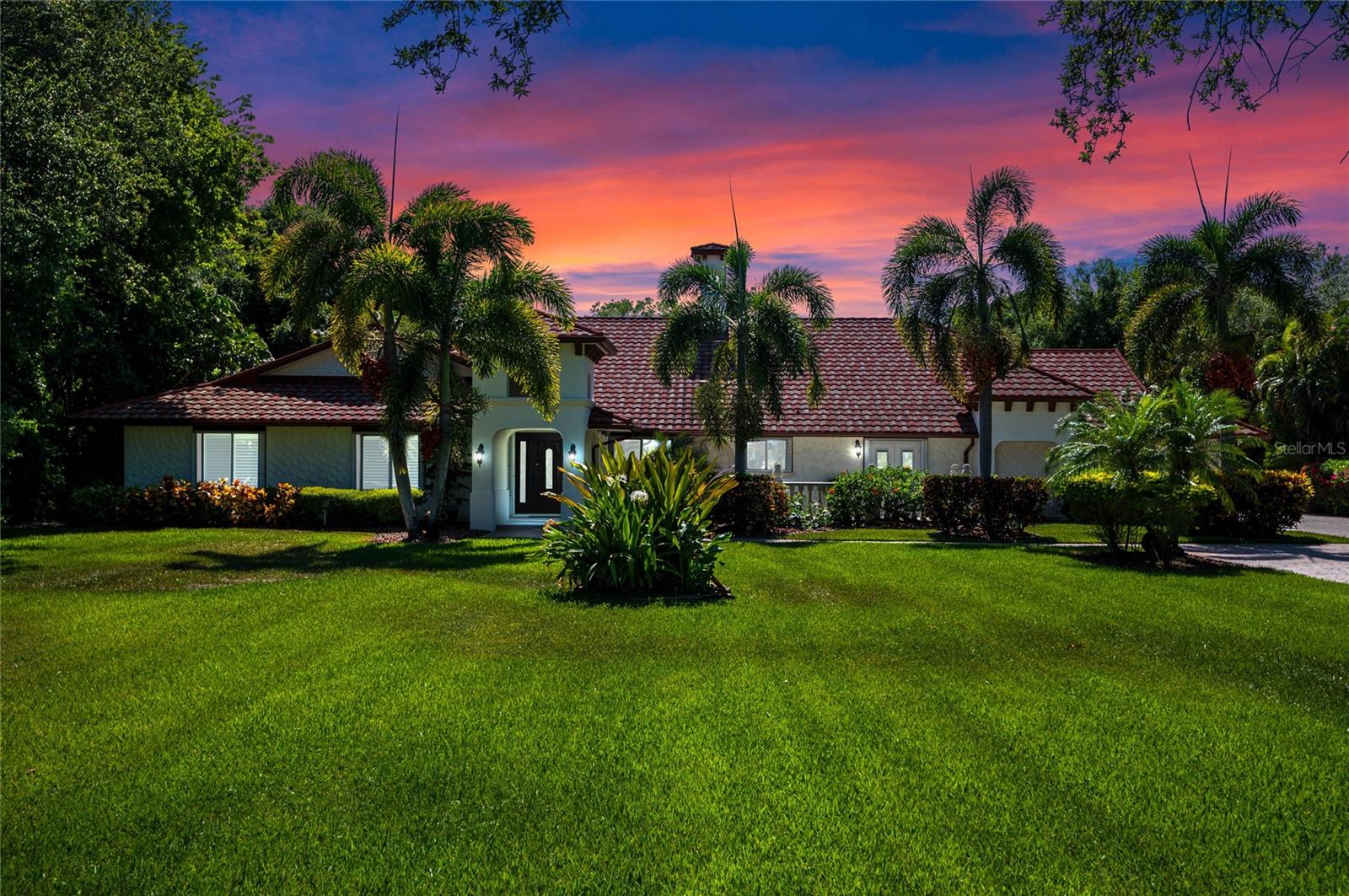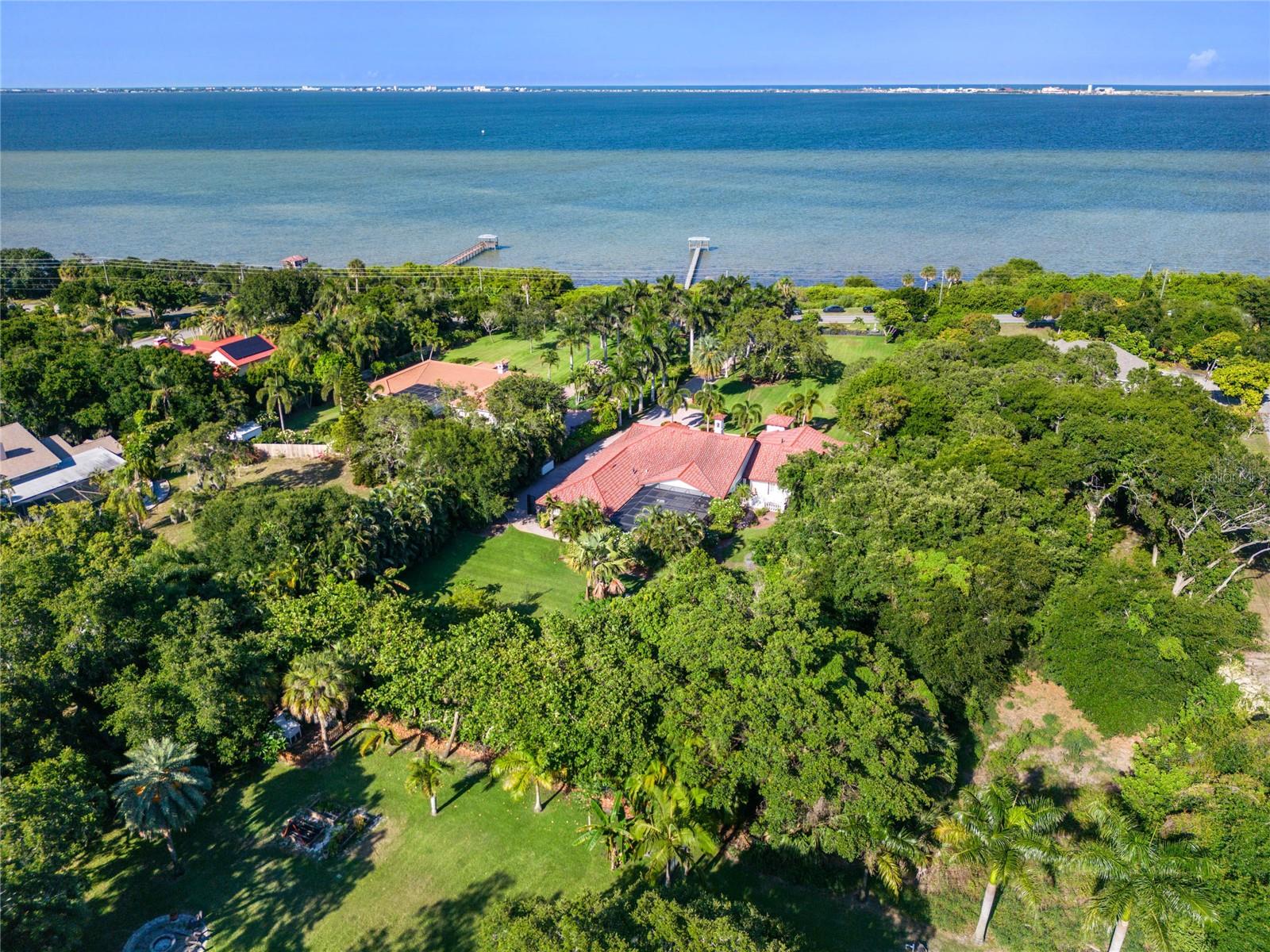 Your private Merritt Island paradise awaits! This gated waterfront estate sits on over 2 acres between the Banana & Indian Rivers. The property includes a long driveway lined by royal palms, professionally landscaped grounds and a backyard oasis with a pool and tons of upgrades! Inside the single-story Mediterranean-style home, you’ll find porcelain floors, archways, tray ceilings and ornate stone fireplaces. The kitchen is open to the living room and features vaulted ceilings, cherry cabinetry, granite counters (plus a gorgeous slab backsplash), and a massive center island with bar-top seating. Just steps away, you can dine alfresco and enjoy those water views on the front stone patio. The family room/den at the rear of the floorplan offers a full bar and access to the pool deck. The screened-in pool & spa area is a perfect spot to entertain, complete with an outdoor kitchen and lounge areas. Beyond the enclosure, the property includes a lush backyard, a pergola/firepit area and plenty of fruit trees (papaya, guava, banana, lemon, mango and avocado) that create a wall of privacy. The garage also has 3 Tesla charging stations. Across Tropical Trail, you can build a dock and sail your boat to countless beaches along the coast. The exquisite primary bedroom boasts a fireplace and has access to a private patio. The ensuite wows with a cherry double vanity, a massive custom shower and a walk-in closet the size of a bedroom. This home’s well-designed floorplan puts every guest room in opposite corners for maximum privacy, and each bedroom has access to a bathroom. In fact, behind the 3+ car garage (no stairs!), you’ll find private guest quarters with a separate entrance – suitable for multigenerational families or short-term guests. Merritt Island is an exclusive slice of the Sunshine State that’s zoned to top-ranked schools and is located just minutes (by car) from shopping plazas, beaches and Cape Canaveral. The craftsmanship that went into constructing this 4000+ sqft Merritt Island estate has to be seen in person. Schedule your tour as soon as possible.
