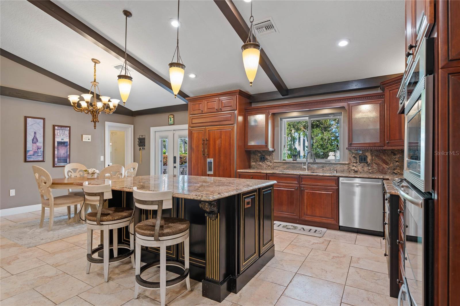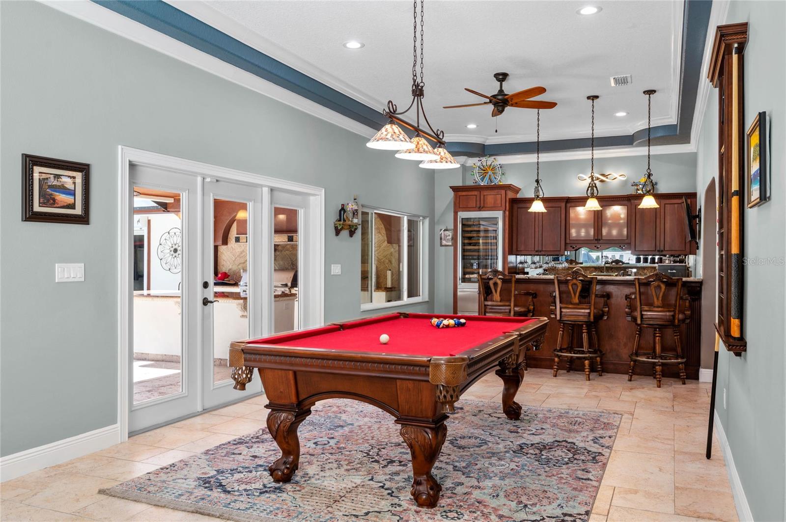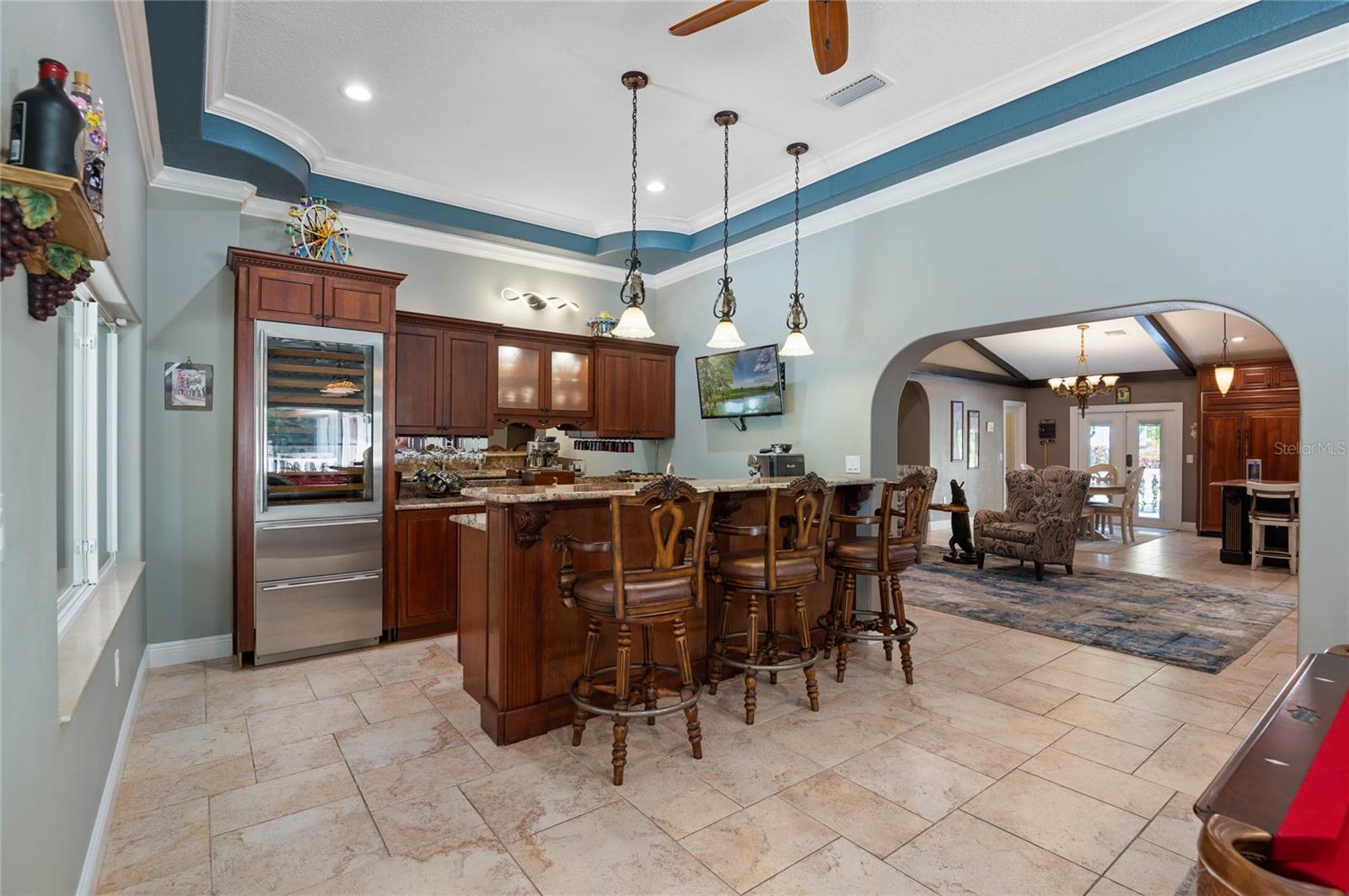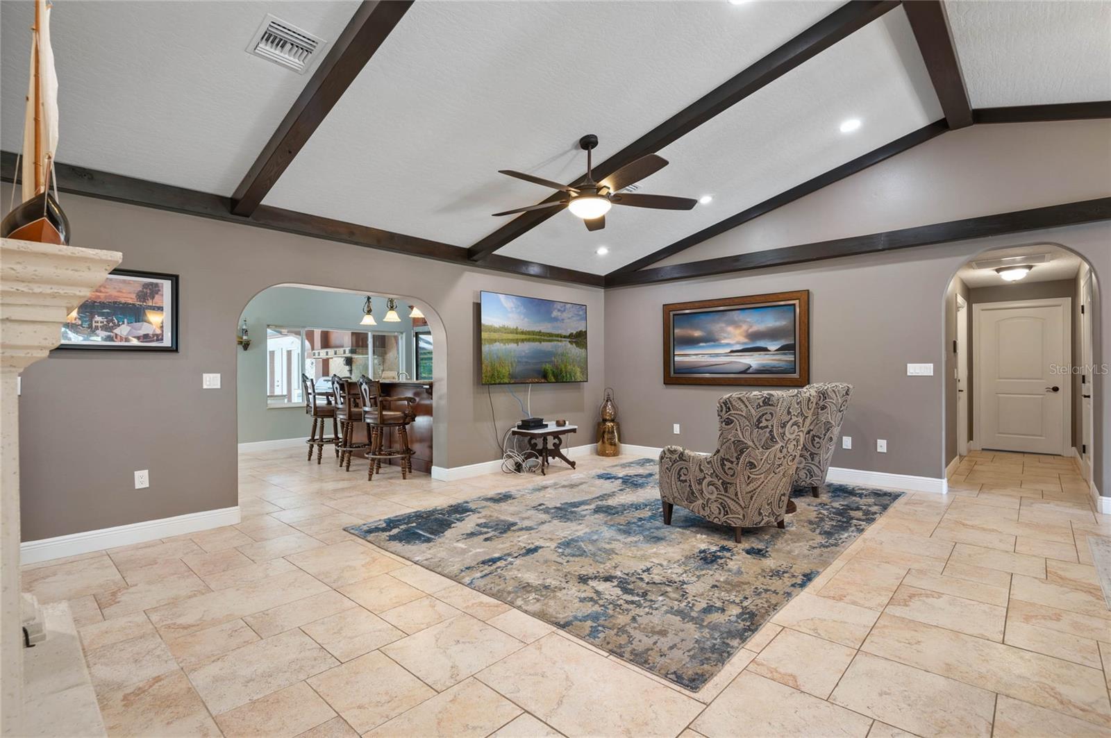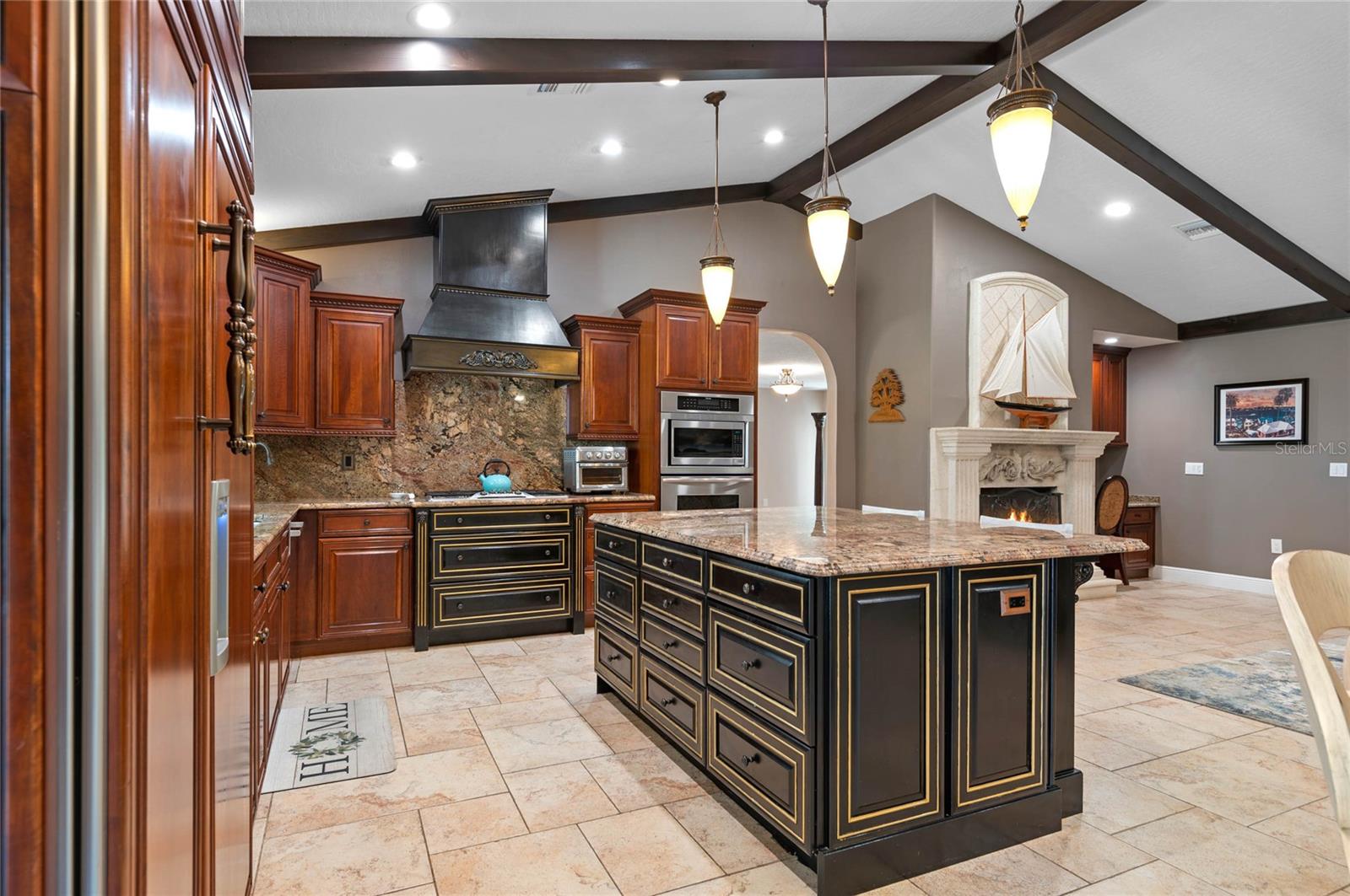 Your private Merritt Island paradise awaits! This gated waterfront estate sits on over 2 acres between the Banana & Indian Rivers. The property includes a long driveway lined by royal palms, professionally landscaped grounds and a backyard oasis with a pool and tons of upgrades! Inside the single-story Mediterranean-style home, you’ll find porcelain floors, archways, tray ceilings and ornate stone fireplaces. The kitchen is open to the living room and features vaulted ceilings, cherry cabinetry, granite counters (plus a gorgeous slab backsplash), and a massive center island with bar-top seating. Just steps away, you can dine alfresco and enjoy those water views on the front stone patio. The family room/den at the rear of the floorplan offers a full bar and access to the pool deck. The screened-in pool & spa area is a perfect spot to entertain, complete with an outdoor kitchen and lounge areas. Beyond the enclosure, the property includes a lush backyard, a pergola/firepit area and plenty of fruit trees (papaya, guava, banana, lemon, mango and avocado) that create a wall of privacy. The garage also has 3 Tesla charging stations. Across Tropical Trail, you can build a dock and sail your boat to countless beaches along the coast. The exquisite primary bedroom boasts a fireplace and has access to a private patio. The ensuite wows with a cherry double vanity, a massive custom shower and a walk-in closet the size of a bedroom. This home’s well-designed floorplan puts every guest room in opposite corners for maximum privacy, and each bedroom has access to a bathroom. In fact, behind the 3+ car garage (no stairs!), you’ll find private guest quarters with a separate entrance – suitable for multigenerational families or short-term guests. Merritt Island is an exclusive slice of the Sunshine State that’s zoned to top-ranked schools and is located just minutes (by car) from shopping plazas, beaches and Cape Canaveral. The craftsmanship that went into constructing this 4000+ sqft Merritt Island estate has to be seen in person. Schedule your tour as soon as possible.