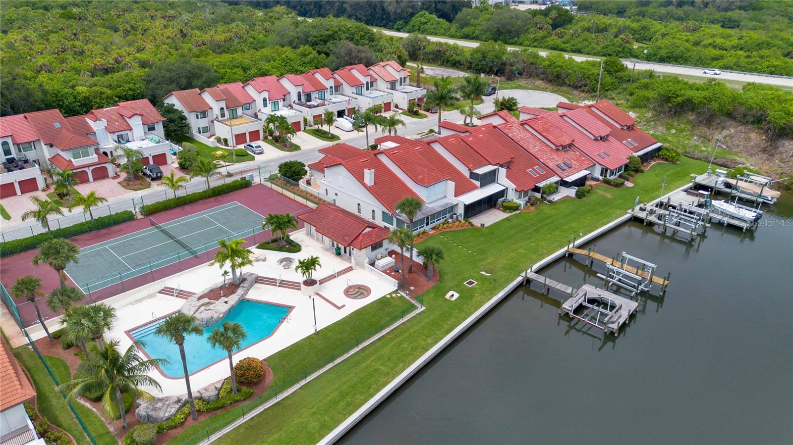 This beautiful Merritt Island townhouse offers a rare opportunity to live on the open water with stunning views and convenient boat access. With a private boat dock and lift, you can easily navigate to the barge canal, the open river, and the Ocean. Imagine stepping out of your backyard and straight into your boat for a day of fishing, boating, or exploring the local waterfront dining and nightlife. The home itself is a gem, featuring 3 spacious bedrooms and 2.5 bathrooms. The open-concept design with high vaulted ceilings and abundant natural light creates a welcoming and airy atmosphere. The master bedroom is conveniently located on the ground floor, while the two large guest bedrooms are situated upstairs. A loft overlooking the main living area adds to the open feel. The guest bedrooms are connected by a Jack and Jill bathroom, enhancing privacy and convenience for everyone. This townhouse perfectly combines the allure of waterfront living with the comfort of a thoughtful design.