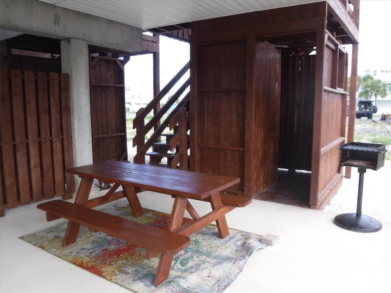 Experience coastal living at its finest! This townhouse offers a perfect blend of comfort and convenience with its spacious open living, dining, and kitchen area. Entertain effortlessly with fully equipped stainless steel appliances, granite countertops, and extra bar seating. The master bedroom boasts a king-size bed and a private bathroom, while the second floor features two bedrooms with queen-size beds, bunk beds, and private bathrooms - each equipped with smart TVs for ultimate relaxation. Enjoy the ocean breeze from your private balconies on each floor or rinse off after a day at the beach in the outdoor shower/bathroom. With just 300 feet to the sand and 700 feet to the water, this beach retreat is a paradise for beach lovers. The town of Mexico Beach exudes a laid-back, small-town vibe, and you're only 10 minutes away from restaurants in Port St. Joe or a 45-minute drive to Panama City's Pier Park. Whether you're into beachside dining, fishing, or exploring nearby attractions, this townhouse provides the perfect home base. Plus, with four parking spaces, including 2 under the house, you'll have the flexibility to explore the surrounding areas hassle-free. But wait there's more! This townhouse isn't just a haven by the beach; it's a smart income-generating rental property. Unlock the potential for a profitable summer retreat! It's a savvy investment for those looking to turn their property into a thriving income stream. Don't miss out on the opportunity to own a piece of paradise that pays you back!