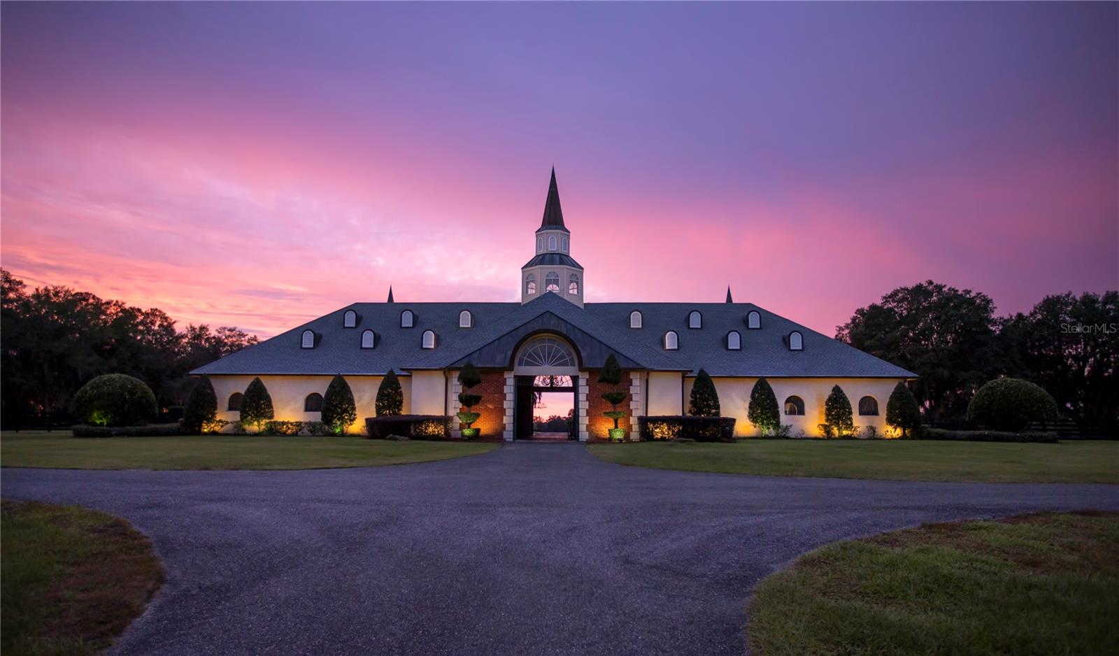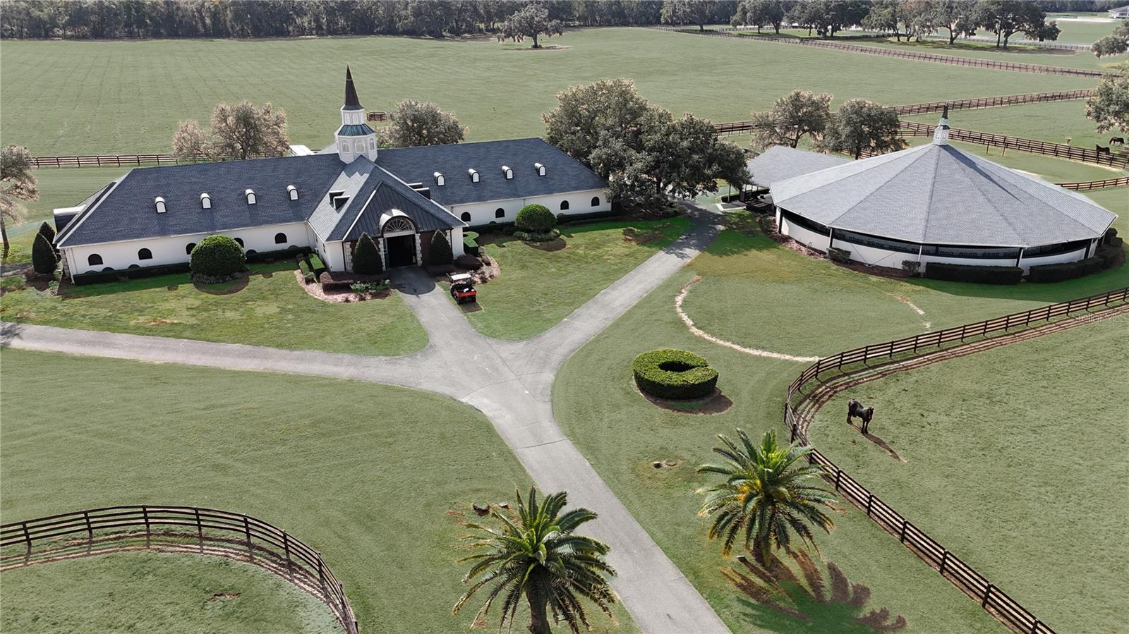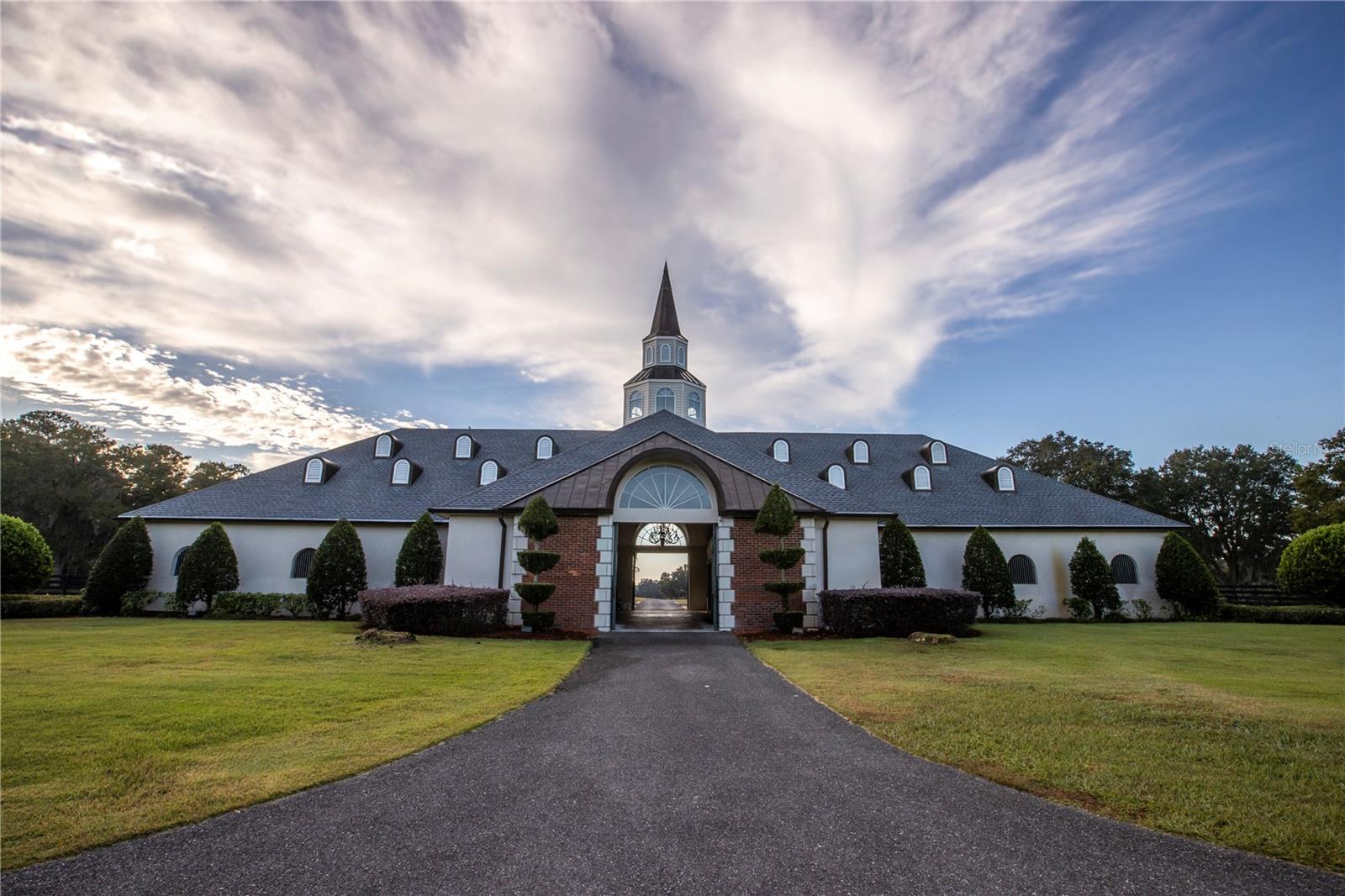 This magnificent property spans 400+/- acres & offers state-of-the-art equine facilities professionally sculpted & architecturally designed for both function & elegance. This estate property is available, for an additional cost, with two simi-contiguous owner’s residence consisting of a 3.3.5 with a 1/1 apartment with 3,988 SF of living area, and a 4/3.5 with 2,428 SF of living area. Elegant office encompasses 3,984 +/- SF of superior craftsmanship, striking brick façade, & durable asphalt shingle roofing. Inside, you’ll find an elegant lobby/reception area, comfortable lounge/meeting room, & numerous private offices, including an executive CEO office complete with beverage bar & a private ¾ bath. Thoughtfully designed layout features a spacious conference room, copy/fax room, & kitchen/break area, complemented by a welcoming exterior-covered porch. The overall quality of construction is simply outstanding. The property has fiber optic internet cabling, offering modern connectivity amidst nature’s beauty. This exceptional farm includes a 5,400 +/- SF breeding barn featuring 6 premium stalls, a 13'x13' holding stall, and a dedicated observance/vet/office area. Open lab workspace & wash stall for mares further enhance the breeding experience. West wing of the barn is home to a generous 40’X40’ breeding shed, boasting a concrete floor cushioned with 1” thick rubber matting for the comfort of your equine horses. Excellent center-aisle quality construction with decorative cupola, copper accents and decorative small cupolas center-aisle. Adjacent to the breeding barn, stallion barns feature durable concrete block construction with charming brick accents and copper, highlighted by an elegant cupola. Each stable has seven spacious 16’X16’ stalls, wash areas with protective rubber matting, and dedicated tack/feed areas. Double-metal entrance doors boast top-notch hardware and decorative windows, ensuring style and functionality. The broodmare barn offers 27 stalls, including 24 generously sized 12’X12’ stalls and (3) 12’X17’ foaling stalls. With a 1/2 bath and a 1/1 apartment, this barn combines luxury with essential amenities. Experience the luxury of a training barn constructed with concrete block and adorned with elegant brick accents. Facility includes 23 premium stalls, (3) 12’X17’ foaling stalls, 1/2 bath, lab area, feed room, and an inviting 1/1 apartment. European free walker, with an inner covered riding area, & round pen surrounded by meticulously landscaped areas illuminated by uplighting. The general manager's residence boasts approximately 1,884 +/- SF of living space, featuring vaulted ceilings, aluminum sash windows, & stylish decorative lighting throughout. The interior is thoughtfully designed with 4 bedrooms & 2 baths, including an owner's suite with a spacious bathroom. Additional property highlights include covered porches, beautifully landscaped grounds, & a secure gated entrance. Maintenance shop includes a 20’X30’ office, workshop with a half bath & ample storage alongside 3,617 SF of work area with 2 overhead roll-up doors. A spacious 5,442+/-SF parking area ensures abundant space for all your needs. 3 Bedroom, 3 bath employee home. Elevated loading docks are conveniently located near the breeding & stallion barns, featuring four efficient loading stations. All barn roofs have been recently replaced Extraordinary horse farm offers a wealth of amenities & unmatched quality that truly must be seen & appreciated.