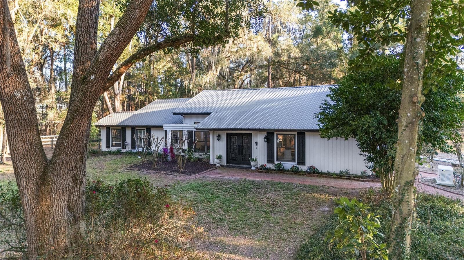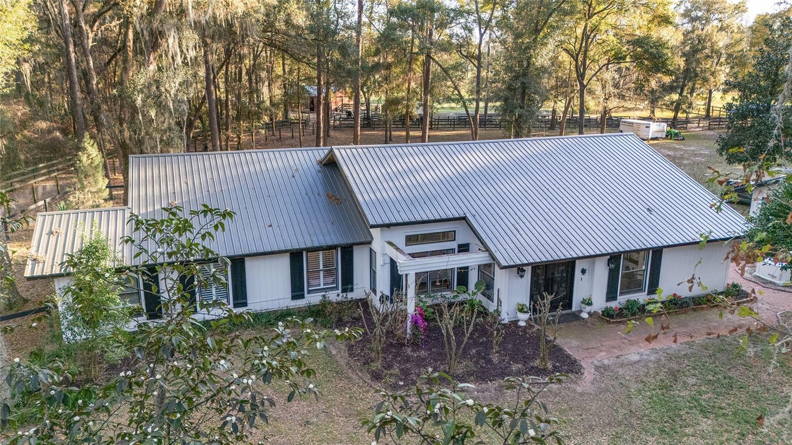 Nestled in the heart of Marion County’s Farmland Preservation Area, this Newly Renovated farmhouse estate is a countryside dream brought to life. Spanning 20 acres of rolling pastures and enchanting woodlands, the property is a harmonious blend of natural beauty and refined rural living. Towering southern magnolias, delicate crape myrtles, vibrant bougainvilleas, and fragrant camellias paint the landscape with seasonal splendor, while a variety of fruit trees produce nature’s sweetest bounty. A long paved drive, flanked by lush greenery, leads to the picturesque farmhouse, where rustic charm meets modern sophistication. Originally built in 1991, the home has been lovingly refurbished, preserving its storybook allure while incorporating elegant updates. A brand-new metal roof on all living areas, whole-house generator, new water heater, and a new 2024 air conditioning system ensure effortless year-round comfort. Inside, sunlight dances through expansive windows, casting a golden glow throughout. The 3-bedroom, 2.5-bath residence exudes both coziness and grandeur. At the heart of the home, the chef’s kitchen is a masterpiece of function and style. Designed for both culinary artistry and everyday living, it boasts a gas stove, extra large refrigerator, high-end appliances, and elegant finishes, making every meal a delight. The spa-inspired bathrooms have been beautifully updated, while the master suite offers a tranquil escape, where mornings begin with serene views and evenings end in peaceful repose. Beyond the main house, charming guest accommodations await. A private mother-in-law suite attached to the two-car garage, provides a secluded haven for visitors or extended family. Additionally, a private 750-square-foot one-bedroom guest cottage exudes warmth and character, offering the perfect sanctuary for guests or a potential income-producing retreat. For equestrians and nature lovers alike, this estate is a dream fulfilled. Lush, cross-fenced pastures are primed for horses or livestock, complete with three paddocks, a well-appointed six-stall barn with water and electricity, and a separate two-stall BROOD barn in the front pasture. The landscape invites endless adventures—morning rides, tranquil afternoons beneath ancient oaks, and quiet evenings under star-strewn skies. With its seamless blend of modern luxury, pastoral charm, and equestrian-ready amenities**, this storybook farm is more than a home—it is a sanctuary of serenity. Whether envisioned as a private retreat, a working farm, or a multigenerational homestead, this extraordinary estate welcomes you with open arms and limitless possibilities.