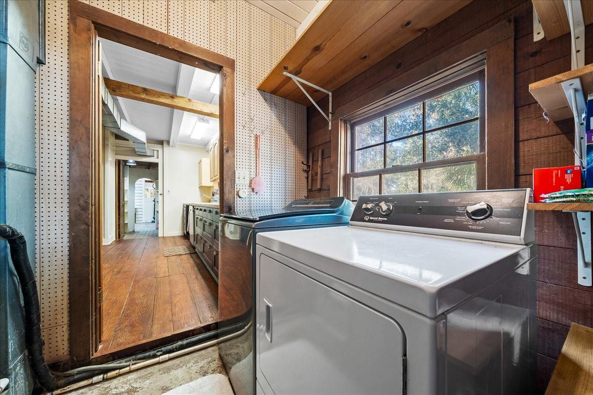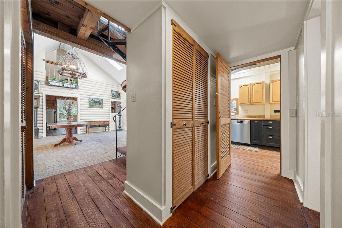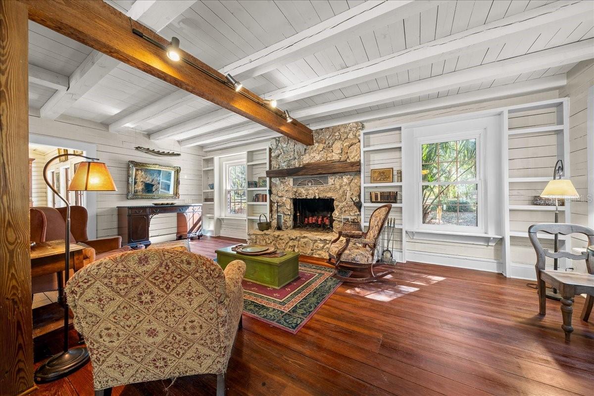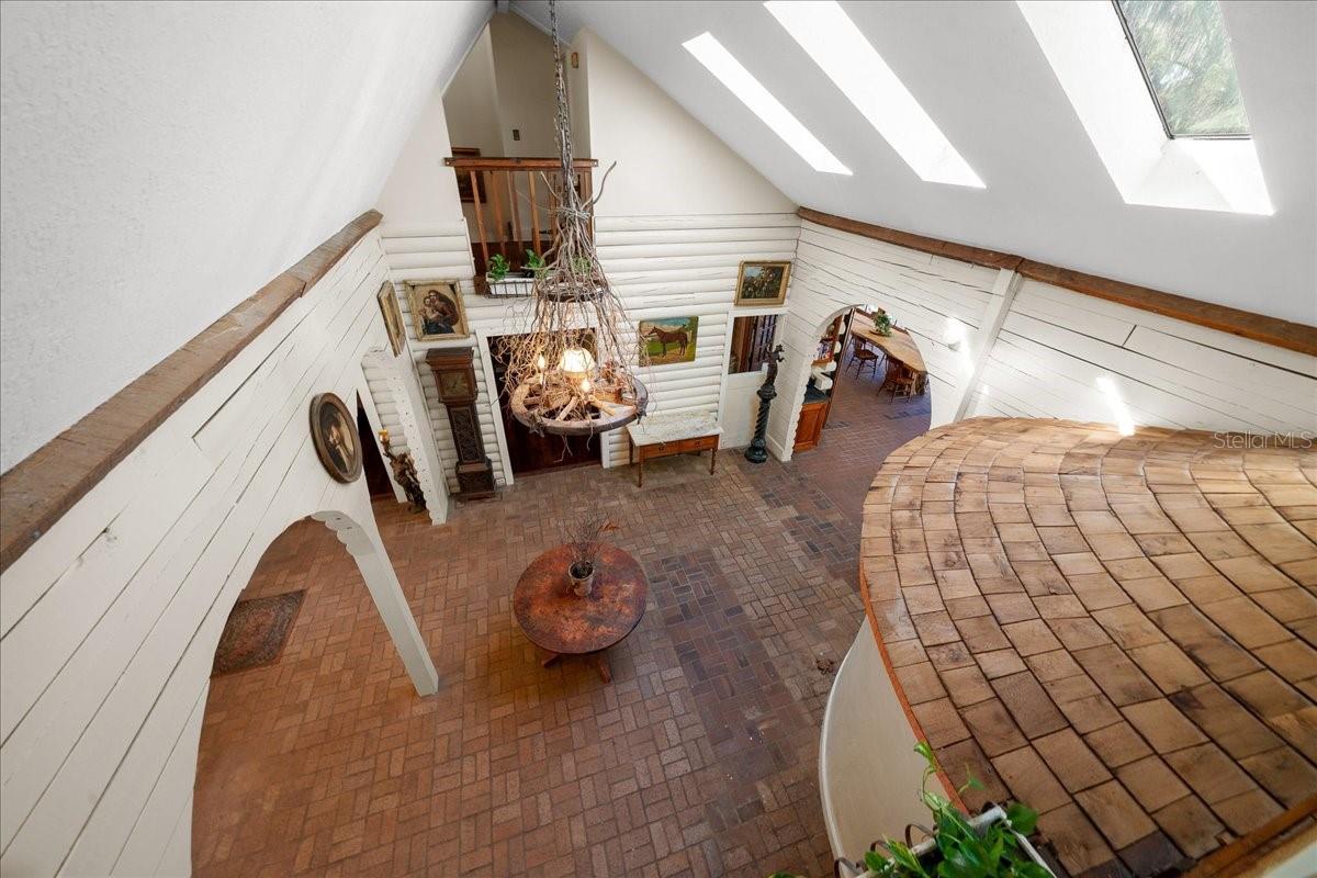 Tucked beneath a canopy of mature live oaks and bordering the natural beauty of the Tuscawilla Preserve, Mosswood Farm offers a rare blend of privacy, craftsmanship, and fully developed equestrian amenities across 16.27 picturesque acres. Designed with the horse enthusiast in mind, the property features 12 well-appointed stalls across two barns, including a classic center-aisle barn and a functional shed-row barn, providing flexibility for training, boarding, or private use. Riders will appreciate the two professionally leveled arenas, one fully equipped with lighting, creating an exceptional setting for evening rides, schooling, or private events. At the heart of the property stands a stunning 4,500-square-foot custom log residence, rich in architectural detail and natural materials. A dramatic two-story foyer welcomes you into a home filled with warmth and natural light, highlighted by brick and river pine flooring, cypress cabinetry, custom doors and windows, and two natural-stone fireplaces that anchor the main living spaces with an additional fireplace in the second bedroom! The thoughtfully designed kitchen is complemented by a butler’s pantry with an additional dishwasher accessed through a distinctive custom turret, adding both function and character rarely found in modern construction. The main-level primary suite offers a peaceful retreat with a private sitting area, his-and-hers bathrooms, and a spacious walk-in closet. Upstairs, two guest bedrooms are connected by an unconventional Jack-and-Jill bath with shared closet access, while a separate spiral staircase leads to an expansive loft-style living room—perfect for a media lounge, studio, or additional gathering space. Practical enhancements including a whole-property generator system, newer roof, and updated windows ensure comfort, efficiency, and peace of mind. Whether envisioned as a private equestrian sanctuary, boutique training facility, or countryside estate retreat, Mosswood Farm delivers a unique opportunity to own a thoughtfully developed horse property in a naturally preserved setting—just moments from the conveniences of town while feeling worlds away!