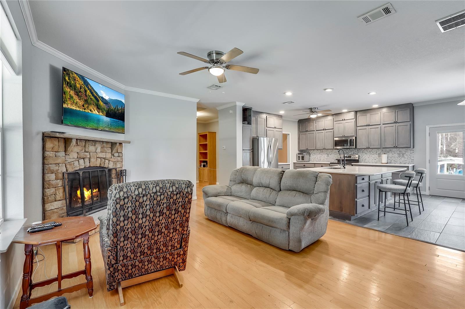 **OPEN FLOOR PLAN**SPLIT BEDROOM**SPACIOUS LAND** Welcome home to this charming property that offers a calming and peaceful environment. This home features a SPACIOUS KITCHEN which has been UPGRADED with a large center island/breakfast bar, as well as tons of cabinetry. The large living room boasts a COZY FIREPLACE and views of the LARGE FRONT YARD and HUGE COVERED PORCH. The master bedroom en suite bathroom offers an elegant SOAKING TUB and a fireplace, so you can have a cozy experience. The plantation shutters in the en suite bathroom provide tons of NATURAL LIGHTING. The WALK IN PANTRY doubles as the laundry room, and offers tons of shelving space. Off of the kitchen, a newly renovated LARGE DECK, overlooks the LARGE BACKYARD, which backs up to a forest, offering rural living while still being close enough to town. A huge COVERED CARPORT is also included in the backyard. Don’t miss out on this opportunity!