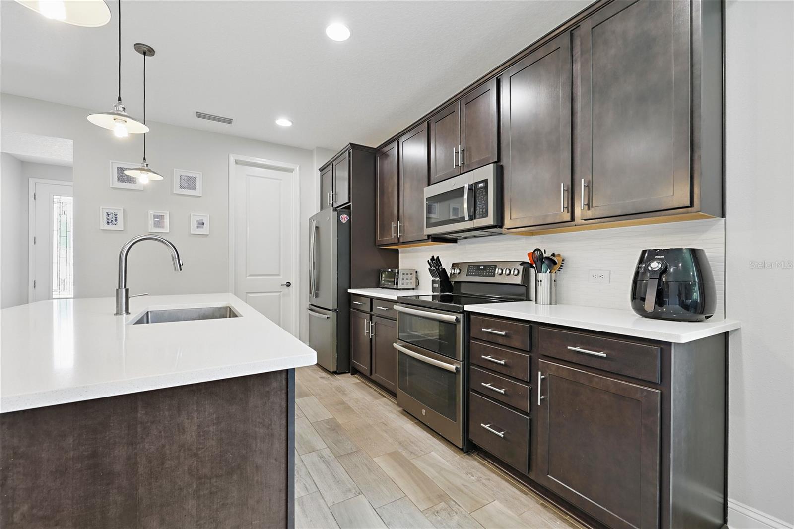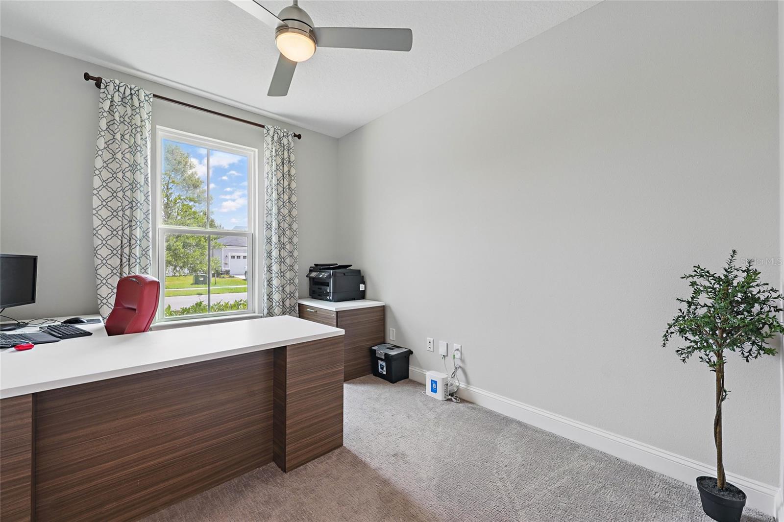 Welcome to this stunning former model home built in 2019! Discover 3 bedrooms, 2 bathrooms & versatile flex room, currently utilized as an office - perfect for remote work. Experience the upgraded features that set this home apart, highlighted by the sophisticated, neutral flooring that extends throughout the main areas. Kitchen & bathrooms boast luxurious quartz countertops with upgraded lighting fixtures that offer modern appeal plus a spacious pantry. All appliances included and you'll appreciate the expansive laundry room w/plentiful cabinet space. Primary bedroom offers HIS & HERS separate closets! The open-concept layout is ideal for entertaining & relaxing, leading to a delightful screened-in patio. Enjoy your private backyard, complete with no rear neighbors, offering tranquility & privacy. Adding to its appeal, this property qualifies for the USDA zero-down loan program, making homeownership more accessible than ever! Spectacular resort-style amenities include a swimming pool with thrilling waterslide, playground, fitness center, splash pad, and basketball & pickleball/tennis courts. Enjoy the benefits of a PRIME LOCATION, zoned for Clay County's top-rated schools, ensuring excellent educational opportunities. Don't miss the opportunity to make this exceptional home yours. Schedule a showing today!