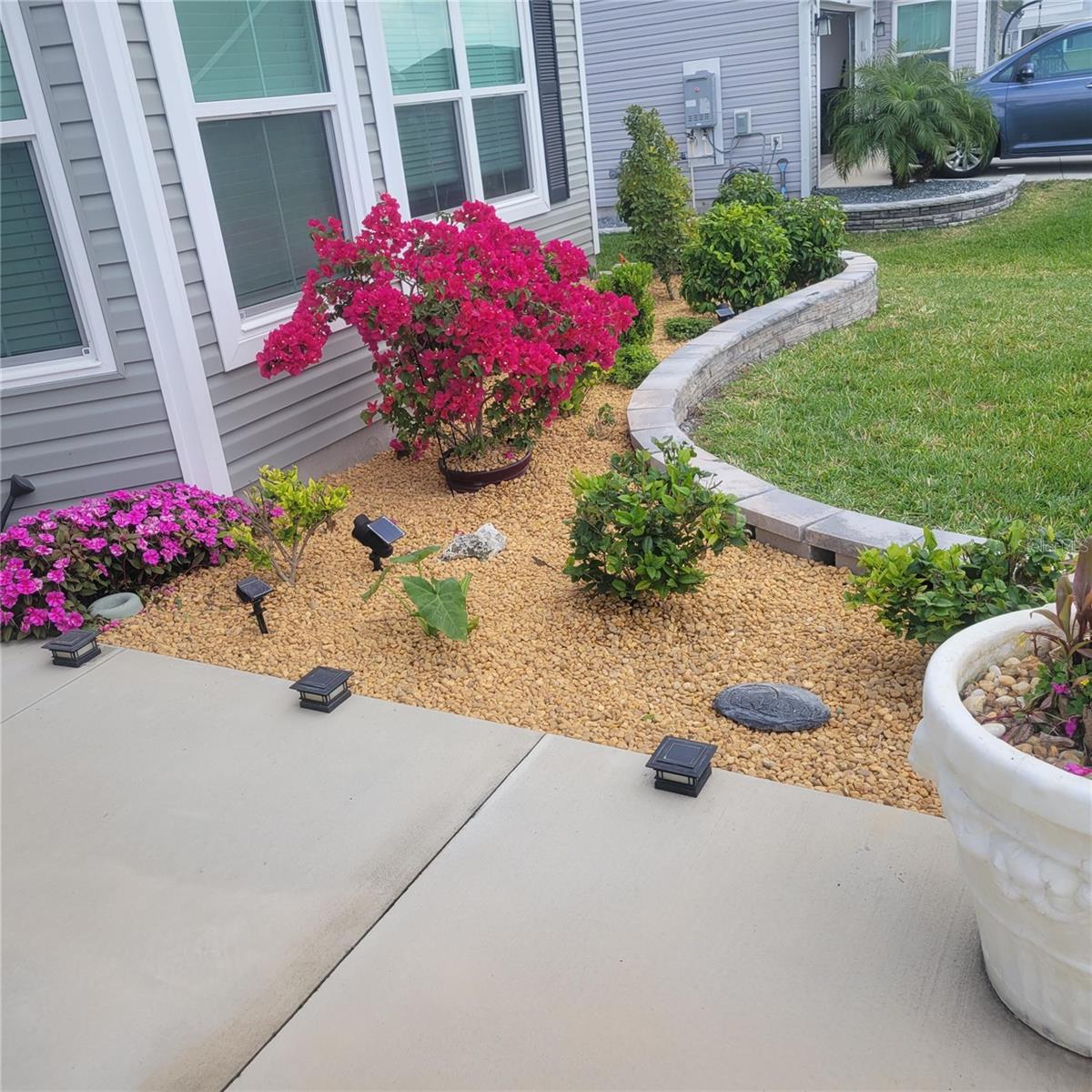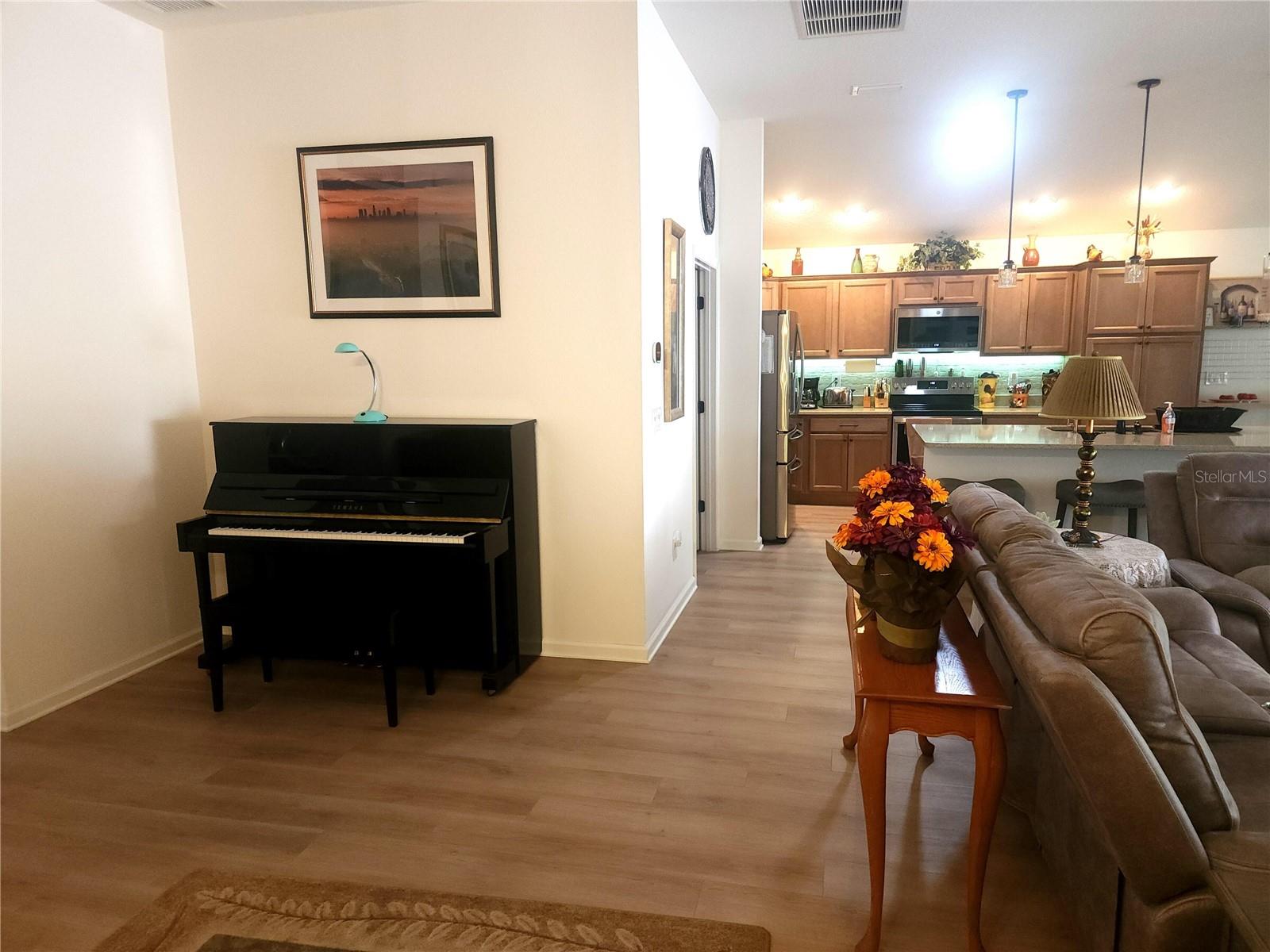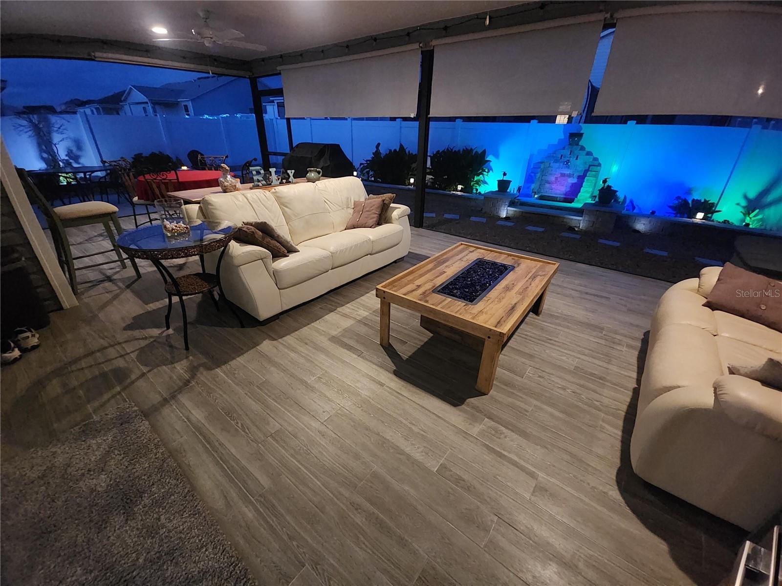 Almost new house with 4 good sized bedrooms and large open living area, all on one floor. Huge expanded garage with golf cart addition. Huge expanded lanai with wood-look porcelain tile. All countertops are quartz and fixtures are dark rubbed bronze. Luxury vinyl plank flooring throughout the whole house. Living room has a custom media wall with LED lighting, 70" Samsung TV, high end stereo system with 5 speakers and 60" electric fireplace that all stay with the house. Large master suite with vaulted ceiling. Master bath has dual, modern, rectangular sinks, big walk-in closet and roman shower. Kitchen has under cabinet lighting with tiled backsplash and solar tube skylight. Also comes with gas tankless water heater and french door refrigerator. Ceiling fans w/lights in every room, (7 total). Back yard has custom landscaping with fire pit, patio, koi pond, flower beds and small vegetable garden all enclosed with vinyl fencing. Great location in Middleton. You won't find a better non-age-restricted neighborhood in Florida. Built by The Villages, the biggest and best retirement community in the country. This house is very close, easy walk to The Villages School. Also, to downtown Middleton, a rapidly expanding hub of dining and activity. And very short walk to the pool and Lake Harlow park with tennis, basketball and pickleball courts. Very quiet side street with almost no traffic, fenced in back yard and great respectful neighbors. Truly a great location.
