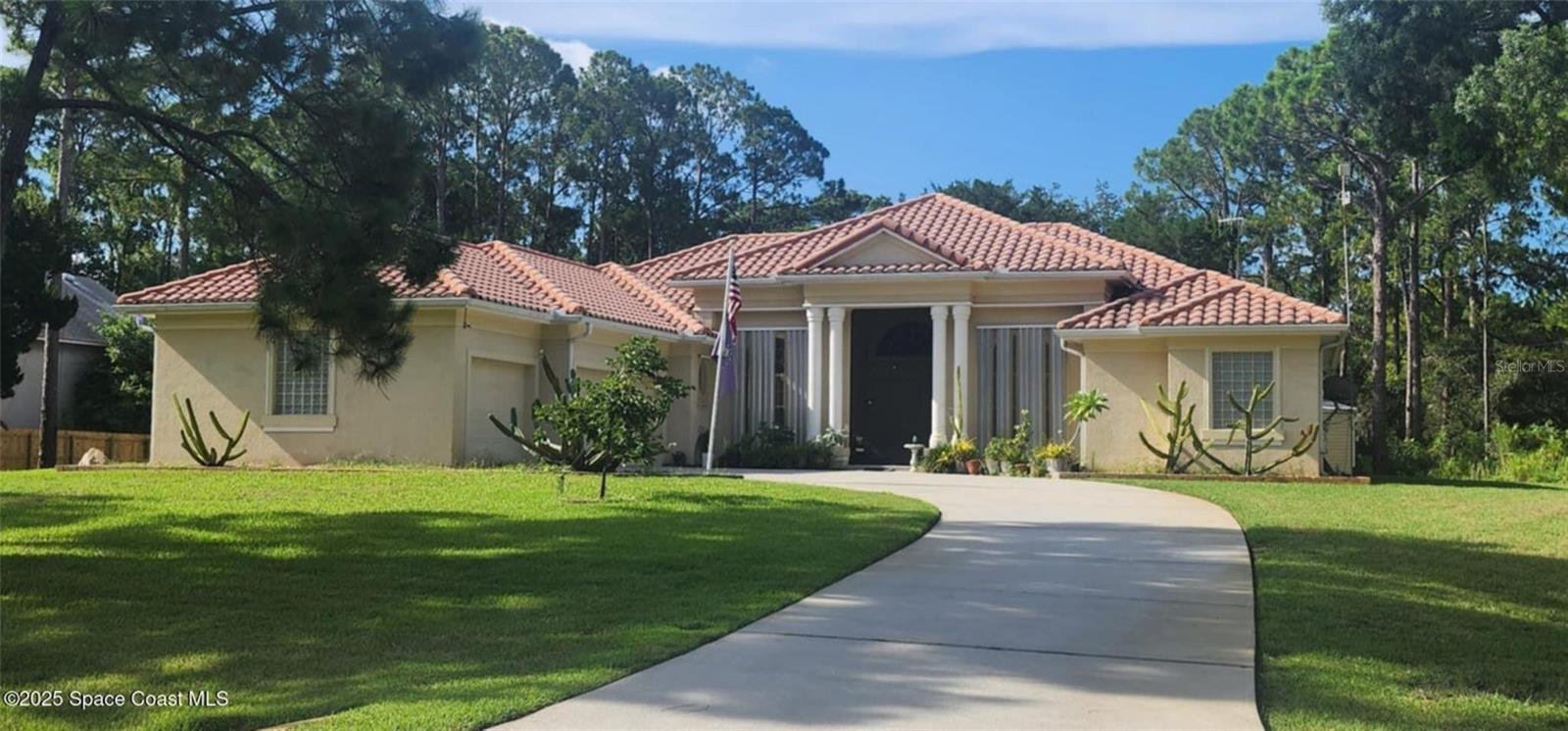 Beautifully built 4 bed, 3 bath, 3-car garage custom home with 2,799 sq ft of living space. Thoughtfully designed with stunning architecture, elegant trim, and soaring 20' ceilings in formal areas (12' throughout the rest). The gourmet kitchen includes a Jen-Air drop-in range, wall oven, microwave, and large pantry. The spacious primary suite features his & her closets, Jacuzzi tub, walk-in shower, and double vanity. Guest rooms share a Jack & Jill bath. Detached 1,218 sq ft garage/shop is under air, tiled, with a 14' roll-up door and a half bath plumbed for full. The home also comes equipped with storm panels and a 15kW portable generator. A 15x10 shed offers even more storage, and the washer, dryer, and riding mower will convey with the sale. Located on Florida's renowned Space Coast, just minutes from Kennedy Space Center, rocket launches, beaches, and thriving aerospace industry hubs — a rare blend of craftsmanship and location! Photos to come.