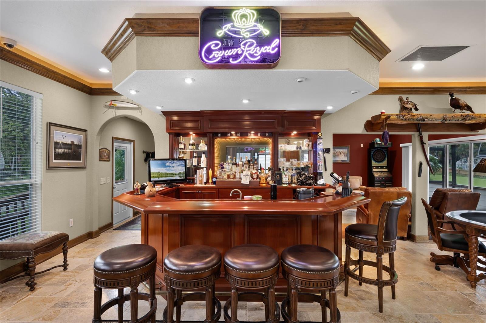 Welcome to this one-of-a-kind sportsman’s paradise in Mims, offering the perfect blend of comfort, recreation, and waterfront living. This 3 bedroom, 2 bathroom home sits on 0.44 acres across two parcels and offers direct canal access to the St. Johns River with a private dock and boat ramp right on the property, making it a dream for boaters, hunters, and fishermen alike. The outdoor living spaces are truly unmatched, with a large covered porch complete with a sink, built-in grill, mini fridges and freezers, kegerator and propane firepit. A spacious backyard deck provides an additional firepit, sink and fish-cleaning station, and plenty of room to relax or entertain after a day on the water. Inside, the home offers both a living room and family room/den, along with an indoor bar equipped with a mini fridge and kegerator. The kitchen boasts granite countertops, stainless steel appliances including refrigerator, oven, dishwasher, microwave, wine cooler, and food warmer, making it perfect for hosting gatherings or enjoying quiet evenings at home. The primary suite includes a versatile bonus space, and ceiling-mounted speakers run throughout the home for a true entertainment experience. Additional features include two approximately 250-gallon holding tanks with an alternate well available, a newer septic system, and two newer AC units. Although located in Flood Zone AE, this elevated home has never experienced water intrusion, even during major storms like Hurricane Ian. With no HOA, a quiet setting, and close proximity to Hatbill Park, Loughman Lakeside Restaurant & Bar, I-95, the Indian River, and the beaches, this property offers a rare opportunity for a full-time residence, weekend retreat, or sportsman’s paradise. Don’t miss your chance to own this ultimate getaway—schedule your private showing today!
