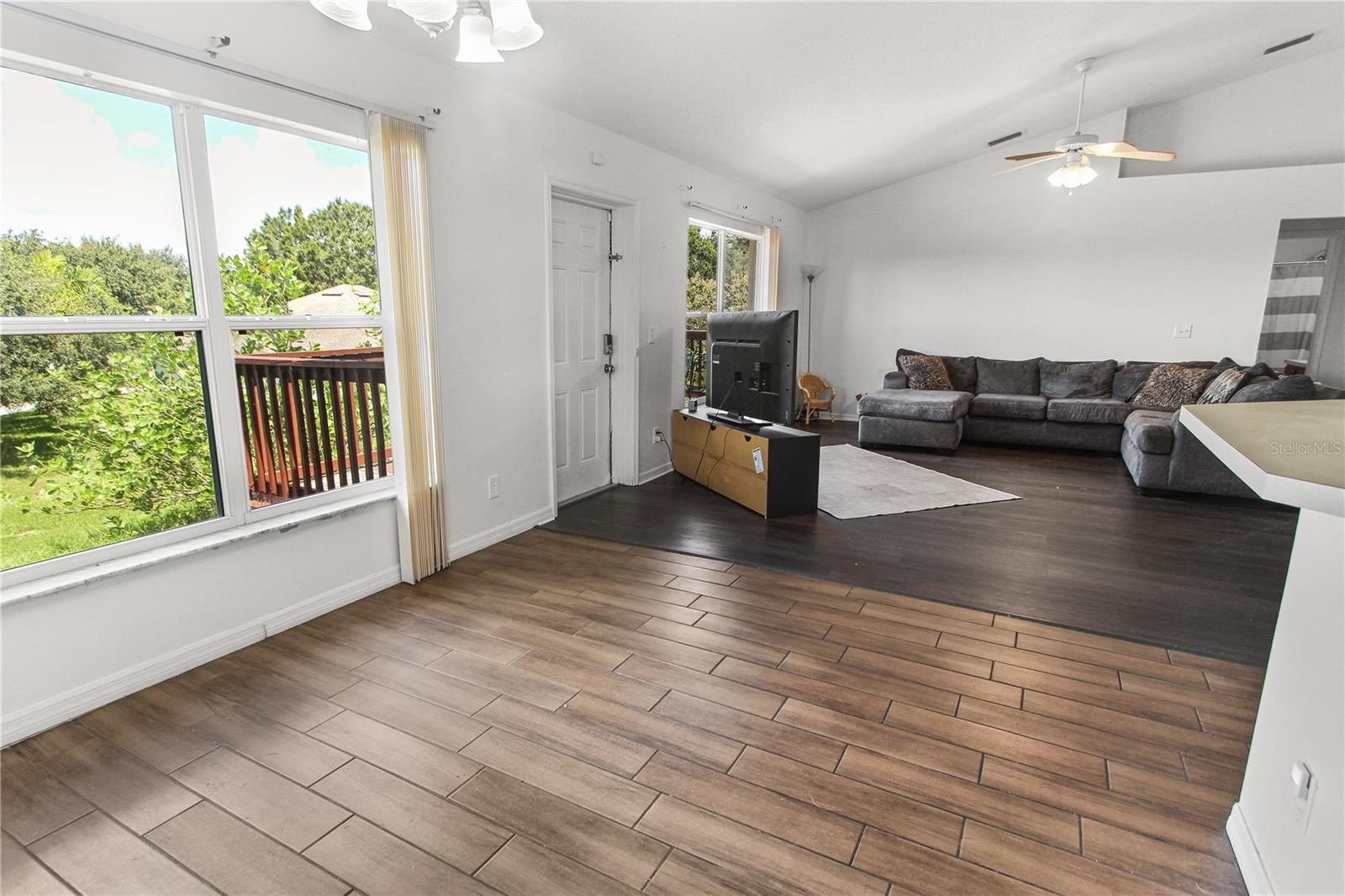 EXPERIENCE MODERN CHARM AND EFFORTLESS LIVING in this inviting 4 Bdrm/2 Bath home nestled in the serene and sought-after neighborhood of HIGHLAND OAKS. With a NEW ROOF (2023) and a thoughtfully designed OPEN FLOOR PLAN, this home exudes both style and functionality. VAULTED CEILINGS amplify the sense of space and light, creating an airy and welcoming ambiance throughout. The combined Living and Dining areas offer ultimate FLEXIBILITY, perfect for cozy family evenings or hosting larger gatherings. At the heart of the home, the SPACIOUS KITCHEN boasts SOLID WOOD cabinetry, AMPLE COUNTER SPACE, and a convenient BREAKFAST BAR, making it a dream for both everyday meals and entertaining. Retreat to the LARGE MASTER SUITE, a sanctuary of comfort with an EN-SUITE BATHROOM that features a WALK-IN CLOSET, a private commode, and a SPACIOUS WALK-IN SHOWER—ideal for unwinding after a busy day. While this home doesn’t have a traditional backyard, it offers a PRIVATE DECK where you can relax and take in serene views without the upkeep. This elevated retreat is perfect for morning coffee, evening cocktails, and enjoying Florida’s stunning sunsets. Situated in a PRIME LOCATION, this home offers unparalleled convenience with proximity to Southlake Hospital, the award-winning Lakeridge Winery, the Florida Turnpike, and a variety of shopping, dining, and entertainment options. Whether you’re starting a family, upsizing, or seeking a tranquil retreat, this home perfectly blends practicality with contemporary sophistication. DISCOVER YOUR NEW BEGINNING IN THIS DELIGHTFUL HOME- SCHEDULE A TOUR TODAY!
