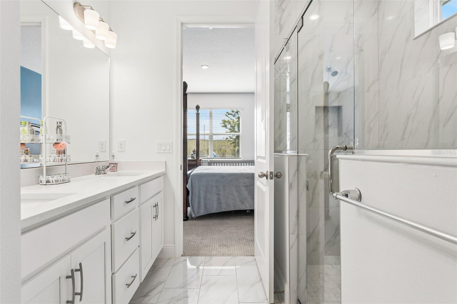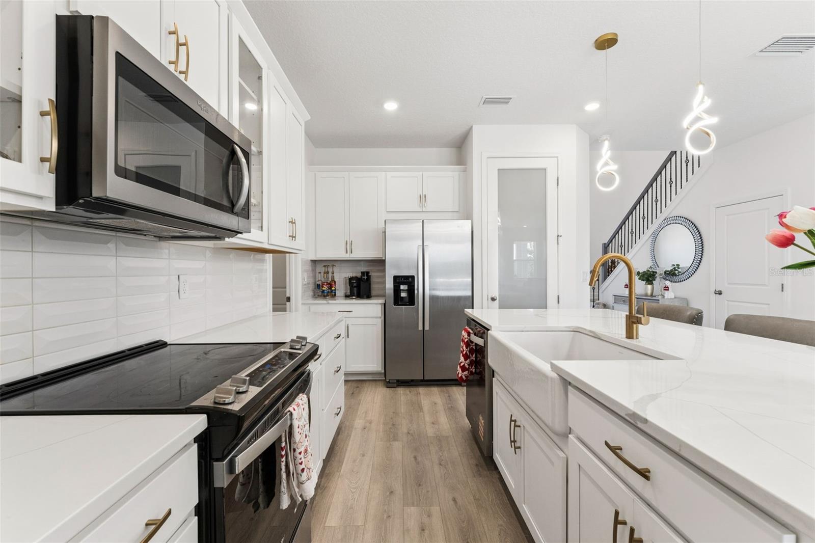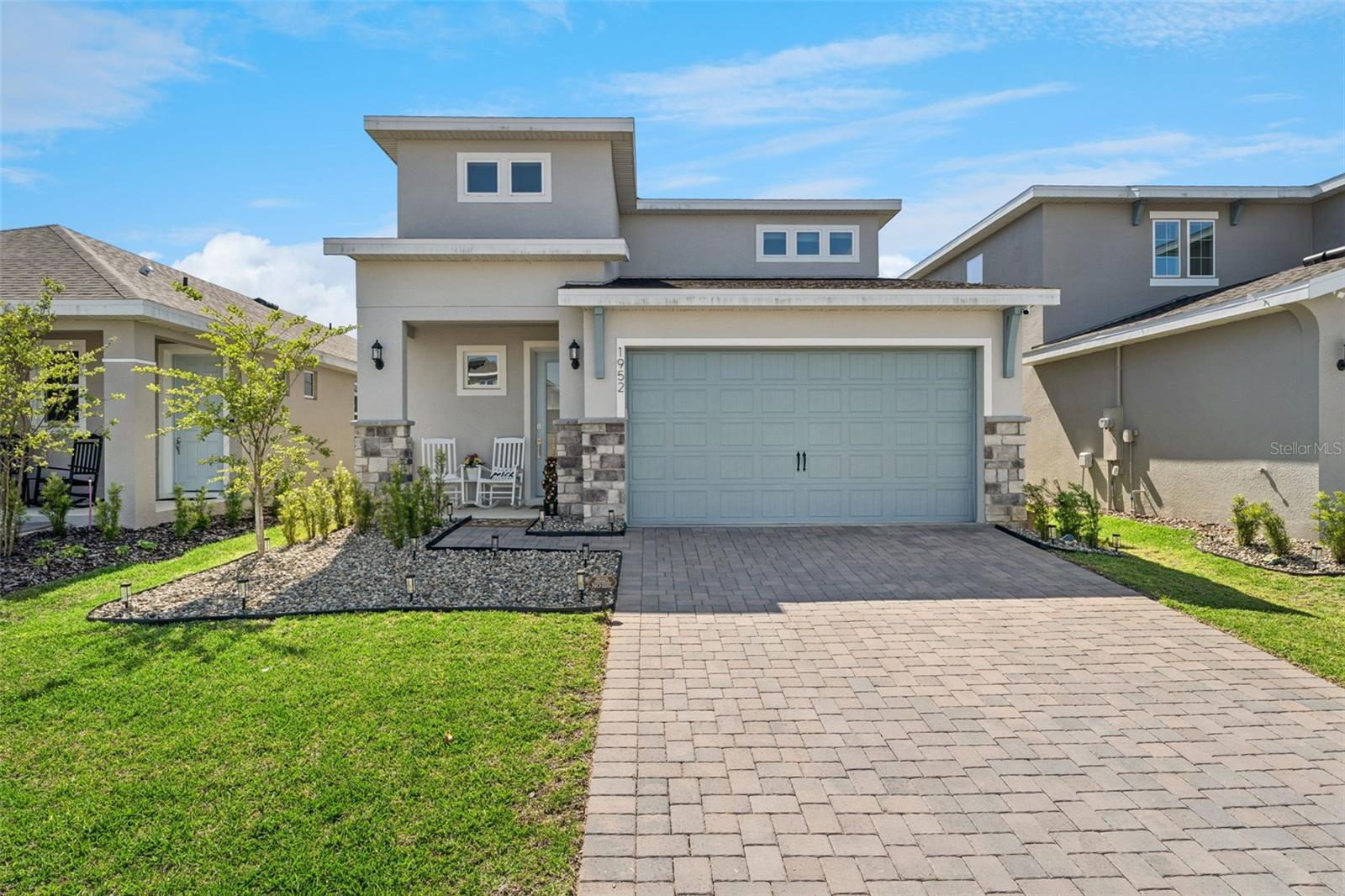 Skip the wait. This Magnolia floorplan is move-in ready with over $90,000 in upgrades: quartz counters, farmhouse sink, upgraded cabinetry, designer tile work, and custom finishes throughout. No builder timelines. No out-of-pocket add-ons. Just a finished home in close proximity the Hills of Minneola recreation center. Dream Finders' Elevation B exterior with stone detailing and paver driveway sets the tone before you walk in. Inside, 8' doors, open stair railing, and upgraded flooring carry through the main living areas and loft. The kitchen alone tells the story: gold hardware, glass-front cabinetry, sculptural pendant lights, a farmhouse sink, and a quartz island with custom beadboard detail. The primary bath continues it with floor-to-ceiling marble tile, a frameless glass shower, and a double vanity that flows directly into the walk-in closet. These are the finishes buyers spec out on a new build and wait eight months for. Here, they're already done. This is the shortcut to new construction without the compromises. Hills of Minneola includes a community pool, clubhouse, parks, and playgrounds, with quick access to the Florida Turnpike, Clermont, Winter Garden, and Orlando.