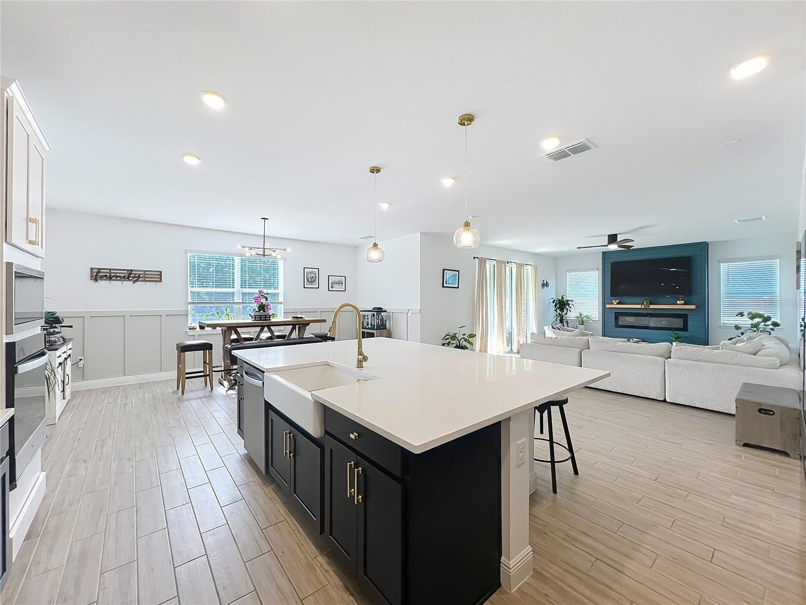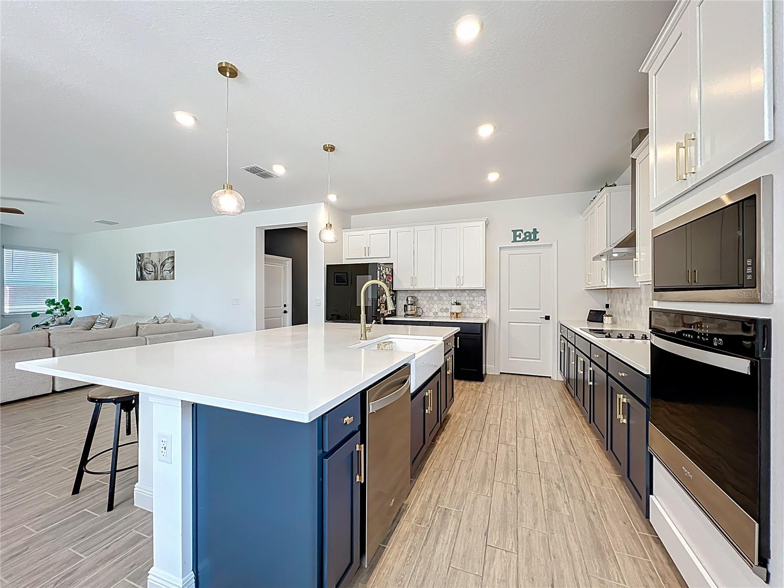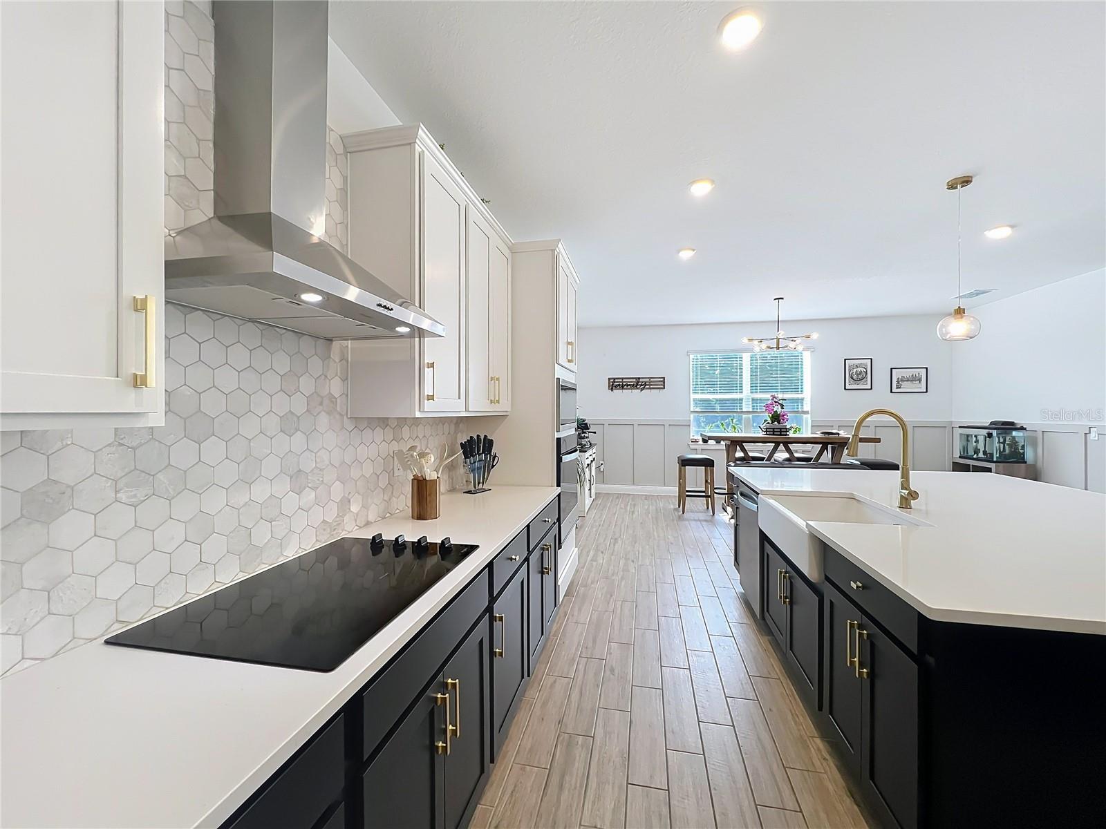 Welcome to your perfect luxury dream home in the sought-after Hills of Minneola community! Seller Motivated! This unique UPGRADED 4 bed, 3 bath home boasts a Biscayne floor plan built in 2023 by Dream Finders Homes with added intricate finishes offering modern luxury and spacious living with no rear or front NEIGHBORS! From the charming covered front porch, step inside to discover a bright and inviting foyer and a FLEX SPACE on the first floor with a walk in closet perfect for an office. The GOURMET KITCHEN is where the heart of the home is at with features such as stunning cabinets with gold hardware, tile backsplash, complemented by a modern chandelier above the OVERSIZED island with QUARTZ countertops. Enjoy a built in oven and microwave and a cooktop, and stainless steel range hood with plenty of counter space with a walk in pantry, perfect for cookouts with the family and friends. Entertain effortlessly in the adjoining dining area and spacious living room, complete with a cozy electric FIREPLACE. Upstairs, enjoy the serene huge LOFT area and a seperate LAUNDRY ROOM with storage cabinets. You will find all bedrooms equipped with plush carpeting and WALK-IN closets, including the expansive primary suite with a luxurious en-suite bathroom featuring DUAL SINKS, and an OVERSIZED walk-in shower. Sit back in the rear patio and enjoy the florida weather overlooking the large fenced backyard. The large garage has double doors and an added durable SHARK FLOOR coating that is more resistant to scratches and stains. This home is a rare find and sits on a generous 0.20 ACRE LOT, offering ample space and privacy with NO REAR or FRONT neighbors and with ADDED UPGRADES so you can just move right in! Community amenities include a Community POOL, parks, playgrounds, and a clubhouse. TOP RATED Schools and Medical facilities nearby make Hills of Minneola the perfect location for your new home! Located in a rapidly growing area near a brand-new hospital and Minneola Horizon Academy school, with easy access to the Florida Turnpike and just 35 minutes from Walt Disney World, and 25 minutes from Orlando International Airport. Schedule your tour today and experience the luxury and convenience of living!