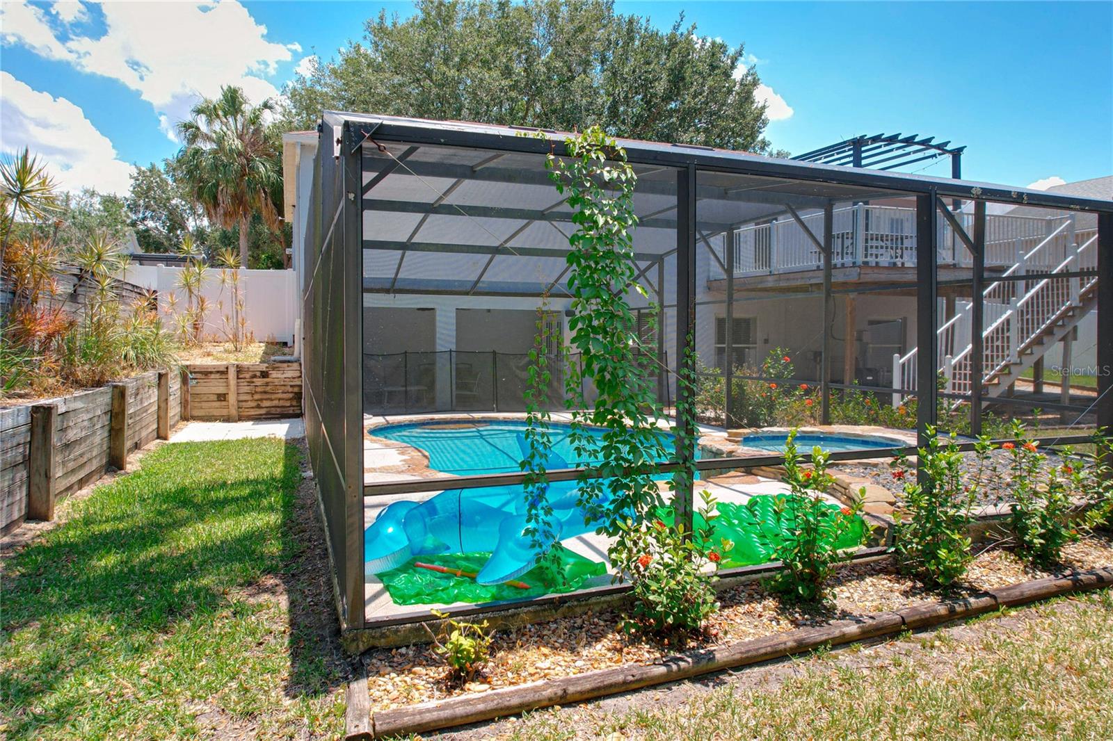 Seller Motivated! It wont feel like back to school here! With the oversized yard and entertainment area around the covered pool; the family can still get a taste of summer fun while school season starts. (Ask about it coming Furnished)! This stunning residence offers an impeccable blend of elegance, comfort, and modern upgrades, making it an entertainer's dream. When you step inside, you'll be captivated by the pristine, updated interiors. The kitchen is a chef's delight, featuring stainless steel appliances, including a brand-new double-door refrigerator, beautiful quartz countertops, and a convenient breakfast bar. The open-concept dining and living areas are adorned with sleek laminate flooring, creating a seamless flow throughout the main level. French doors off the dining room open to an expansive deck, newly upgraded with fresh decking, stairs, and railings, offering a perfect space for outdoor gatherings and relaxation. The master suite is a tranquil retreat, boasting a spacious walk-in closet and a fully upgraded en-suite bathroom with new tile, a walk-in shower, a stylish vanity, and modern light fixtures. The lower level of this home is equally impressive, featuring a spacious family room with a decorative shiplap wall and new French doors leading to a screened-in, heated pool and spa. This level also houses two additional bedrooms, a bathroom, and ample storage space. This home has seen numerous upgrades that add to its appeal and functionality. Recent improvements include a freshly pumped septic system, new carpet in the bedrooms, new sod, landscaping, and irrigation, barn doors, and fresh interior and garage painting. The home also features a new AC unit and roof installed in 2018, ensuring your comfort and peace of mind. Additionally, all decking, stairs, and railings have been replaced, and new ceiling fans and light fixtures have been installed throughout the home. Located close to major roads, shopping centers, restaurants, and a hospital, this move-in-ready home offers convenience and luxury in one package. Don't miss your opportunity to own this exquisite property – it won't last long. Schedule your showing today and prepare to be amazed!