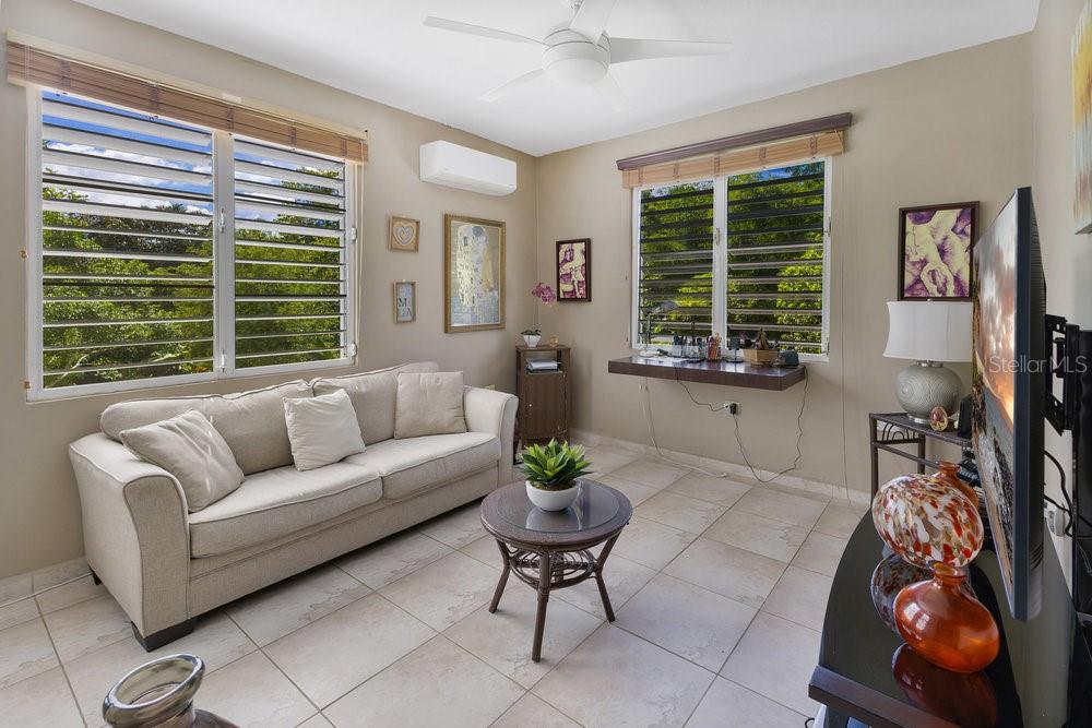 Charming Two-Story Home in Moca, Puerto Rico Discover your perfect retreat in this serene two-story single-family home, nestled at the end of a quiet road in beautiful Moca, Puerto Rico. With three spacious bedrooms and two baths located on the upper level, this property is designed for comfort and tranquility. The primary suite features its own bathroom and a large walk-in closet, perfect for organizing your wardrobe and belongings. The kitchen is modern with granite counter tops and faces the family room. The living room and dining room are close by with plenty of space to entertain. The guest bathroom is conveniently located making this home ideal for families or guests. On the lower level it has a storage area, bedroom, a kitchenette and full bath. Total square footage is 3,459 with 1,625 s/f of outdoor living space which includes terraces, balconies, a large double carport plus a spacious gathering area. The main home is accessed through a stairway at the side of the carport. It is self-sufficient in that this home is equipped with 20 solar panels (250 watts each) and a solar water heater, providing energy efficiency and reduced utility costs. The home is move in ready as it comes fully furnished, allowing for a seamless transition into your new space. This includes three inverter a/c’s, six modern ceiling fans, contemporary light fixtures, appliances, furniture in LR and DR and all of the bedroom sets. Artwork and personal items not included. 1,200 s/m lot (a little over a quarter of an acre). Surrounded by nature, this property offers a peaceful ambiance, ideal for unwinding after a long day. This home is perfect for those seeking a tranquil lifestyle in a friendly community. Don’t miss out on this opportunity—schedule a viewing today! Qualified buyers only.