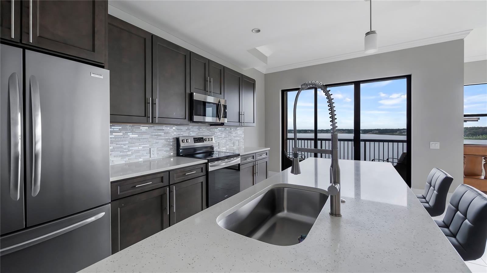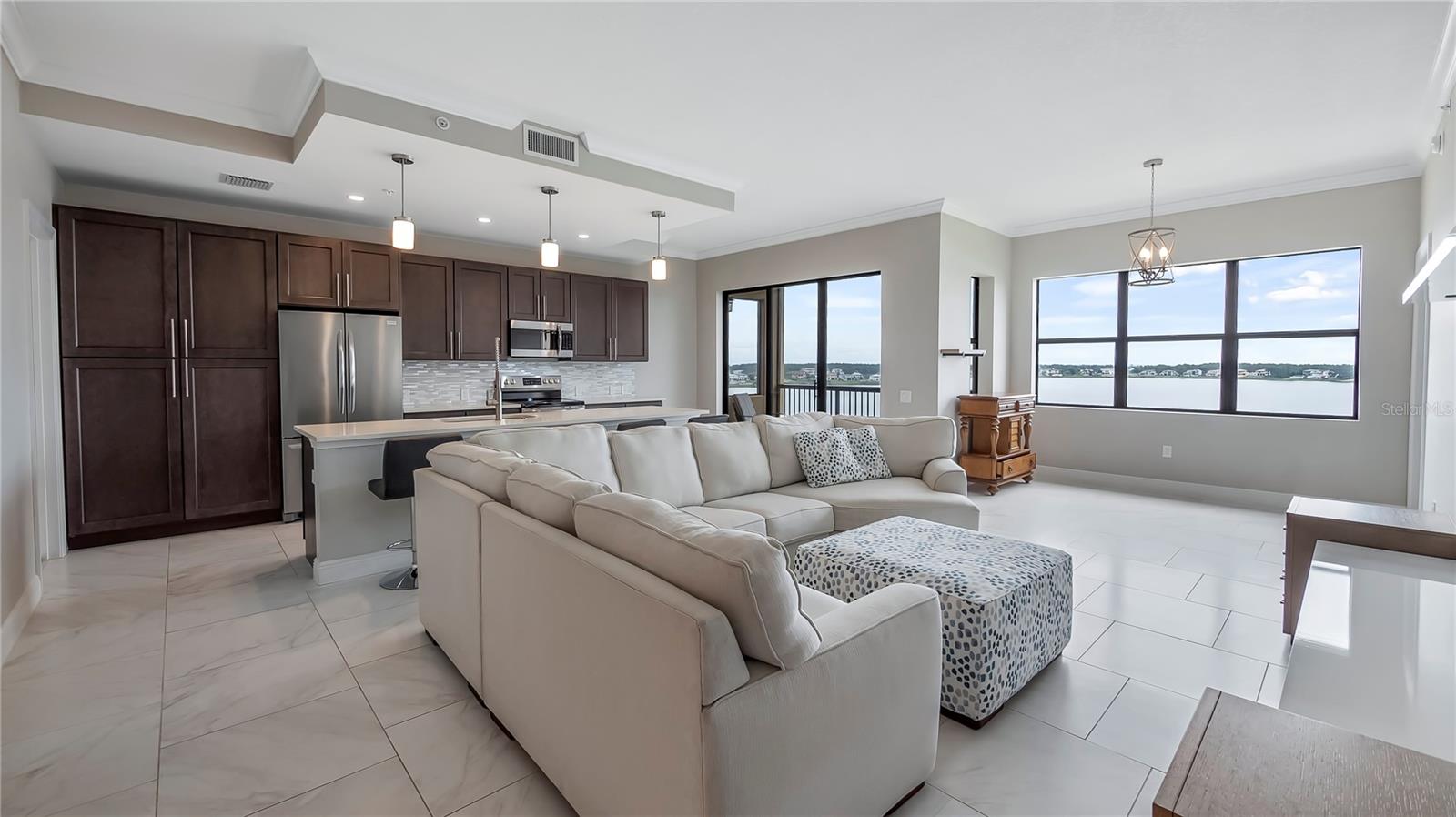Welcome to LUXURY living at its finest in this exquisite TOP-FLOOR CORNER unit condo located within the highly desired Bella Collina community. This LAKE VIEW luxury residence boasts 1,568 square feet of elegance and comfort! Step inside to discover a beautifully designed space featuring THREE spacious bedrooms and THREE pristine en-suite bathrooms. The open-concept layout includes a dining room, large kitchen island, and spacious living room perfect for entertaining. Oversized windows flood the condo with NATURAL LIGHT, offering panoramic views of the serene LAKE and surrounding landscape. Enjoy the convenience of stainless steel appliances, in-unit washer and dryer, and plenty of soft-close cabinets in an open kitchen. The primary suite is a true retreat, complete with a soaking tub for ultimate relaxation. Step out onto your private screened-in BALCONY to take in the breathtaking scenery and sunrises, or explore the community's top-tier amenities. With assigned parking and an elevator for easy access, this pet-friendly, gated community ensures both security and convenience. With access to world-class SPA, golf course, two restaurants, and social events, enjoy a convenient and maintenance-free lifestyle! Don't miss the chance to experience this luxurious waterfront lifestyle. Schedule a viewing today!