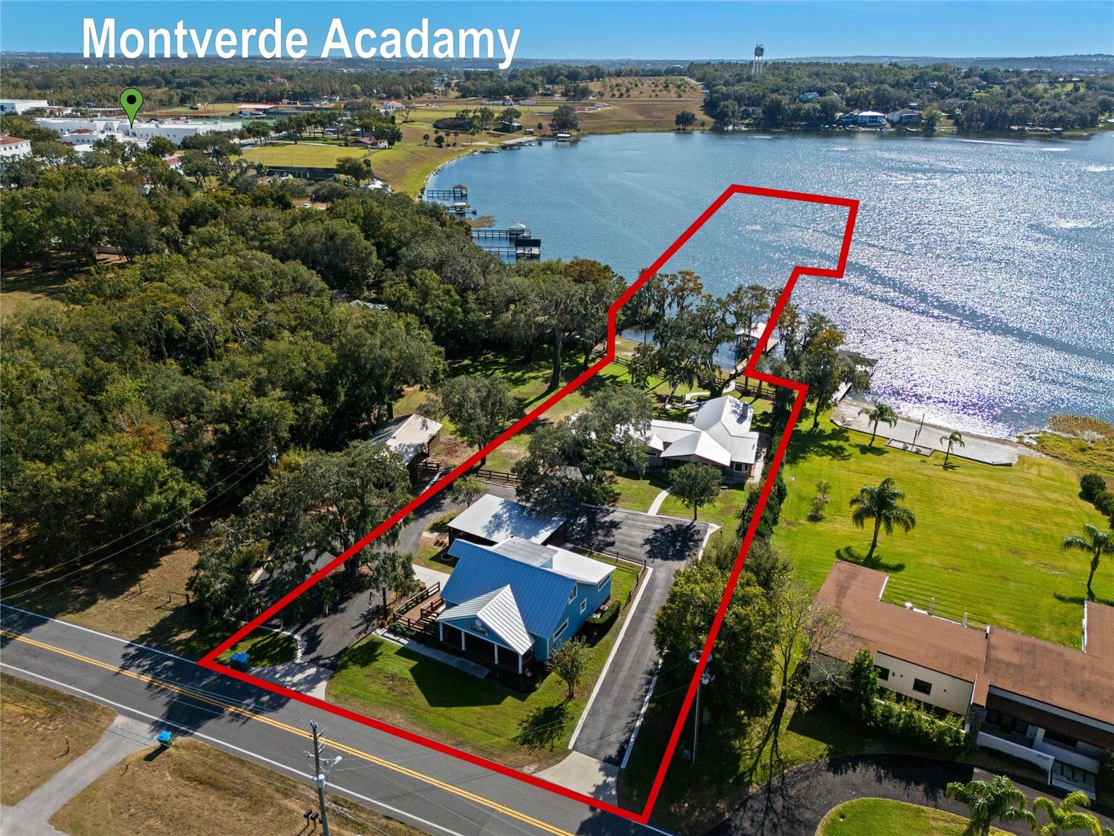 MONTVERDE hacienda offers ONE lakefront home, ONE commercial office & ONE lakefront buildable lot on LAKE FLORENCE! All parcel combined total 9.07 acres however only 1.33 acres are dry. The Lake house sits on .52 of an acre, the additional buildable lakefront lot is .29 of an acre and the commercial office sits on .52 of an acre with the remaining of the property in the lake. FIRST is the three bedroom~two bath LAKEFRONT HOME with 2337 heated SF & offers AMAZING VIEWS with LARGE picturesque windows to show off the lake and offer a panoramic high elevation view. The custom kitchen has solid wood cabinets (with plenty of storage with roll out shelves), quartz counter tops and stainless steel built in commercial KITCHEN AIDE appliances, including a separate drawer refrigerator AND an ice maker, for lake living! The living room is oversized with beamed cathedral ceilings and once again amazing views of the lake. Enjoy the wood burning stacked tile fireplace on those few Florida cold nights. The master bedroom measures a nice size, once again offers great lake views along with a nice sized walk in closet with custom adjustable shelving. The master bath has a walk in oversized shower with multiple shower heads, dual sinks & plenty of storage. The two remaining bedrooms are good size as well and one bedroom even has a barn door to offer a little privacy of that bedroom and the guest bath. The laundry room is OVERSIZED and could easily double as a craft room. Wood looking plank tile, crown molding and 5 1/4" base throughout. EXTENDED two car garage plus a garage door off the back to offer a great lake cross breeze ventilation while tinkering in the garage. Plenty of additional storage under the living room with exterior access. Enjoy the brick fire pit and lake views under the LARGE OAK TREES after a long day. The property is complete with a covered boat dock including hoist with power and water. METAL roof and AC was installed in 2018. NEXT is the buildable LAKEFRONT lot that measures .29 of an acre and you can't but notice the granddaddy OAK TREES. This parcel does offer a private boat ramp and you can BRING ANY BUILDER & NO TIME LIMIT to build. This parcel has a barn that measure approximately 1104 square feet and has two oversized stalls, two storage rooms additional covered space. LASTLY is the commercial office space which is zoned ORC, Office Residential Commercial. The property can be used as commercial OR residential! The building is 1892 SF heated & is currently being used as as office space however there are many options on the permitted use list. It currently has a reception area, three large office rooms, conference room, full size kitchen (complete with kitchen appliances) & an upstairs BONUS room currently being subleased. The bonus room has a kitchenette area, complete with a kitchen sink and drawer fridge. The bonus room space has a separate exterior entrance as well as an interior entrance and can be locked off. This building has two full bathrooms and one half bath. The building can also be used as a residence and would be a three bedroom ~ two full bath and one half bath and is pre plumbed/wired for a shower and stackable laundry in the handicap bathroom. Office completely remodeled in 2015. PLENTY of parking as well as an additional three bay carport. Entire property is fully irrigated by a 5 horse power pump from the lake plus multiple lamp post throughout to offer a nice evening ambiance. A MUST SEE!