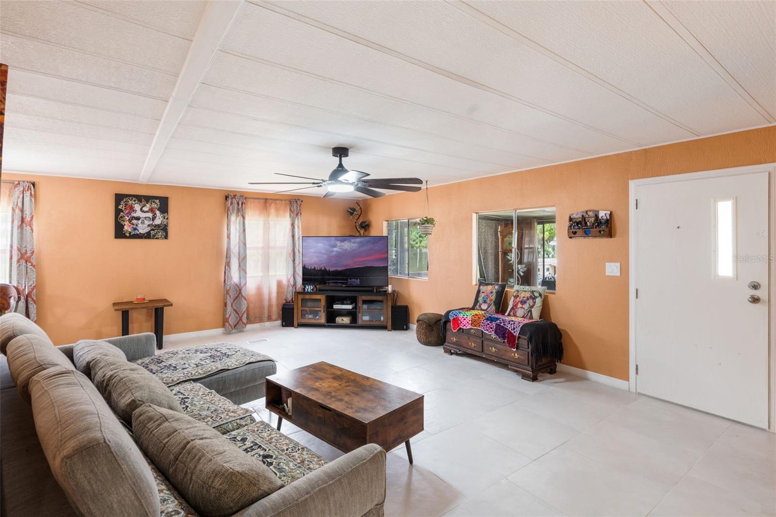Here's your opportunity to own a home in the heart of Montverde just outside Clermont with No HOA. Sitting high on a corner lot with lake Apopka views you'll love this updated home and its fantastic location. The floorplan is an open concept with 24in tile flooring through out and you'll see the upgrades from the floor to the ceilings. This is a 2 bedroom, 2 bathroom house with a spacious covered lanai that has lake views. The other side of the house has a covered patio also, fenced yard and a carport with a swinging gate to close it off. You have a 30 amp service out back for a small camper or RV. This home is move in ready. The owners keep the home real nice. The location is close to shopping, schools and the Turnpike. The community requires a $45 a month fee for water as they have their own water treatment facility. Come see it today
