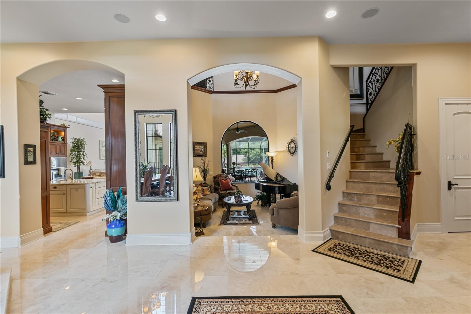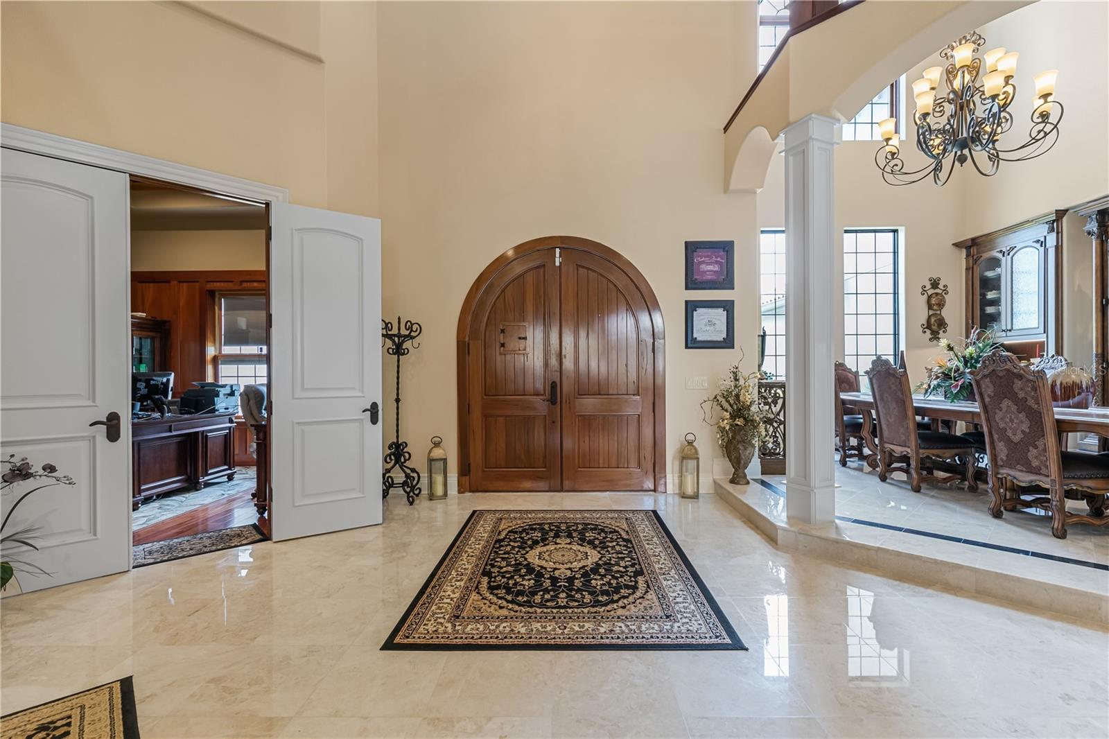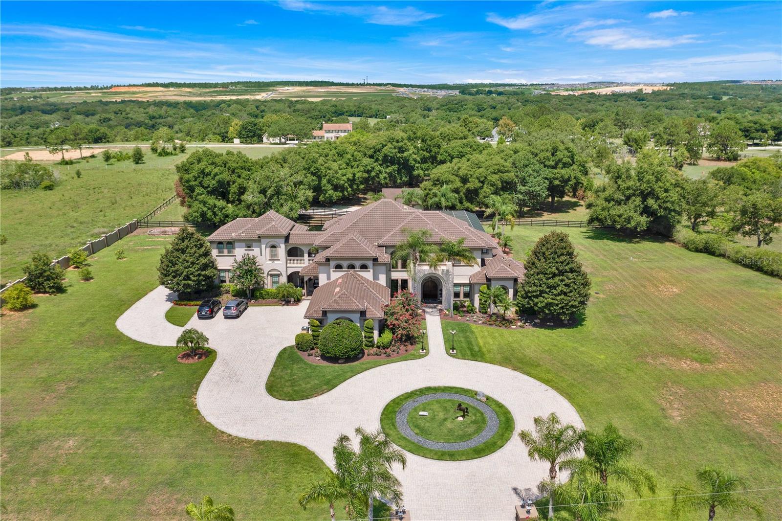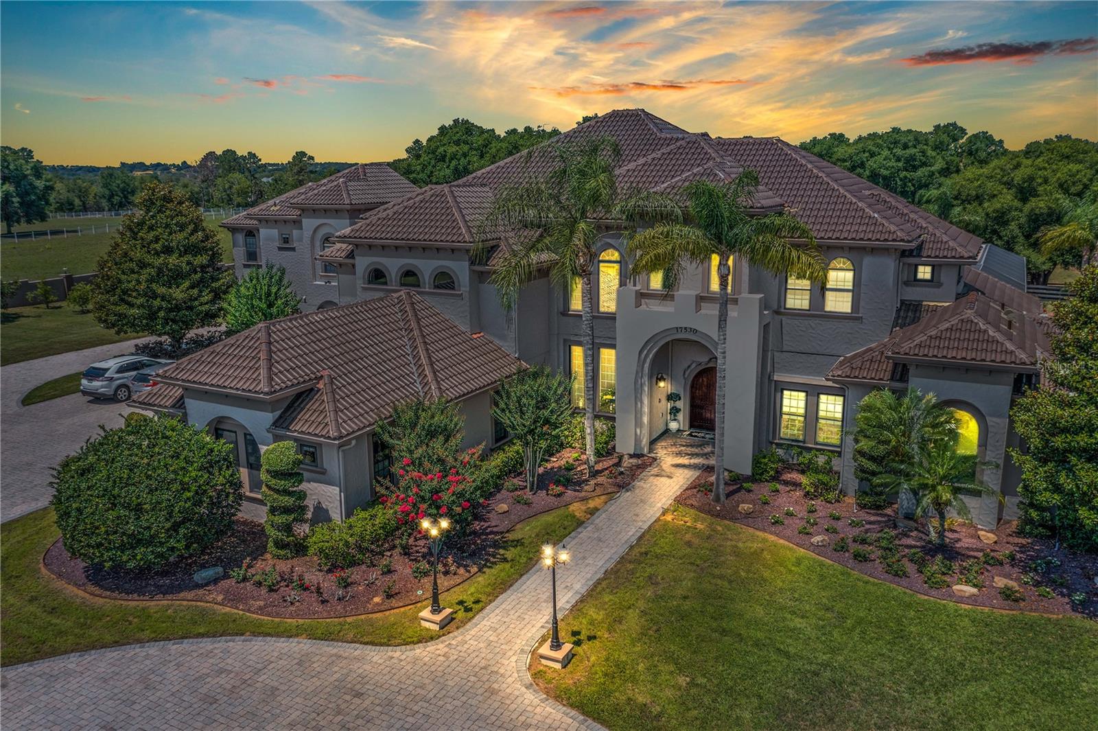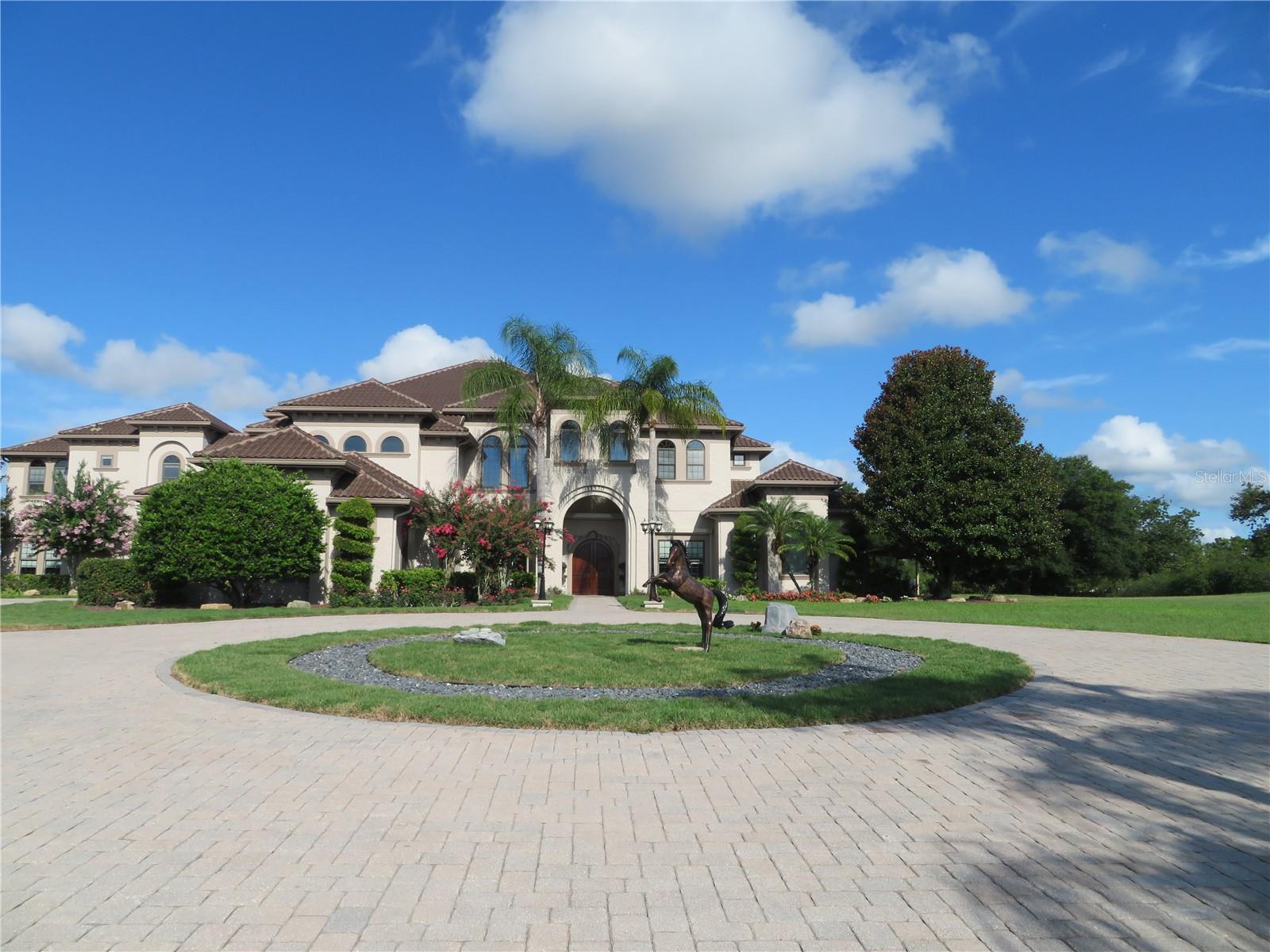 Rare opportunity to own an Equestrian Estate in exclusive Montverde. Montverde, as recently featured by WKMG-TV, is a thriving debt-free community featuring the world renown Montverde Academy just 1.4 miles away. Montverde Academy is a top-notch educational and athletic institution. It provides curriculum from pre-K3 through grade 12. This custom built equestrian home is a testament to unparalleled luxury. As you pass through the gates, you'll be captivated by the sheer elegance and sophistication that awaits. Nestled on 5 acres, this private gated estate showcases flowing fields and equestrian facilities. With more than 8000 sq. ft., this 6 Bedroom / 7.5 Bathroom home was built in 2006 and extensively remodeled in 2014. The property has amazing privacy with a surrounding wall, fencing and mature hedges on the perimeter. The Home has 800 Megabyte wireless internet, 2 Generac whole house Generators, and Roll Down Storm Shutters. OUTSIDE THE HOME: Screened Lanai with a Large Salt Water Pool and Spa with Solar Panels and Heat Pumps for warmth and a 10 person Hot Tub with Waterfall. Pool has deep, shallow, and chair deck ends with Lighting throughout. Additionally, there is a summer kitchen with large DCS grill, Viking vented hood, refrigerator, sink, ice maker, dishwasher, and warming drawer. Wall mounted TV. Cast aluminum table seats 8. Ratan furniture conversation area seats 12. Pool Cage has built-in Lighting. Cabana Bathroom and outdoor shower. Outside the Pool area, there is a Gas Firepit along the walkway to the Stables. The Stable is a 5 stall center aisle barn (33x40) with Air Conditioned Office, bathroom, and Feed Room. Tankless Hot Water system. Utility room with large sink, cabinets and refrigerator/microwave. 12x12 Stalls stabilized with padded floors. Attached to the barn is a 13x33 covered Wash Rack with hot/cold hose bibs. 3 Stalls feature exterior split doors that open to the Paddock (100x30). Running the entire back of the barn is an attached and covered 40x12 equipment shed. 4 irrigated pastures. Fenced and Cross Fenced with 4 Board. Large Paddock with 50 foot round pen. The Grounds have extensive Paver Driveways, Walkways, and Patios. The property features mature Live Oaks and Palm Trees. INSIDE THE HOME: Brazilian Cherry Hardwood floors and Marble throughout. First Floor features 4 Bedrooms, including the Primary (with Sitting Area, 2 large Walk-in Closets, and French Doors to Pool), Primary Bathroom (large jetted tub, 2 person walk-in shower, and 2 Vanity areas), 3 secondary bedrooms are a split plan with 2 ensuite baths, Laundry Room (with built-in desk) and Mud Room off the Garage entry area, Gourmet Kitchen (2 dishwashers, 2 microwaves, coffee center, Wolf gas range, built-in Viking Freezer/Refrigerator, center island with prep sink, huge walk-in pantry), Breakfast Nook overlooking the pool, large Family Room (built-in wall center with 75 inch TV with surround sound system and a 6 ft Fireplace), formal Dining Room (with built-in Hutches) & Living Room, and a private Study/Office (cherry wood walls). The Second Floor has a Bedroom, Billiard/Game Room with Entertainment Bar, Media Room, a Bonus Room with built-in cabinets and desks, and a Breezeway leading to the large Fitness Room. Connected to the Main House is a 820 sqft 1 Bed / 1 Bath Guest Cottage with Kitchen, Dining Nook, and Living Room. French Doors open to the Pergola patio and Firepit area. FURNISHINGS NEGOTIABLE! SELLER FINANCING! THIS HOME MUST BE SEEN!