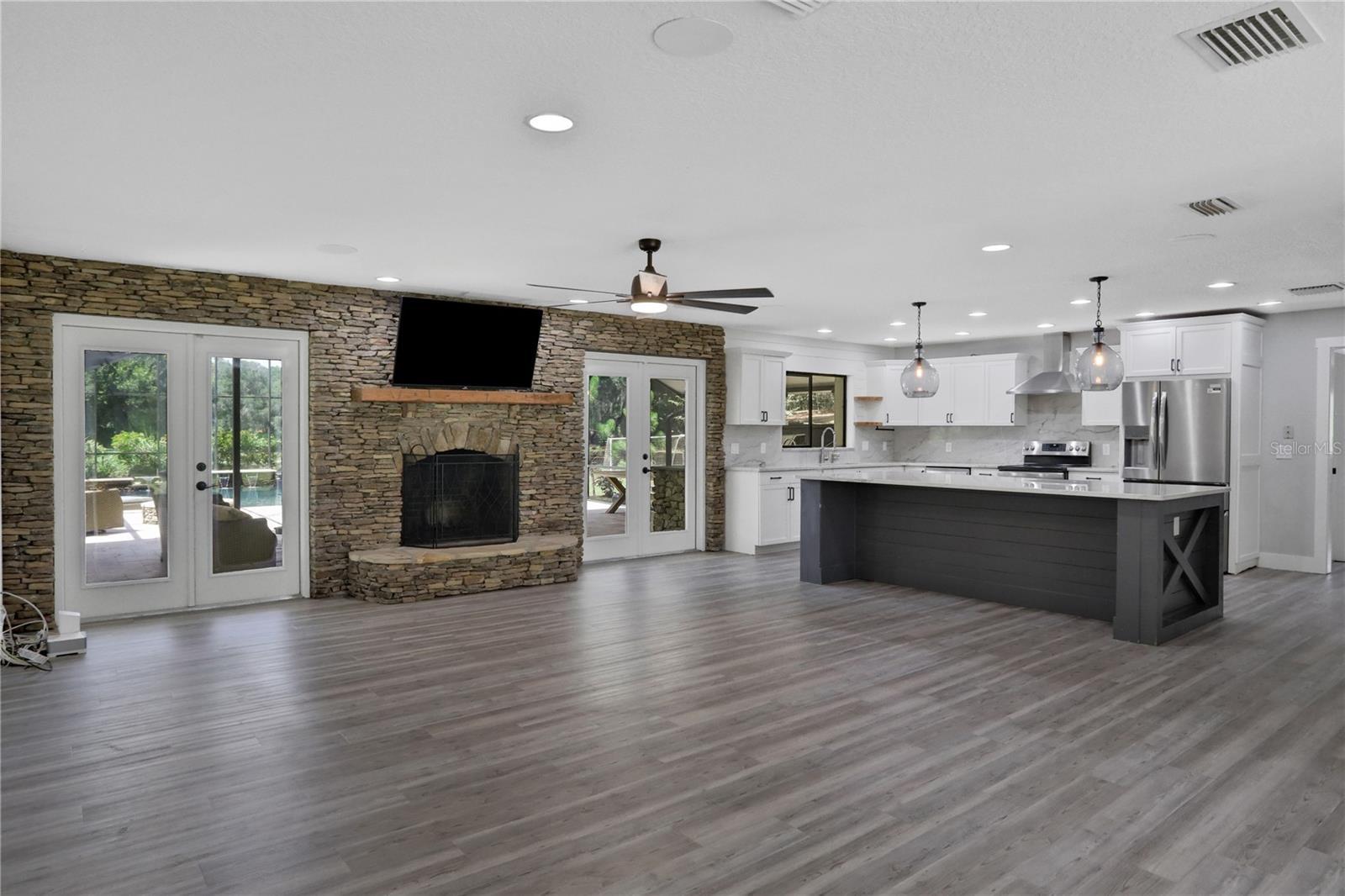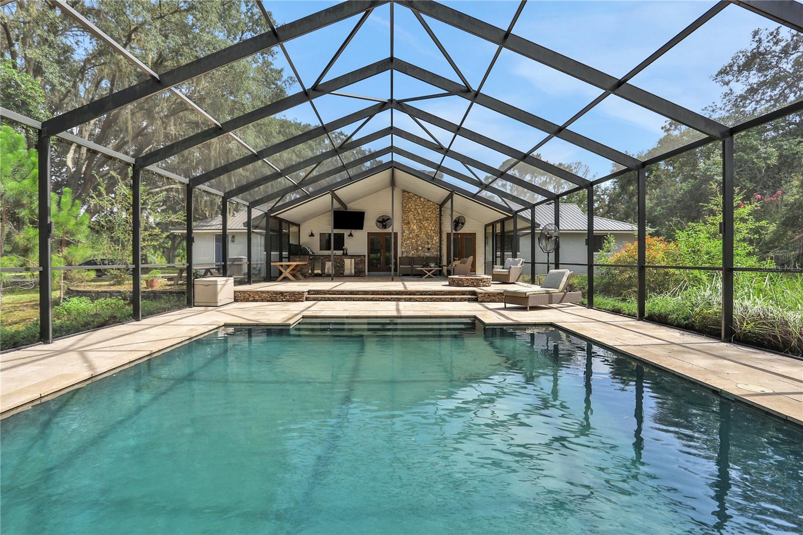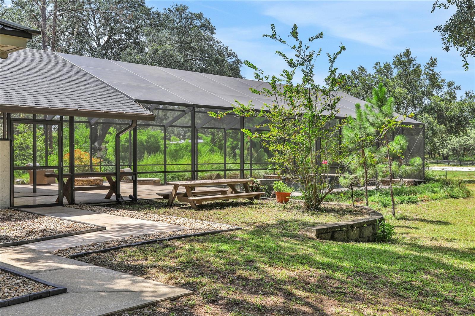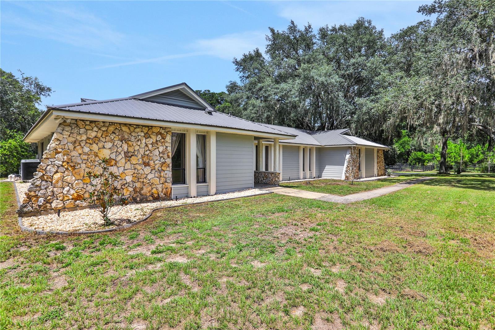 **New Price Reduction** Nestled on a sprawling 4.72-acre estate, this highly desirable MONTVERDE 4 bed/3 bath home sits high and dry and offers a rare combination of space, privacy, and comfort. This exceptional property with NO HOA!! offers a blend of modern upgrades and natural beauty, creating a truly unique living experience. The home benefits from a new metal roof installed in 2022, a brand-new A/C system added in early 2024, a new well pump was installed in 2023, complemented by fresh exterior paint that was completed in the same year. The kitchen underwent a complete remodel in 2021, showcasing brand-new appliances, Quartzite countertops along with a beautiful island. A wet bar with a butcher block countertop and brick backsplash boasts a wine fridge, and a new walk-in pantry. LVP was added throughout the main living areas. A home office along with updated interior door and window framing was installed in 2021. All three bathrooms were renovated in 2023. The Primary Bedroom was updated with a custom closet designed and installed by Closets by Design. The 2021 outdoor kitchen is a standout feature and is enhanced by a custom fire pit, custom Sonance outdoor sound system, and accent lighting around the screened-in pool area. The large luxury saltwater pool, installed in 2018 is heated electrically and surrounded by elegant Travertine pavers and stacked stone under a 30' X 70' screen enclosure, creating an exceptional outdoor retreat that combines beauty with function. Additionally, the attached garage has been transformed into a versatile bonus room, providing an extra 320 sq. ft. of living space. If preferred, the buyer can easily revert it back to a traditional garage. The property is enclosed by a 4-board fence installed in 2017. A shed (12' X 12') with a workbench and plenty of room for storage along with a custom built playhouse directly above was built in 2021. The property also features a 1200 sq. ft barn with an enclosed paddock, adding to its charm and functionality. Enjoy the convenience of living a short drive to the Turnpike and SR 50, as well as nearby essentials like Publix, Target, multiple restaurants and the vibrant cities of Winter Garden and Clermont. Montverde Academy (Internationally known for Education and Athletics) is a short 5 minute drive and the luxurious lakefront and golf community, Bella Collina is only 6 minutes away. The property features large oak trees, lush mature landscaping, and a high level of privacy, creating a peaceful and secluded sanctuary. Don’t miss the chance to make this dream property your new home. Schedule a visit today!