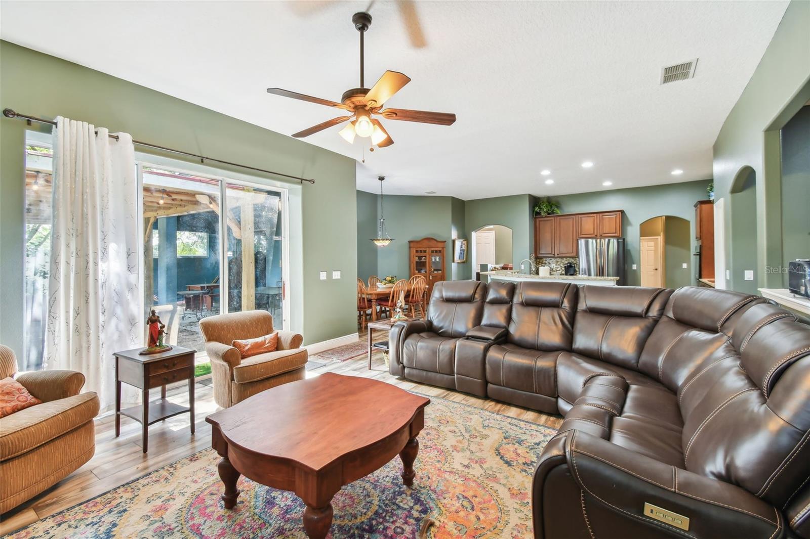RARE opportunity for one of the largest homes in Harbor Oaks!! This magnificent custom built 5 bedroom 3 bathroom home sits on a very PRIVATE HALF ACRE that's canopied with mature trees. From the moment you pull into the long driveway, you'll notice the natural serenity that surrounds this home. Walking up to the front porch you'll appreciate the grand entrance with the double 8' front door. Inside, you're greeted with impressive 14' ceilings and crown molding as well as beautiful luxury vinyl flooring throughout the home. The formal dining room features a beautiful chandelier and a built in accent wall for decor. The formal living room is a great spot to entertain guests, with access to the lanai. The gourmet kitchen features solid wood cabinets with crown molding, granite counters, and a beautiful tile backsplash. The stainless steel appliances add a modern touch. Enjoy cooking meals while overlooking the family room which is surrounded by windows with incredible views of the trees and greenery. The breakfast nook features a large frameless window that also has some spectacular views of the massive yard! The floorplan is masterfully crafted for privacy as the rooms are very well spread out. The primary bedroom is on the east side of the home with lots of windows and a sliding glass door that leads to the lanai. The primary ensuite bath is absolutely stunning with a custom tiled shower with glass enclosure, dual custom vanities, enclosed water closet, and linen closet. The rear of the home features two oversized secondary bedrooms with walk in closets. They share a bathroom that also has door to the yard - perfect if you want to add a pool! Towards the front of the home are two more generously sized bedrooms that share a hall bath with a shower. The inside laundry room conveniently offers a sink for convenience. The home also features a side entry 3 CAR GARAGE!! Outside enjoy entertaining on the oversized lanai (30'x26') and pergola overlooking the incredible yard! If you're looking for a huge yard with lots of privacy, this home is for you!! Everything major is also taken care of! Roof replaced in 2022, HVAC in 2021, Water Heater in 2019, and the exterior was repainted in 2022. All you need to do is move in! The neighborhood features a community boat dock for residents to have access to Lake Florence so you can go fishing or enjoy the water. The property is located in the heart of Montverde on a quiet tree lined street and is just minutes from the prestigious Montverde Academy. Nearby you will be just 8 minutes from the new Hills of Minneola shopping area and Minneola Town Center that are coming to the area in the next few years. You're also 10 minutes to shopping and dining options in town including Target and the new Clermont Costco! This is one home you don't want to miss! Schedule your private tour today!